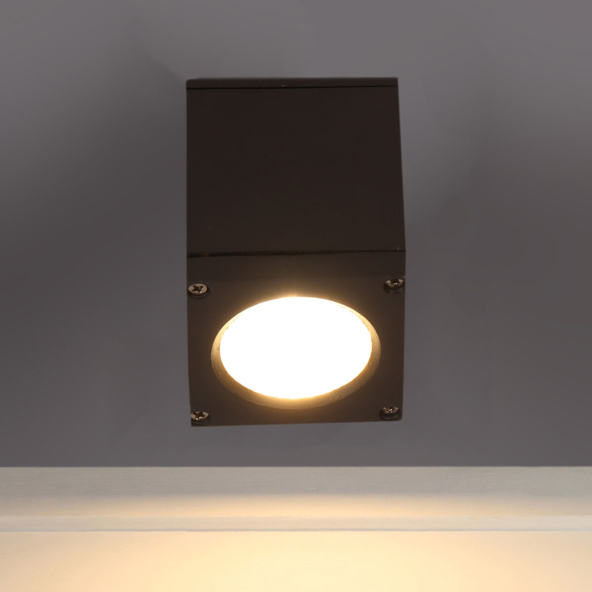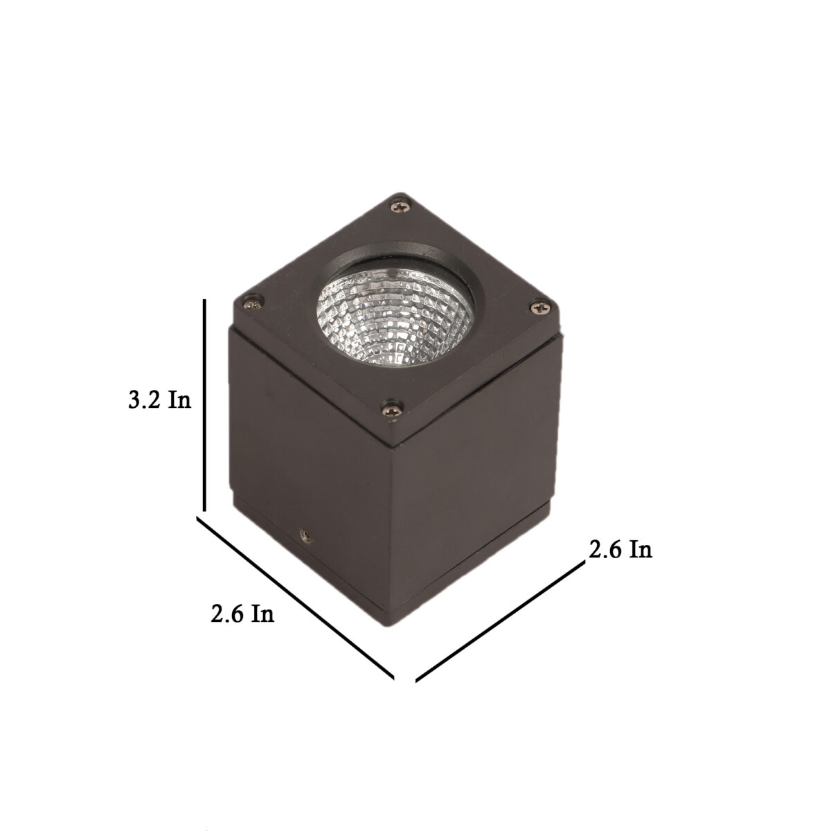 Square aluminium die cast outdoor ceiling light in grey finish. It uses high quality LED and driver with high success rate having less than 0.5% replacement. It is having 5 watt COB with reflector for a very high output. It can be used in both indoor and outdoor applications. Application areas include porches, entrance, patio, verandah, balcony, bathroom, staircase ceiling, terrace, stilt parking, basement parking . IP54 rated, protection against splashed water.