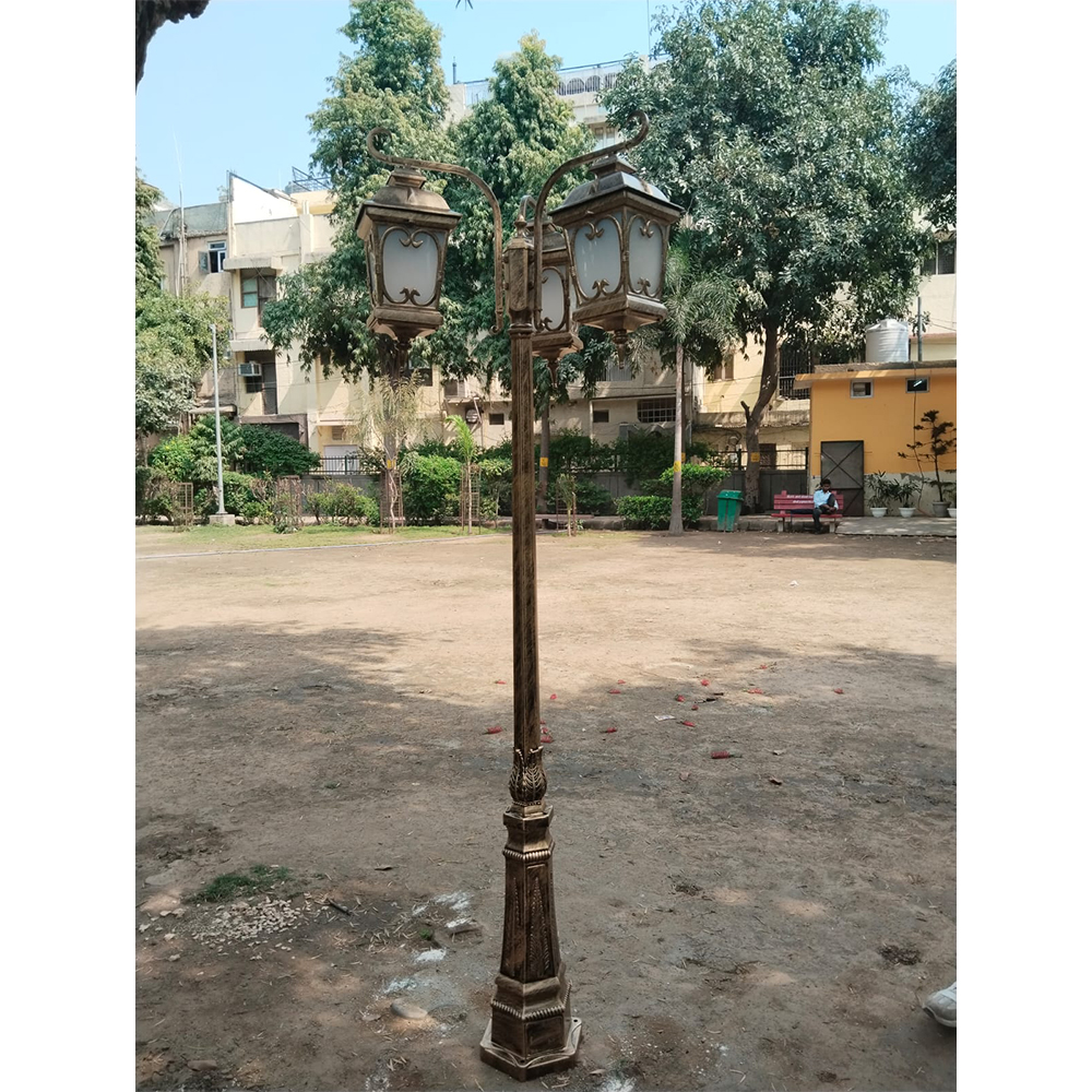 Pole light with top quality material and high end finishing for outdoor use.