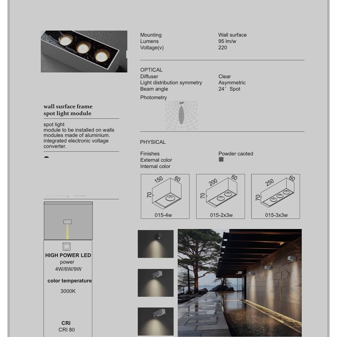 SUPERSCAPE architect choice grey finish Exterior Wall Light LED 3 X 3 watt with top quality LED and driver 3K X2071
