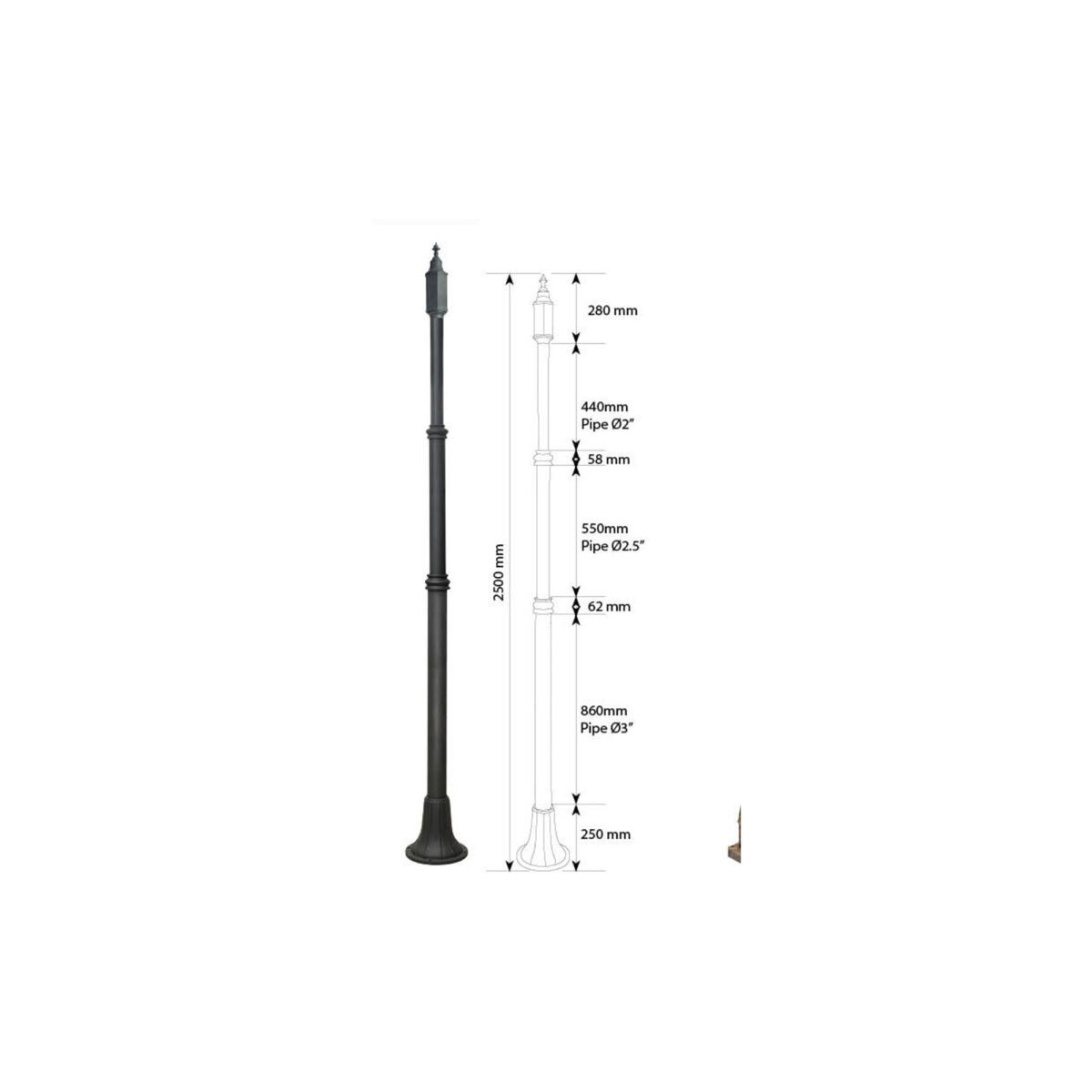 SUPERSCAPE black finish 8.5 feet three light pole light K1144