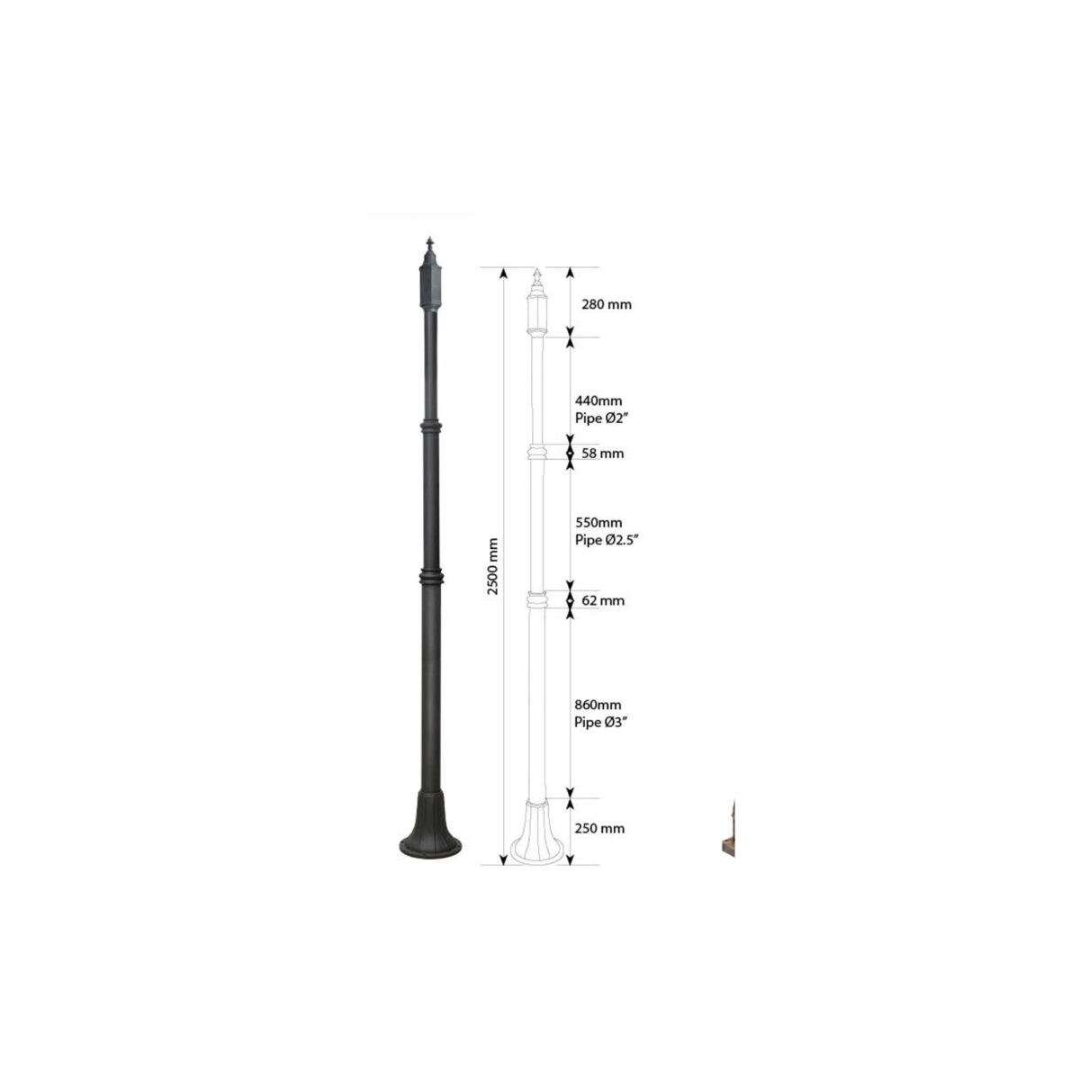 Pole light with top quality material and high end finishing for outdoor use.
