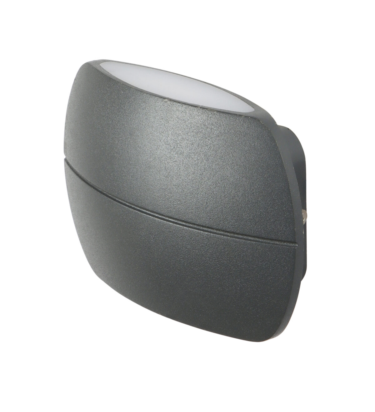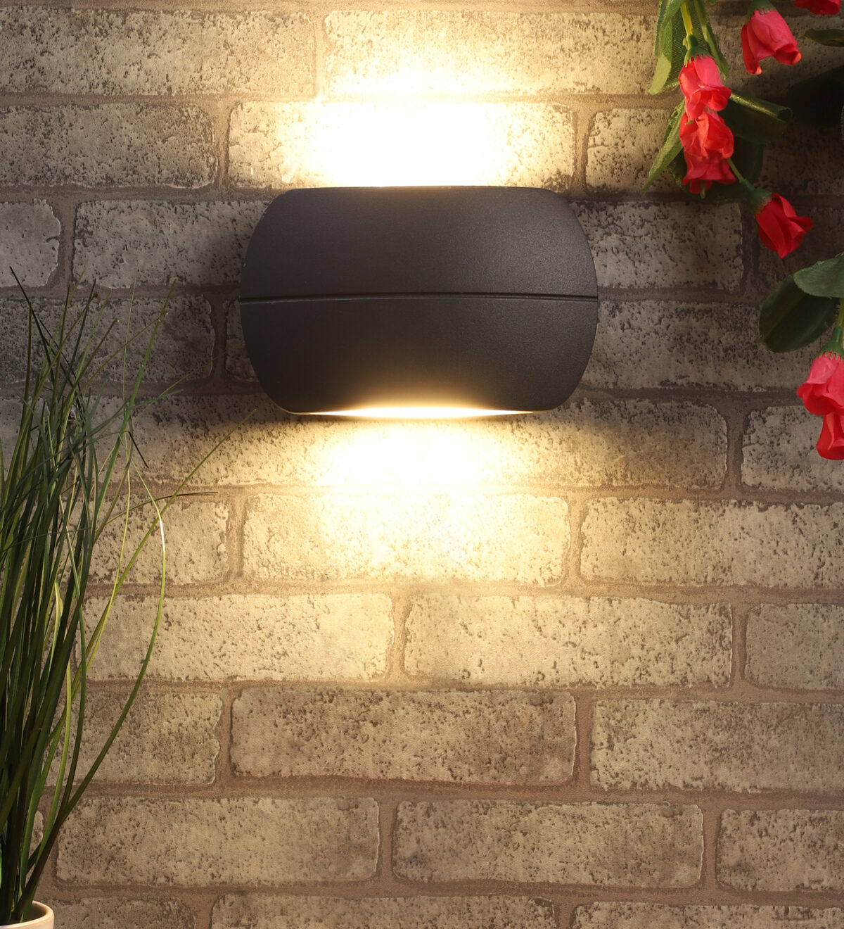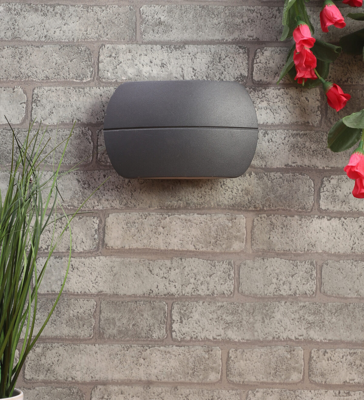 Vertical, elegant nicely shaped up and down aluminum die cast outdoor wall light in gray finish using high quality LED and driver with high success rate having less than 0.5% replacement. It is a two way light with high light output creating a defined beam for a good visual effect. It is economical and one of the most popular design preferred by the lighting designers, builders and architects. It can be used in both indoor and outdoor applications such as stair case walls, terrace walls, outdoor walls, boundary walls, open parking, stilt parking, basement parking, passage walls, entrance pillars. IP54 rated. Protection against splashed water can be customized as per requirement for bulk quantities.
