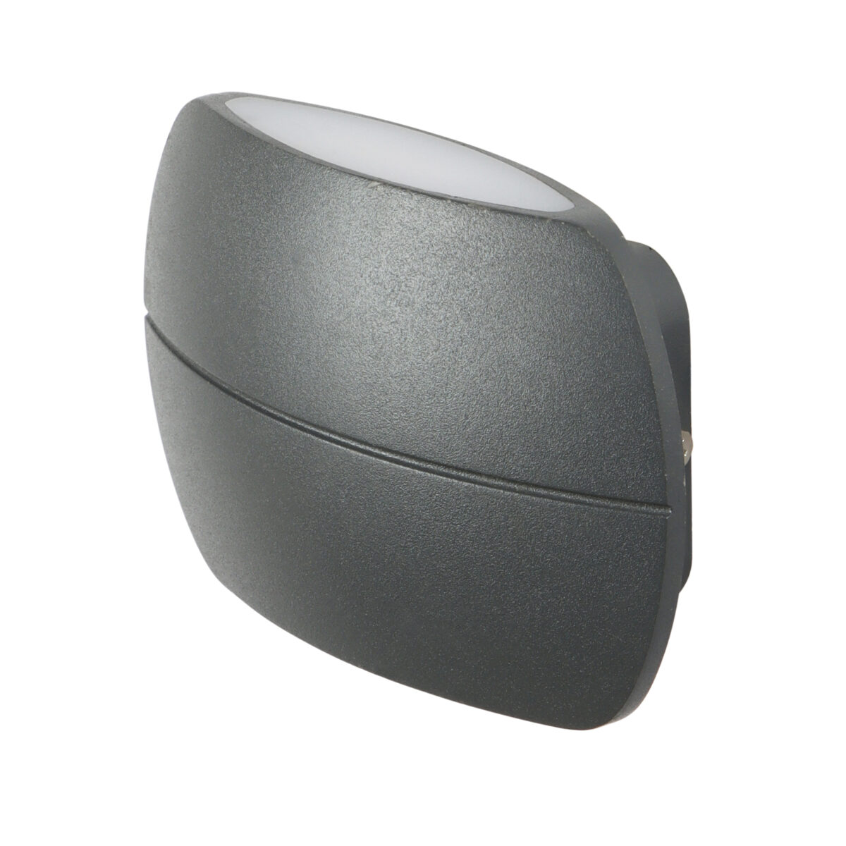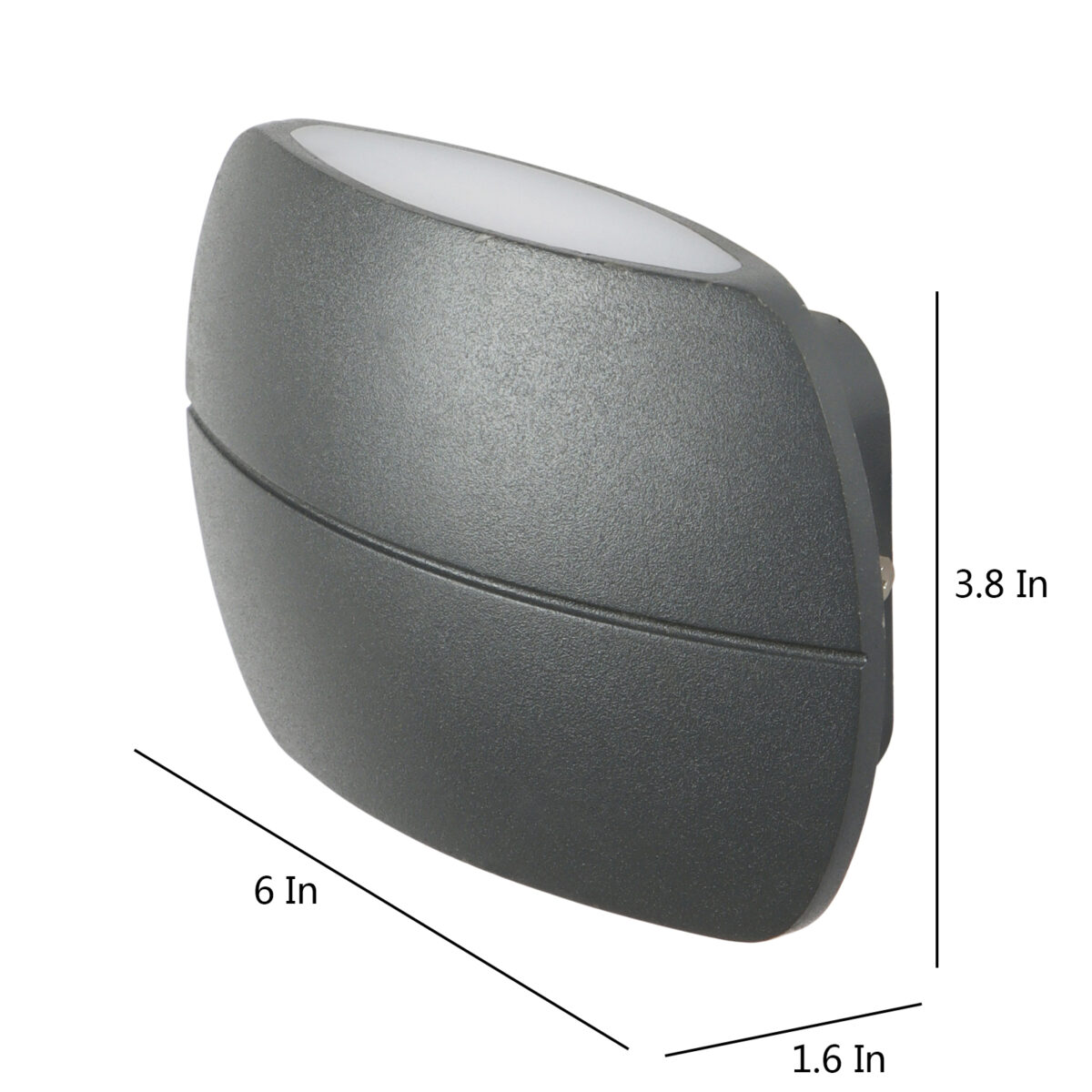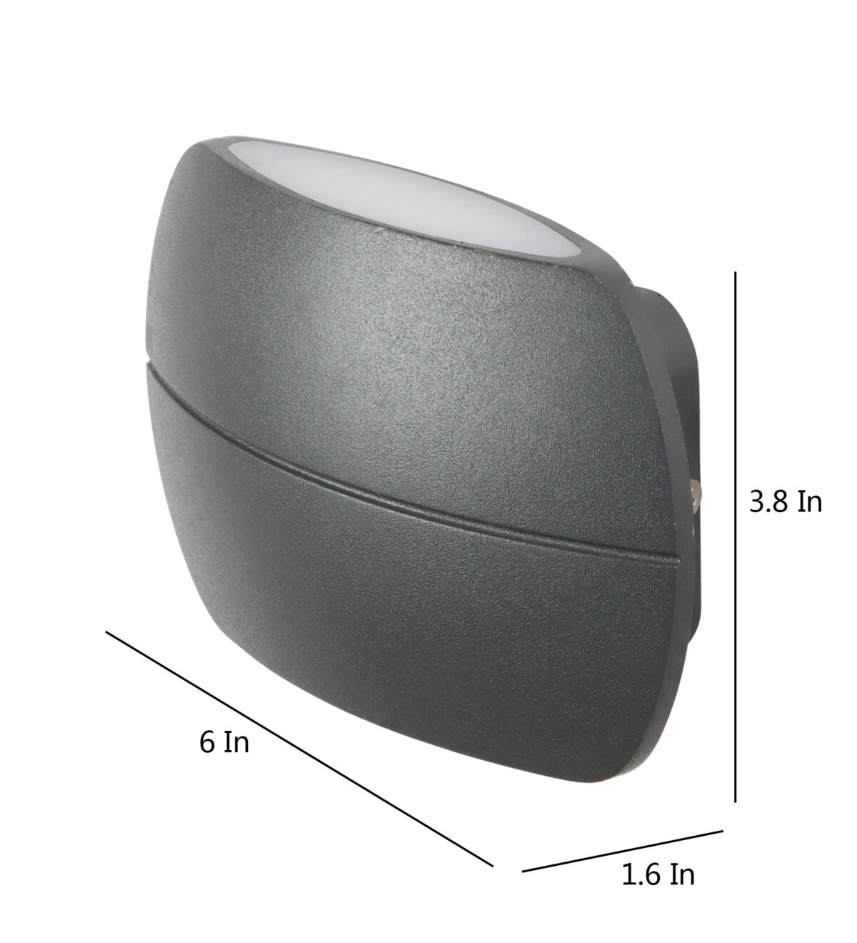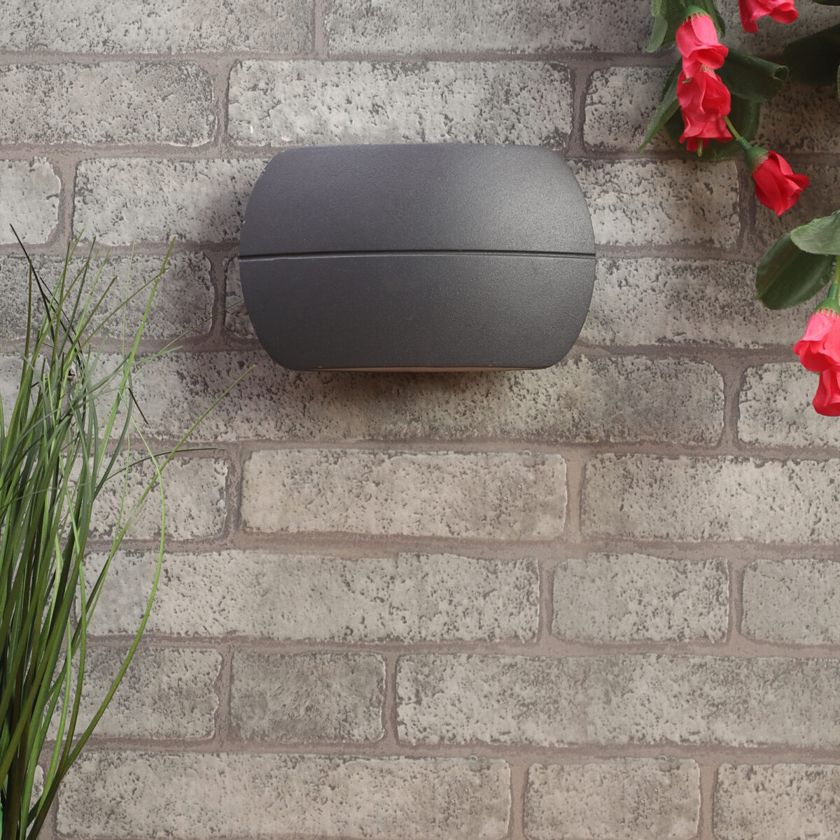 Vertical, elegant nicely shaped up and down aluminum die cast outdoor wall light in gray finish using high quality LED and driver with high success rate having less than 0.5% replacement. It is a two way light with high light output creating a defined beam for a good visual effect. It is economical and one of the most popular design preferred by the lighting designers, builders and architects. It can be used in both indoor and outdoor applications such as stair case walls, terrace walls, outdoor walls, boundary walls, open parking, stilt parking, basement parking, passage walls, entrance pillars. IP54 rated. Protection against splashed water can be customized as per requirement for bulk quantities.