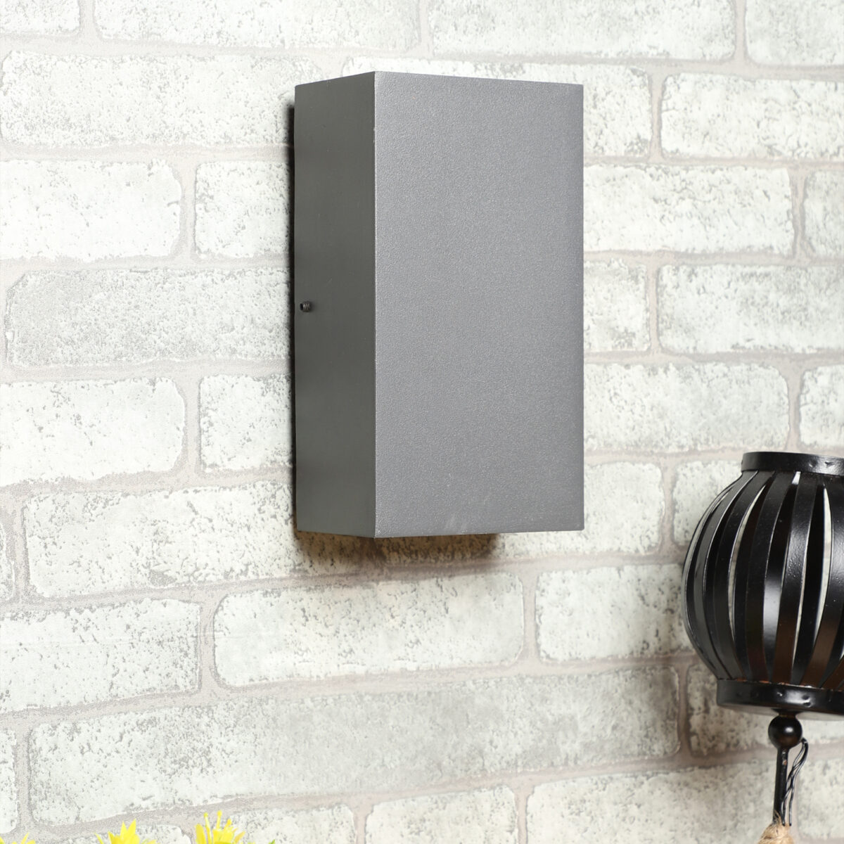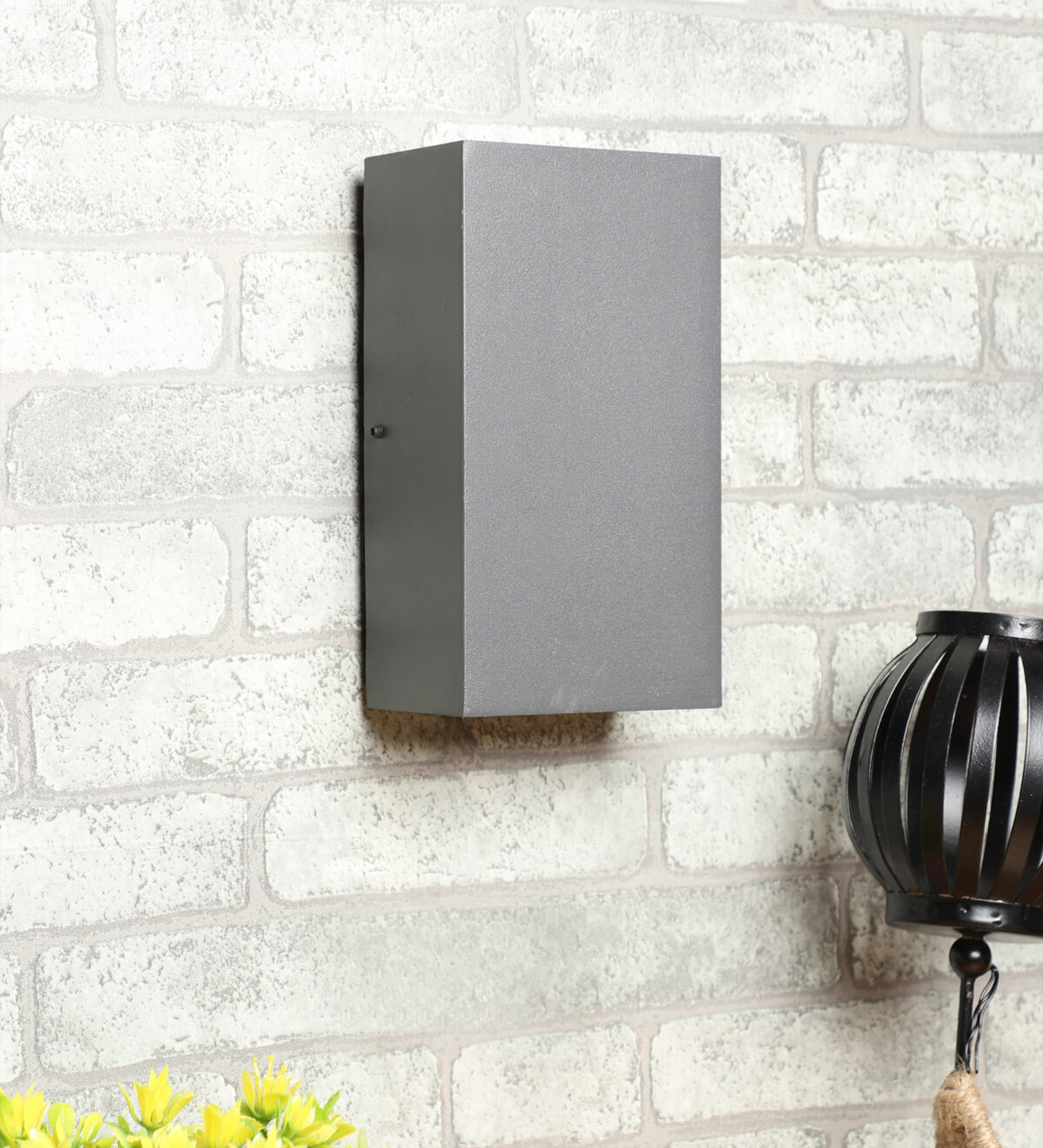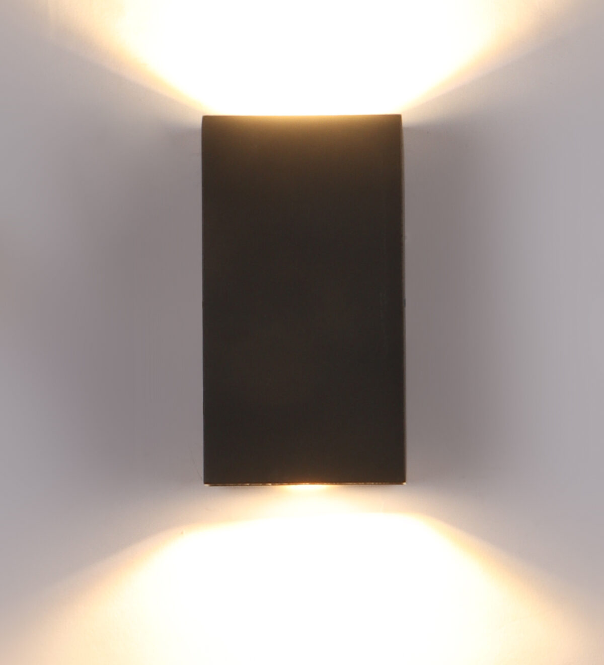 Vertical, sleek, rectangular two way up and down aluminum die cast outdoor wall light in gray finish using high quality LED and driver with high success rate having less than 0.5% replacement. It is a two way light with high output having 5W COB with reflector for more light output on each side. It is economical and one of the most popular design preferred by the lighting designers, builders and architects. It can be used in both indoor and outdoor applications such as stair case walls, terrace walls, outdoor walls, boundary walls, open parking, stilt parking, basement parking, passage walls, entrance pillars. IP54 rated. Protection against splashed water can be customized as per requirement for bulk quantities.