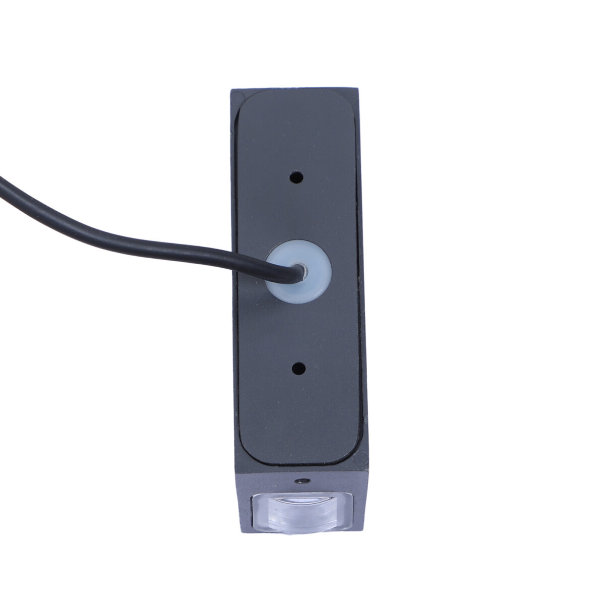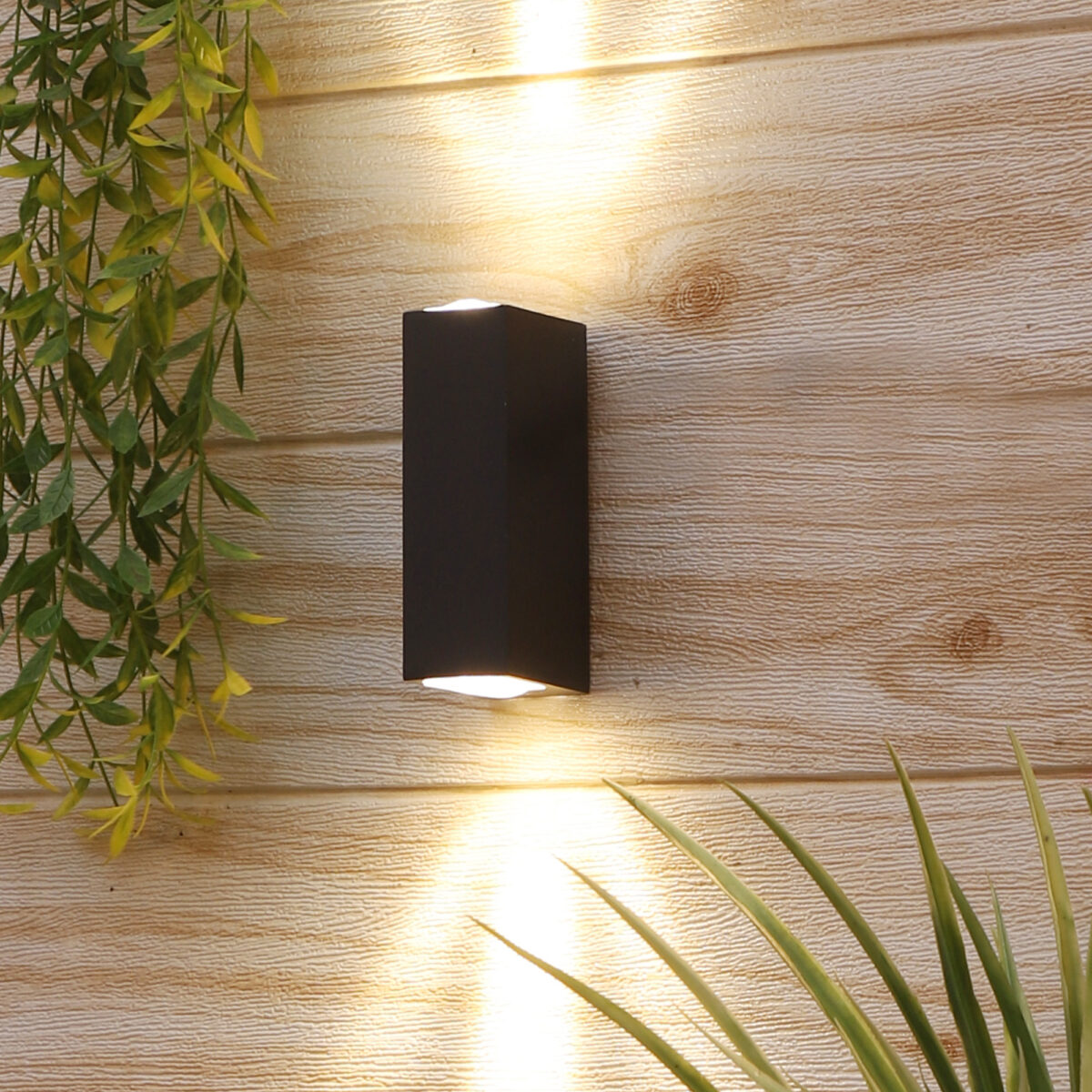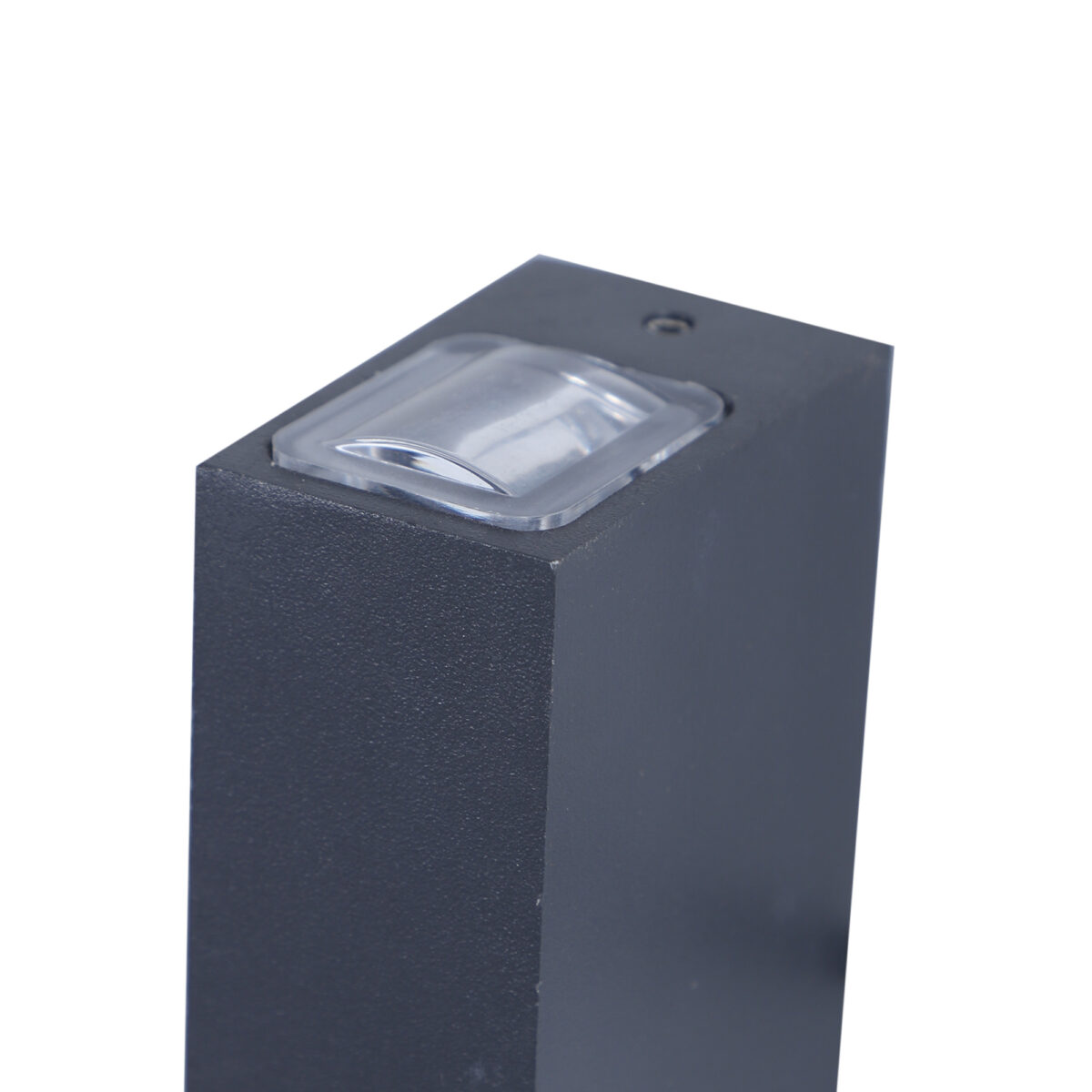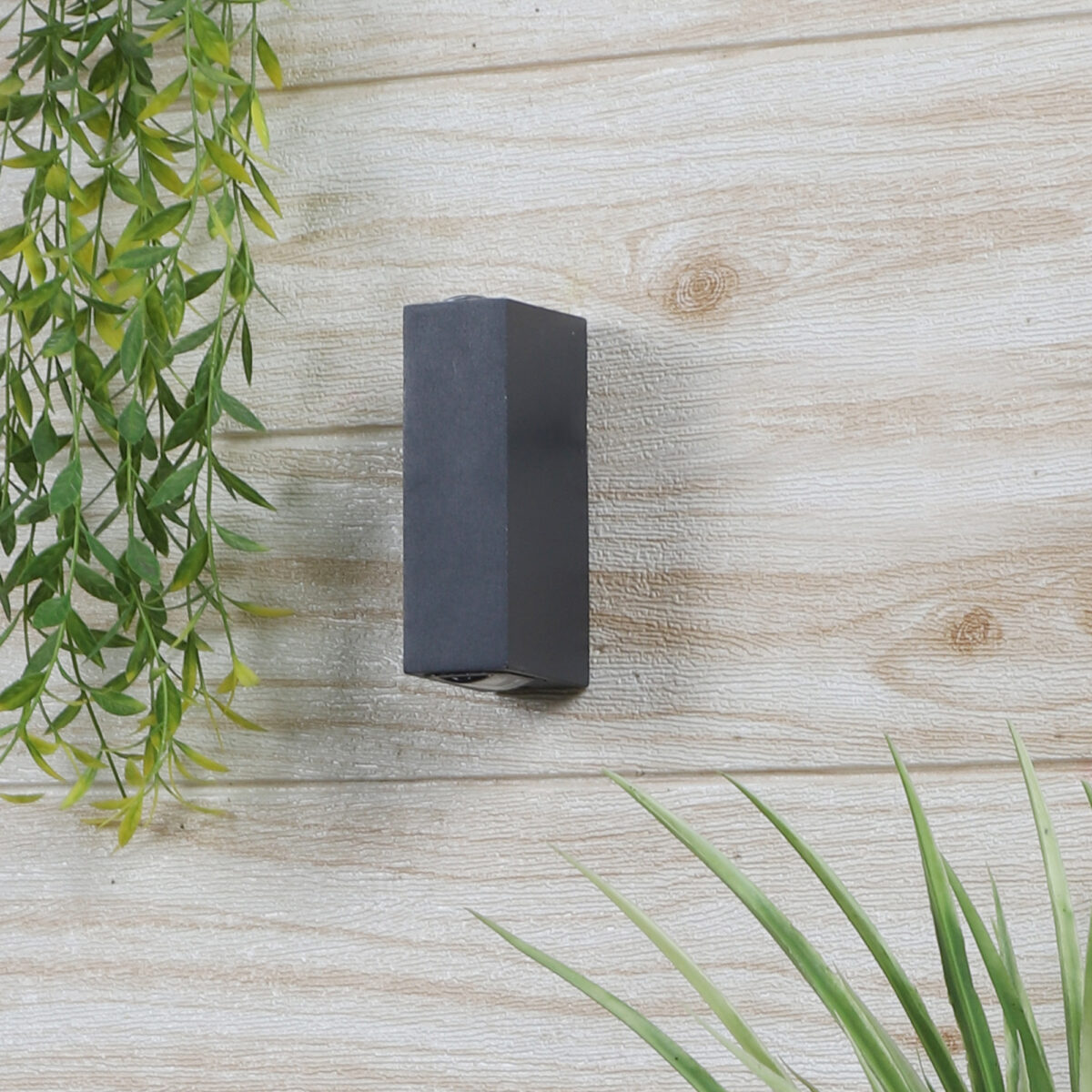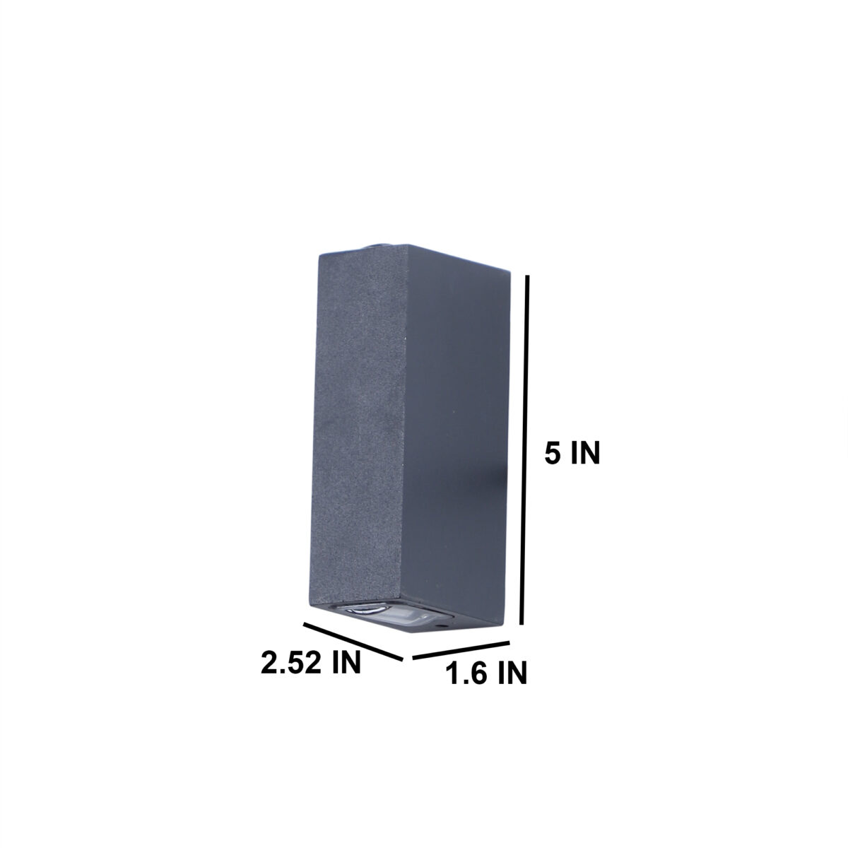 Vertical, two way, up and down aluminum die cast outdoor wall light in grey finish using high quality LED and driver with high success rate having less than 0.5% replacement. It is a two way light with high output It is economical and one of the most popular design preferred by the lighting designers, builders and architects. It can be used in both indoor and outdoor applications such as stair case walls, terrace walls, outdoor walls, boundary walls, open parking, stilt parking, basement parking, passage walls, entrance pillars. IP54 rated. Protection against splashed water.