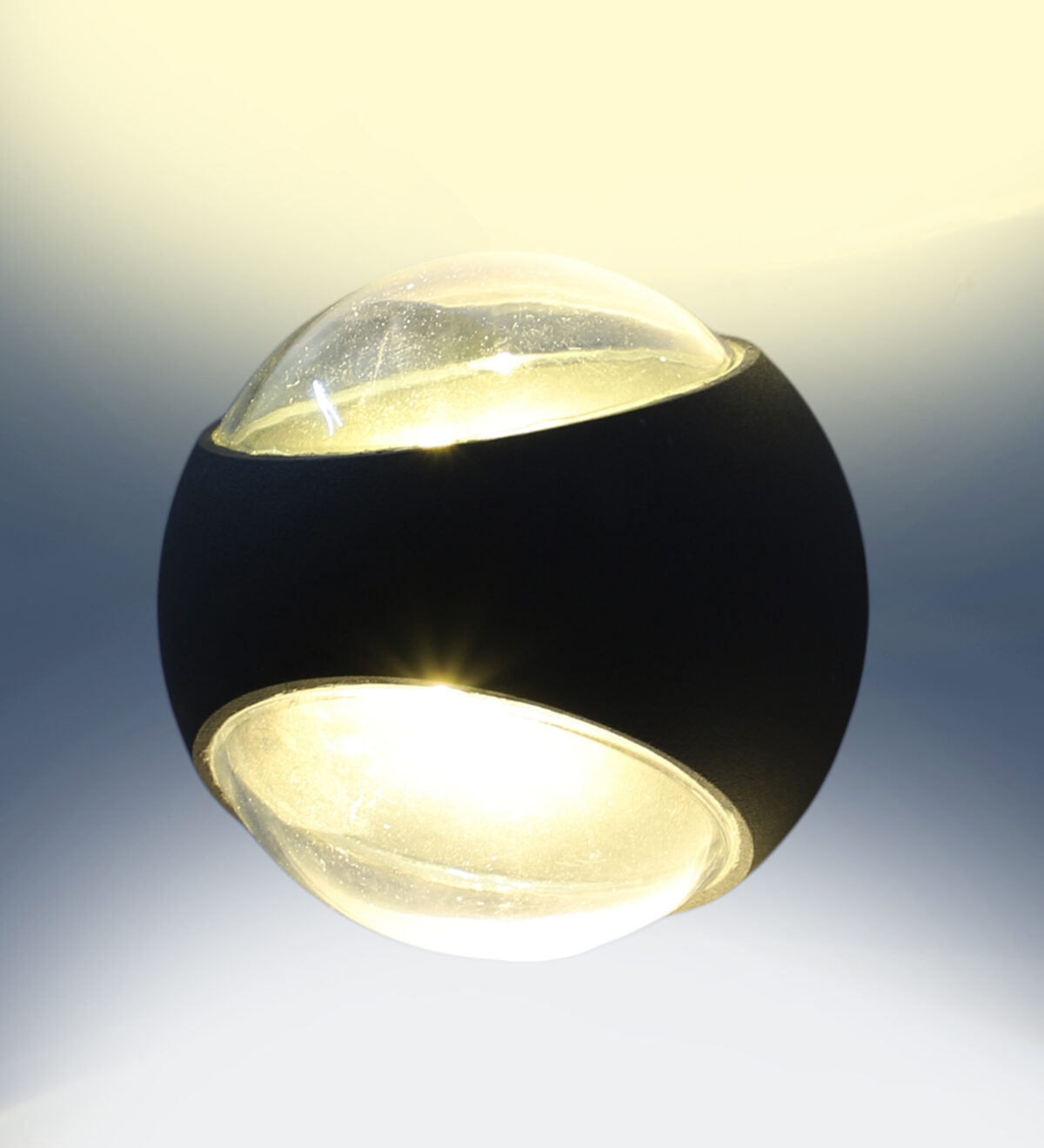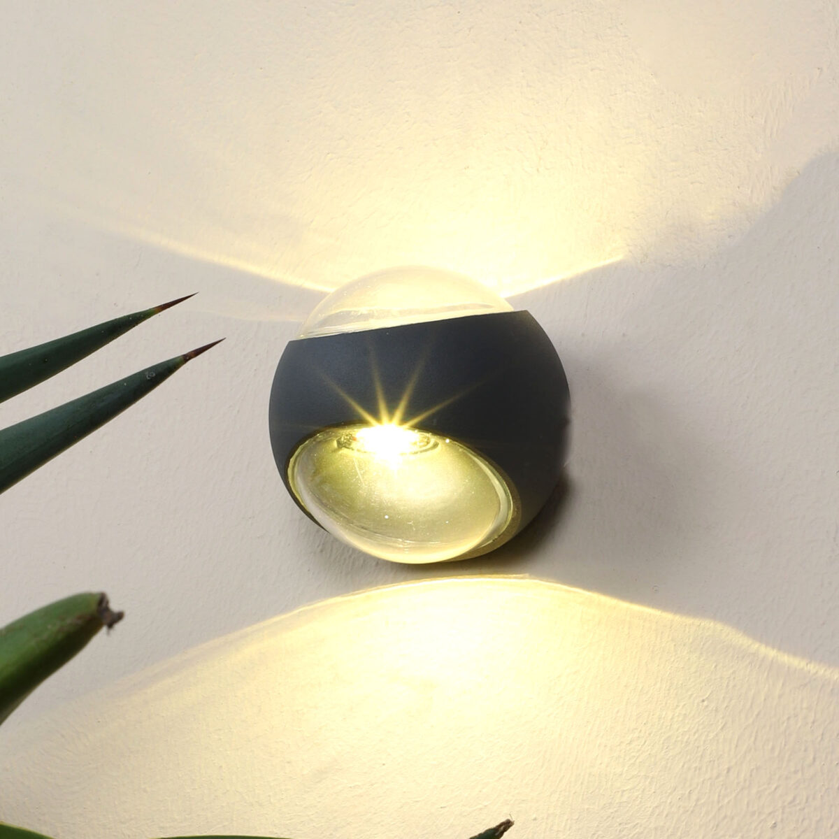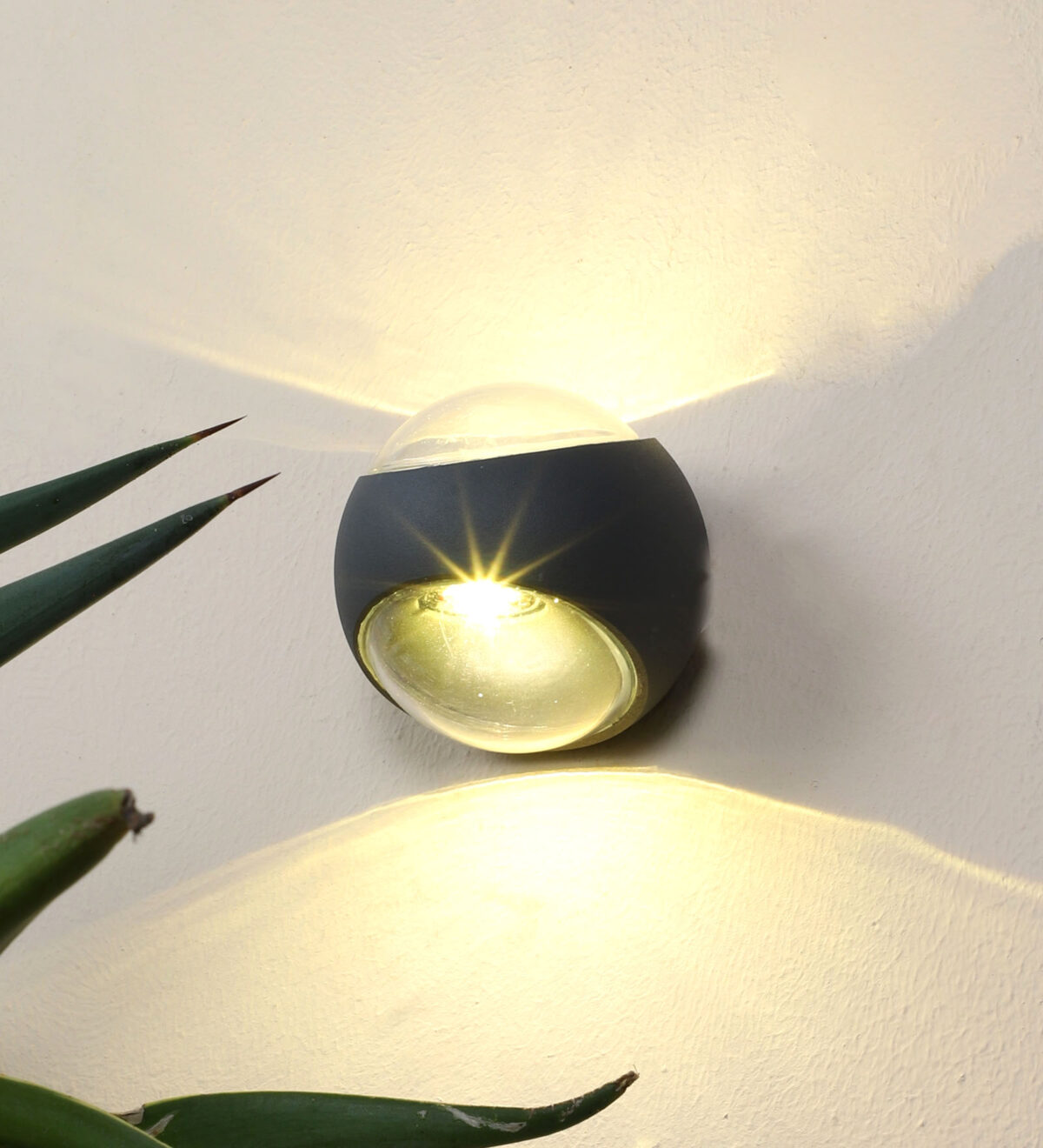 SUPERSCAPE grey finish 2X3 watt round Exterior Wall Light LED two way with CREE LED and IP65 driver 3K.