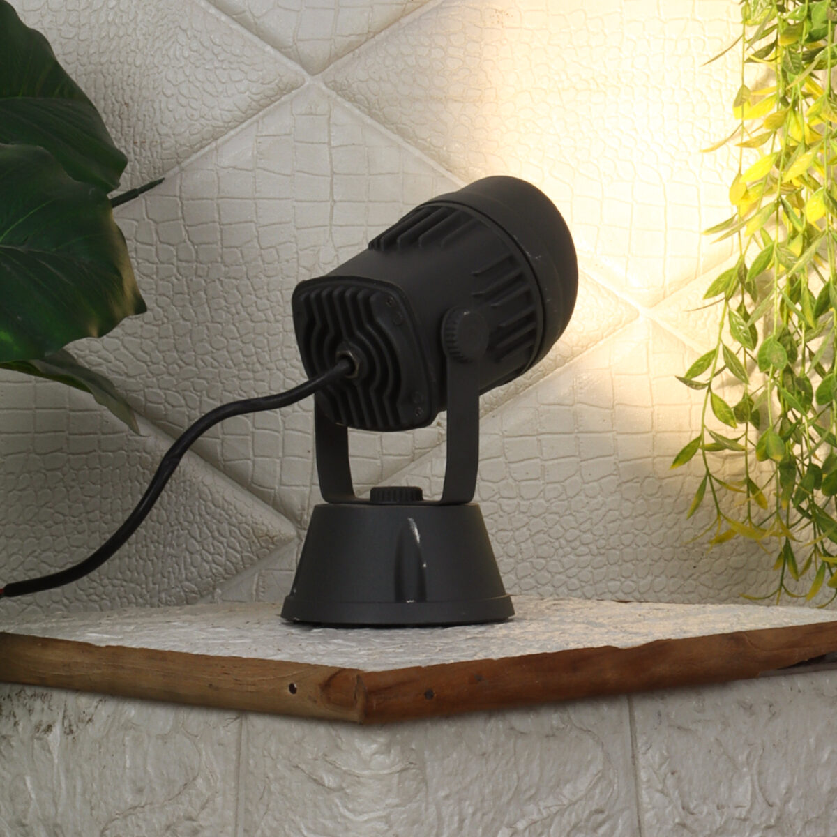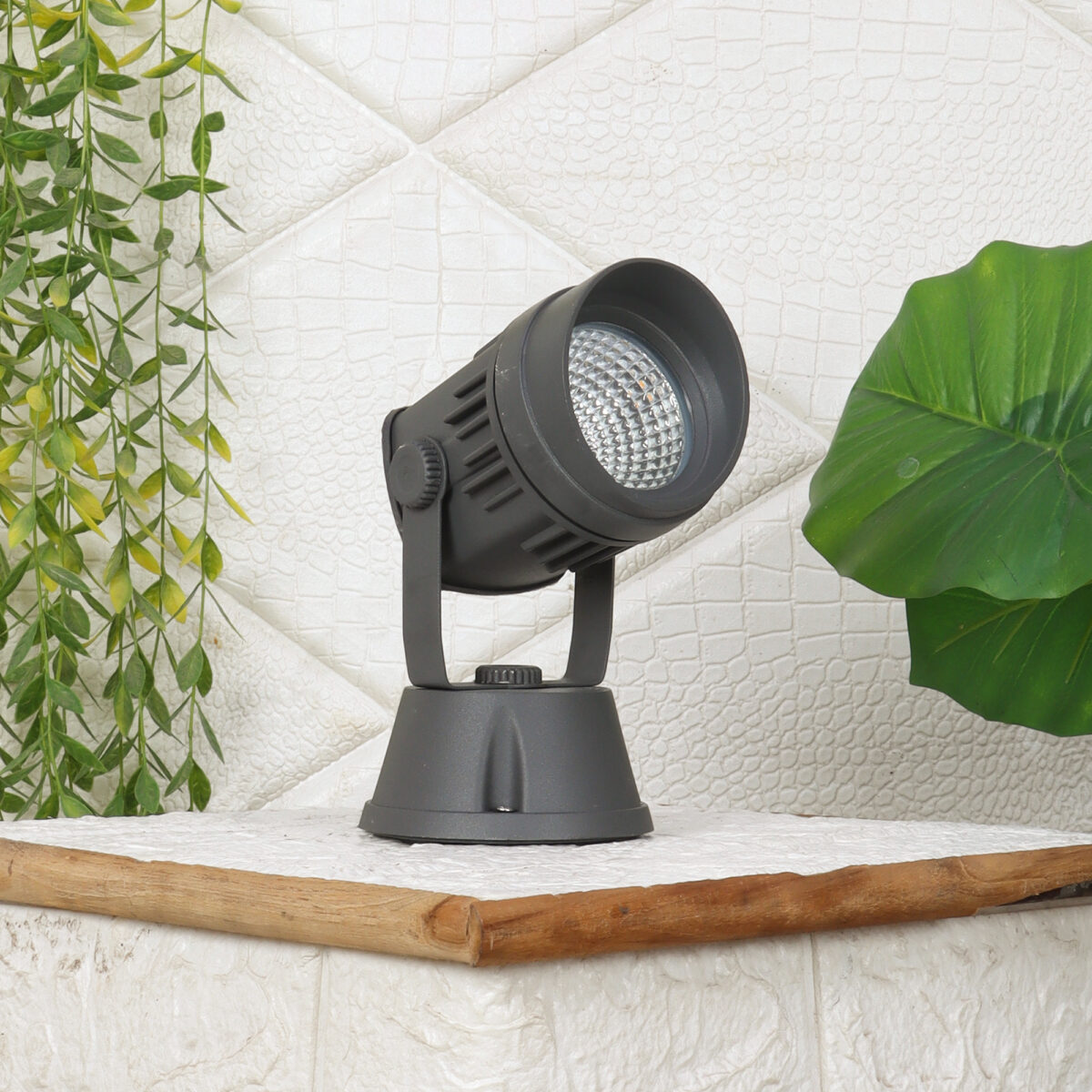 Heavy duty aluminium die cast 12 watt outdoor spot light using high quality LED and driver with high success rate having less than 0.5% replacement. IP 54 rated, providing protection from sprayed water in any direction and making this light perfect for use outdoors. Can be used to highlight plants, name plates or any other artefacts. Also available in 7 watts.