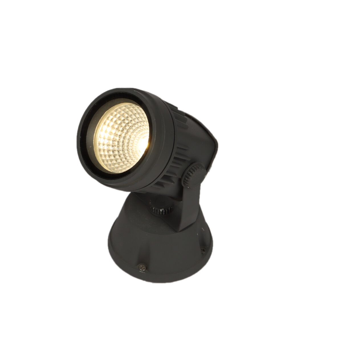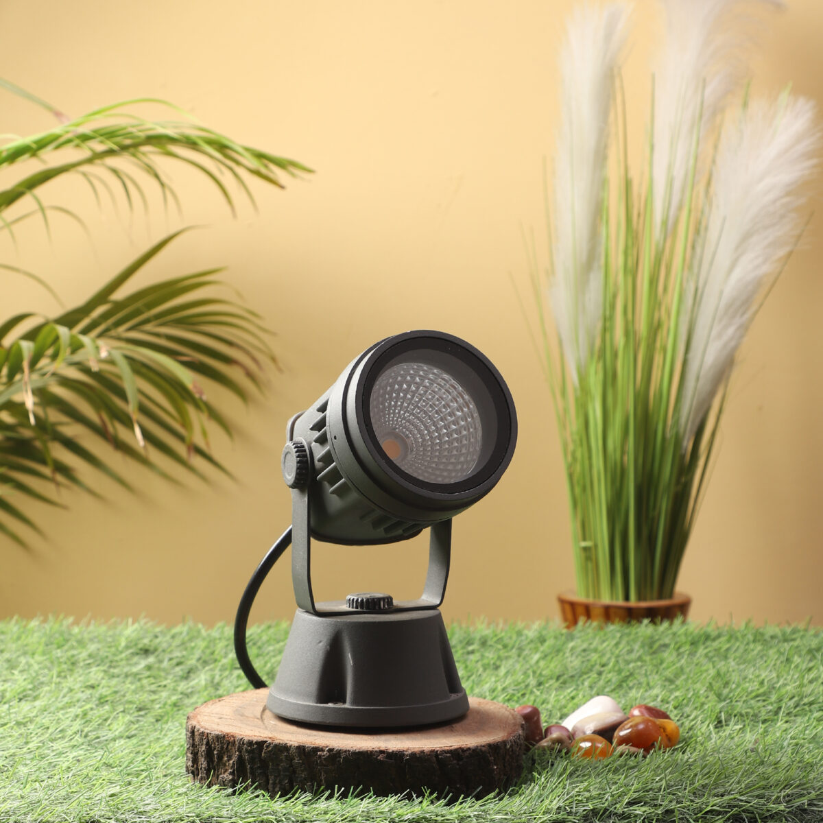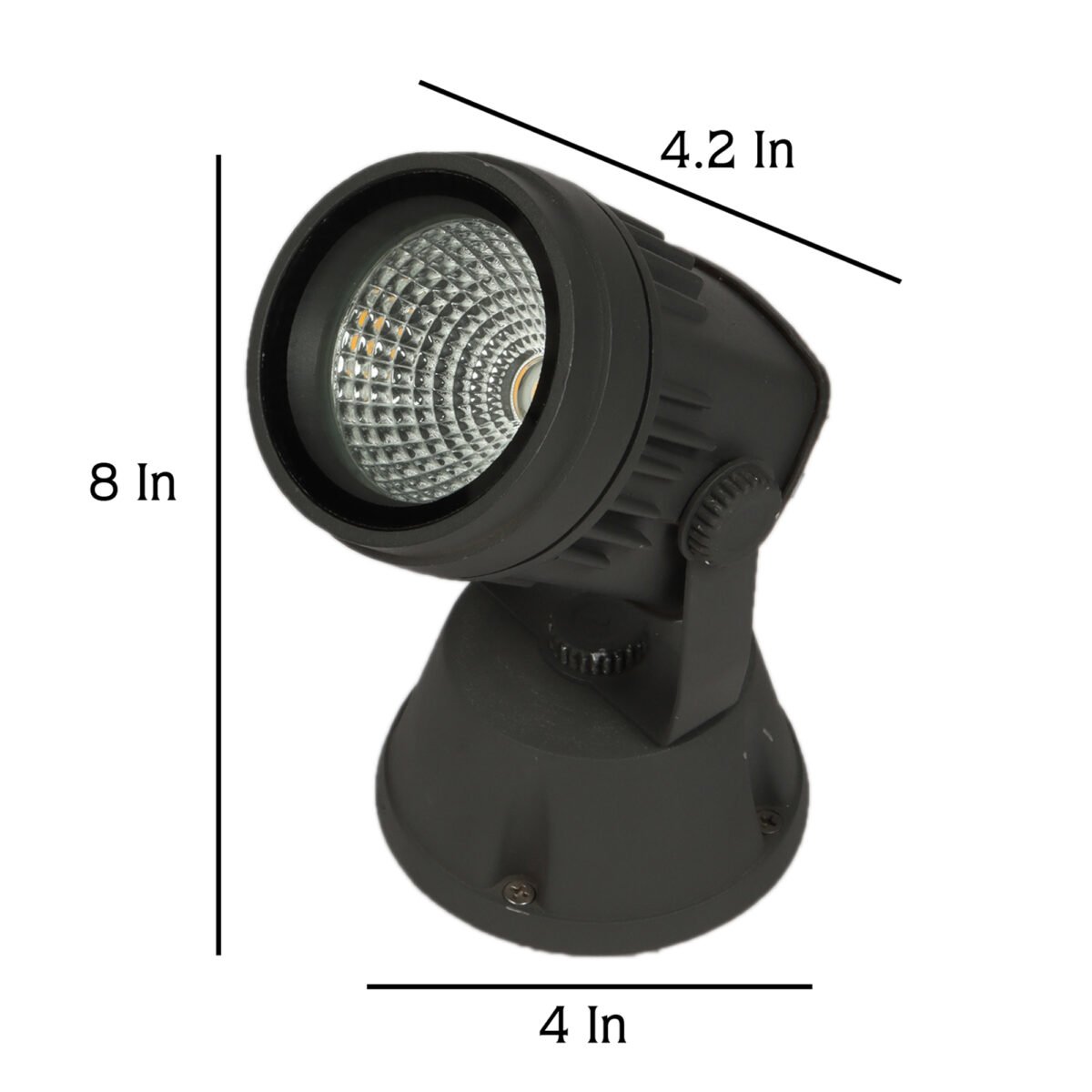Heavy duty aluminium die cast outdoor 12 watt outdoor spot light using high quality LED and driver with high success rate having less than 0.5% replacement. IP 54 rated, providing protection from sprayed water in any direction and making this light perfect for use outdoors. Can be used to highlight plants, name plates or any other artefacts. Also available in 7 watts with code K1073.