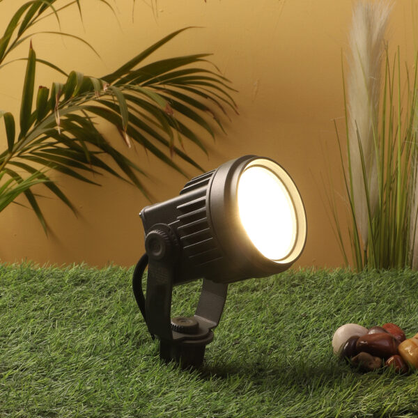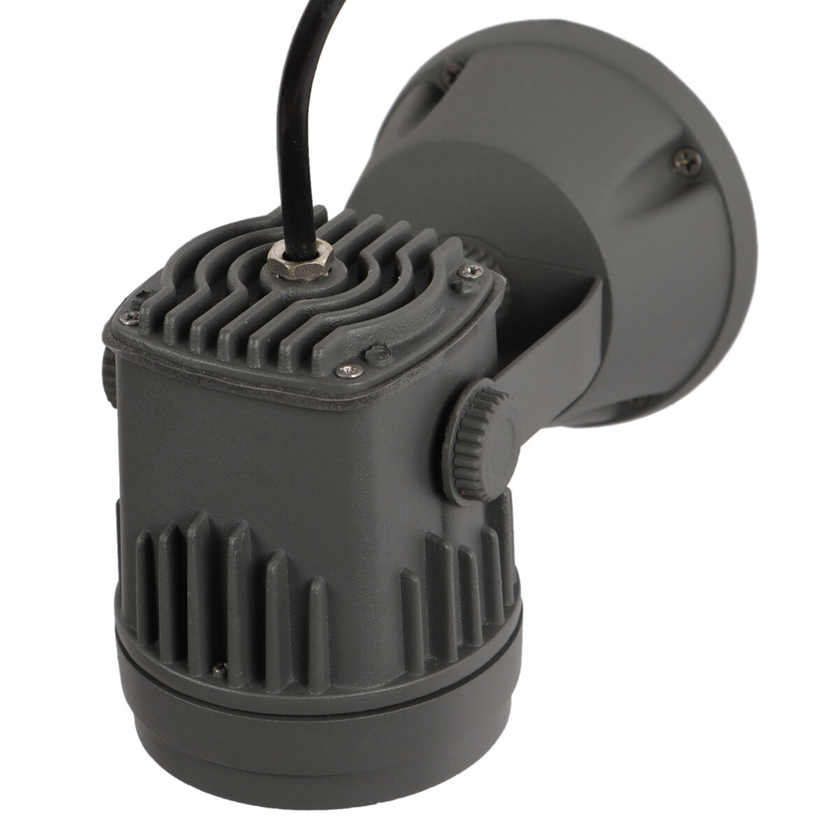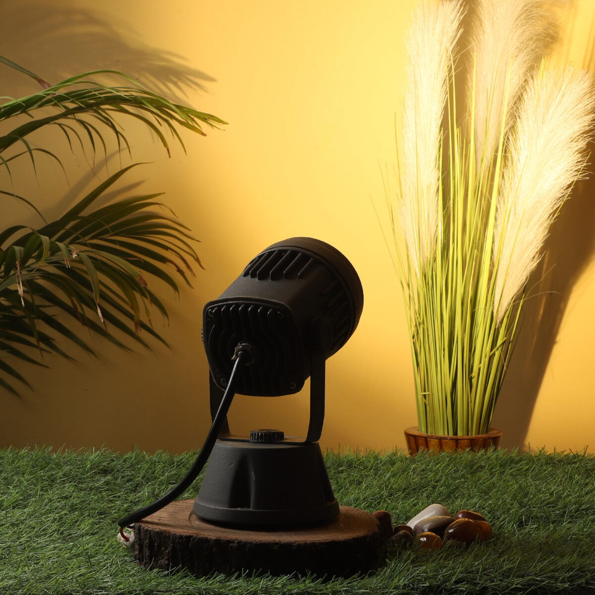 Heavy duty aluminium die cast outdoor 12 watt outdoor spot light using high quality LED and driver with high success rate having less than 0.5% replacement. IP 54 rated, providing protection from sprayed water in any direction and making this light perfect for use outdoors. Can be used to highlight plants, name plates or any other artefacts. Also available in 7 watts with code K1073.