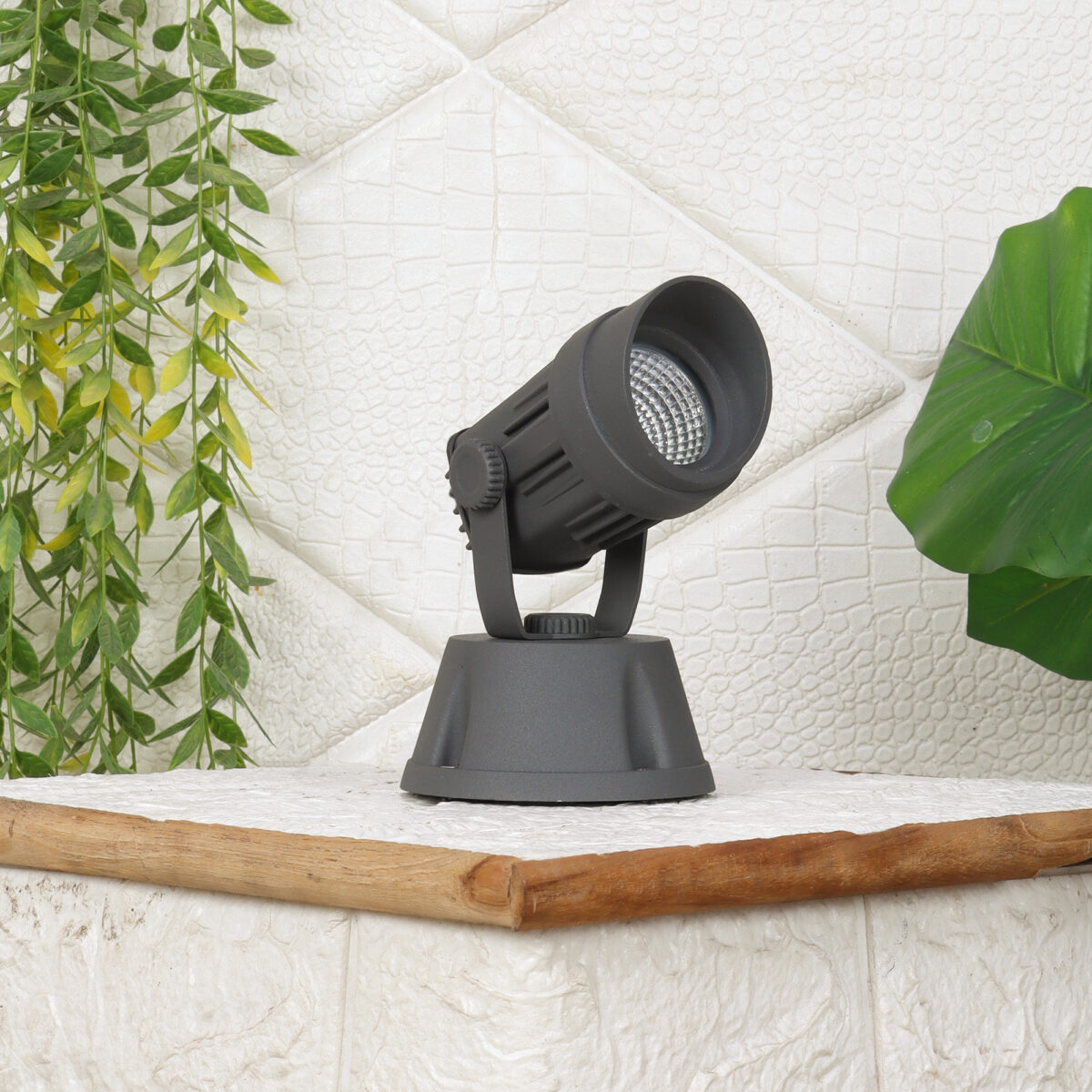 Heavy duty aluminium die cast 7 watt outdoor spot light using high quality LED and driver with high success rate having less than 0.5% replacement. IP 54 rated, providing protection from sprayed water in any direction and making this light perfect for use outdoors. Can be used to highlight plants, name plates or any other artefacts. Also available in 12 watts.