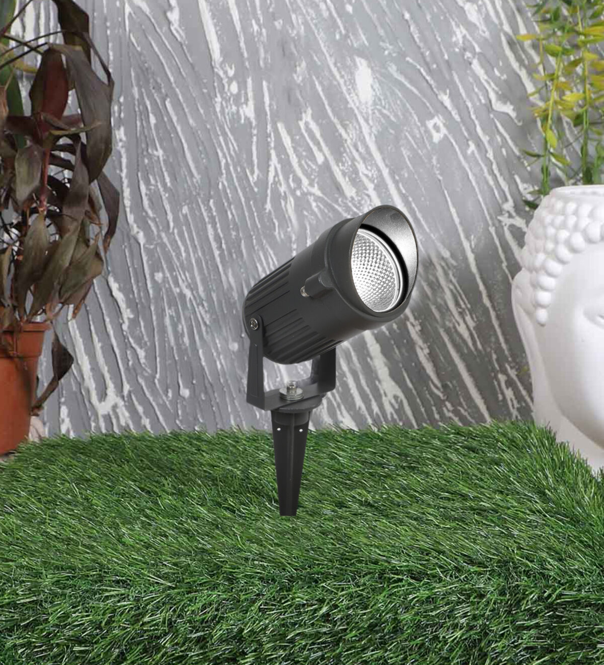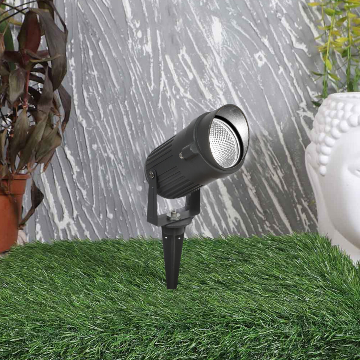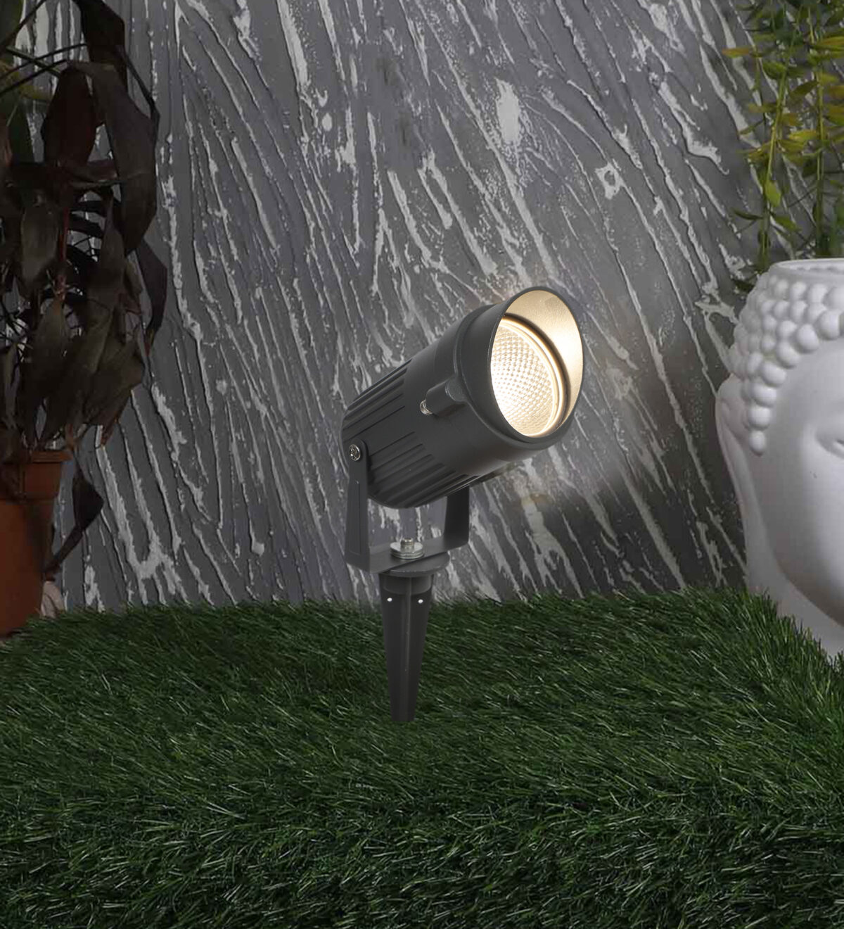 Aluminium die cast 10 watt outdoor spike light giving warm (yellow) light output, uses high quality LED and driver with high success rate having less than 0.5% replacement. Designed to withstand the harsh conditions of the great outdoors while remaining stylish and functional. Spike lights provide the ultimate flexibility in lighting your garden as they can easily be repositioned when required to illuminate different shrubs and trees throughout the seasons. The head is adjustable allowing you to illuminate any area you desire. Easy for use in gardens small or large. IP66 rated, protection against splashed water.