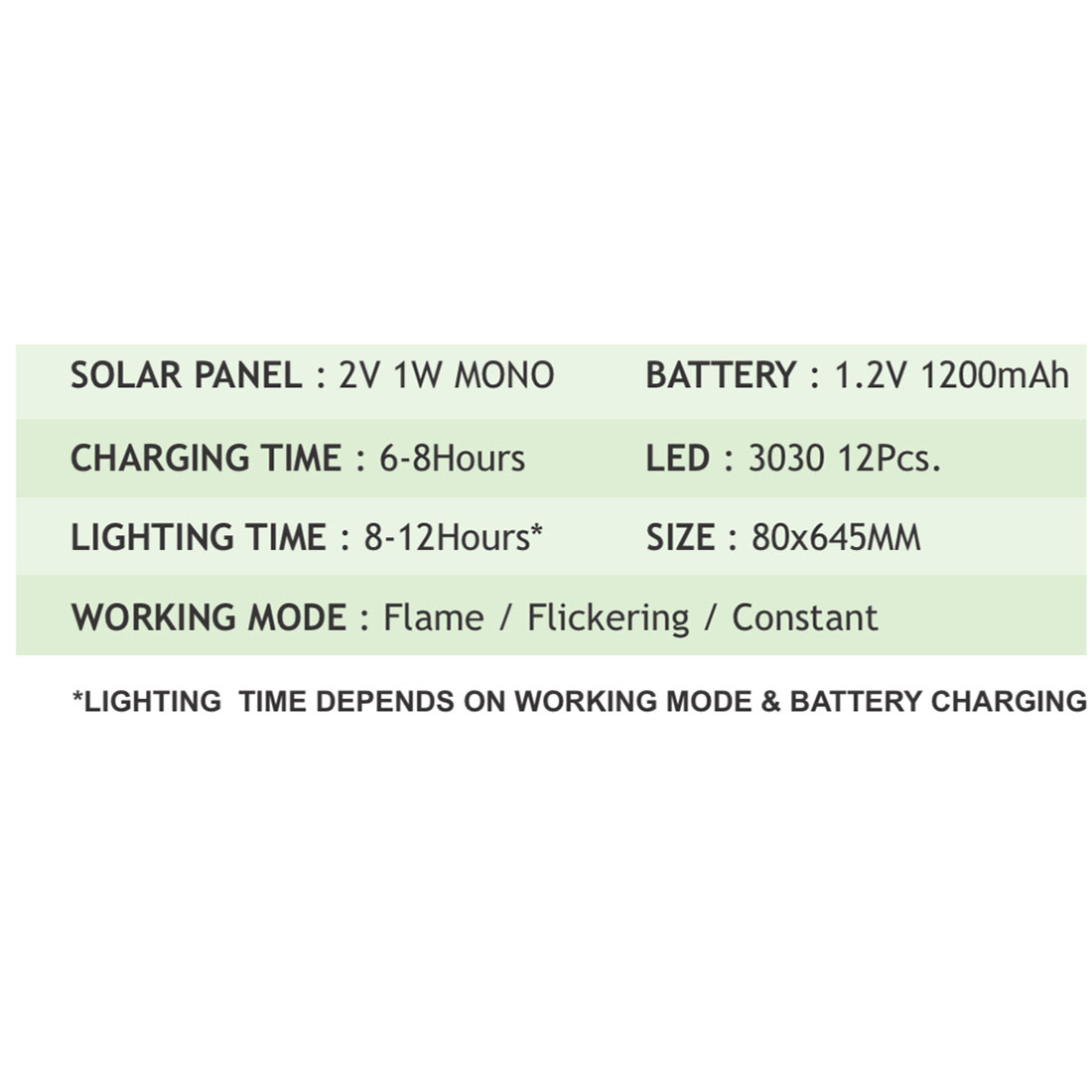 | Number of Lamps | 12 |