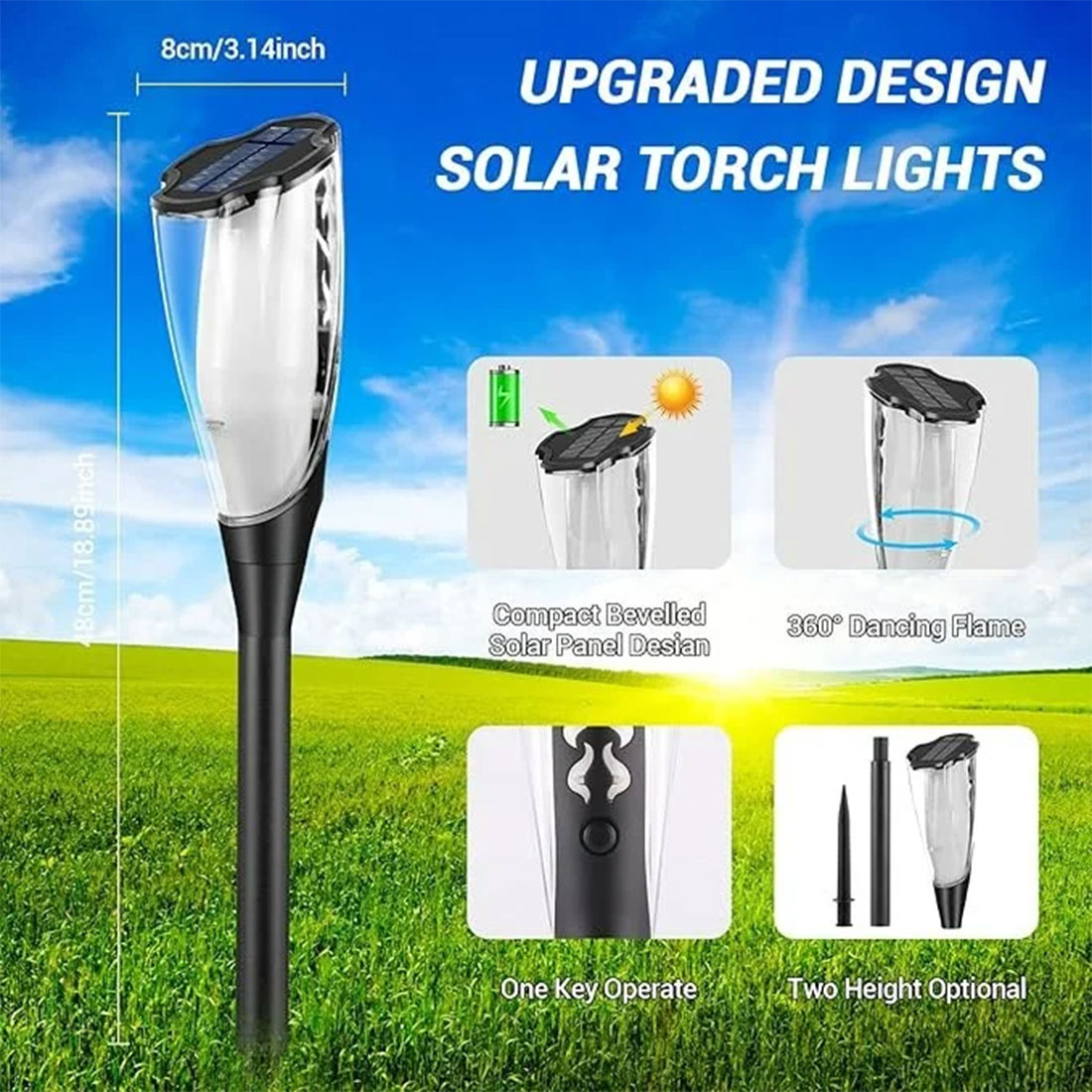 SUPERSCAPE multiuse flickering mashal Solar flame light with adjutible height