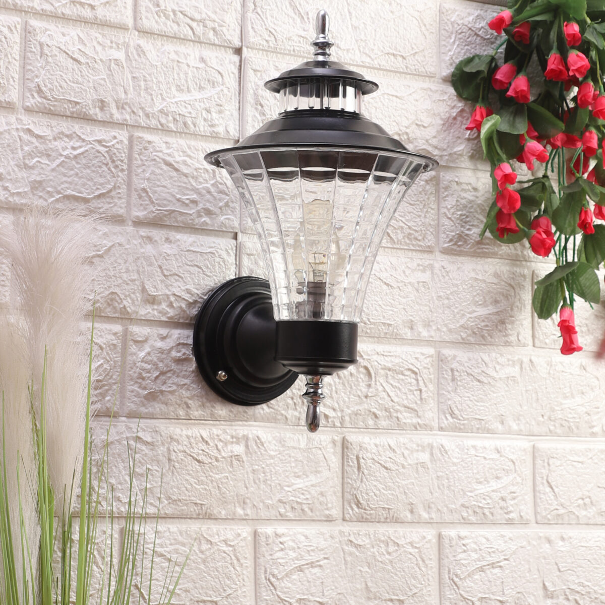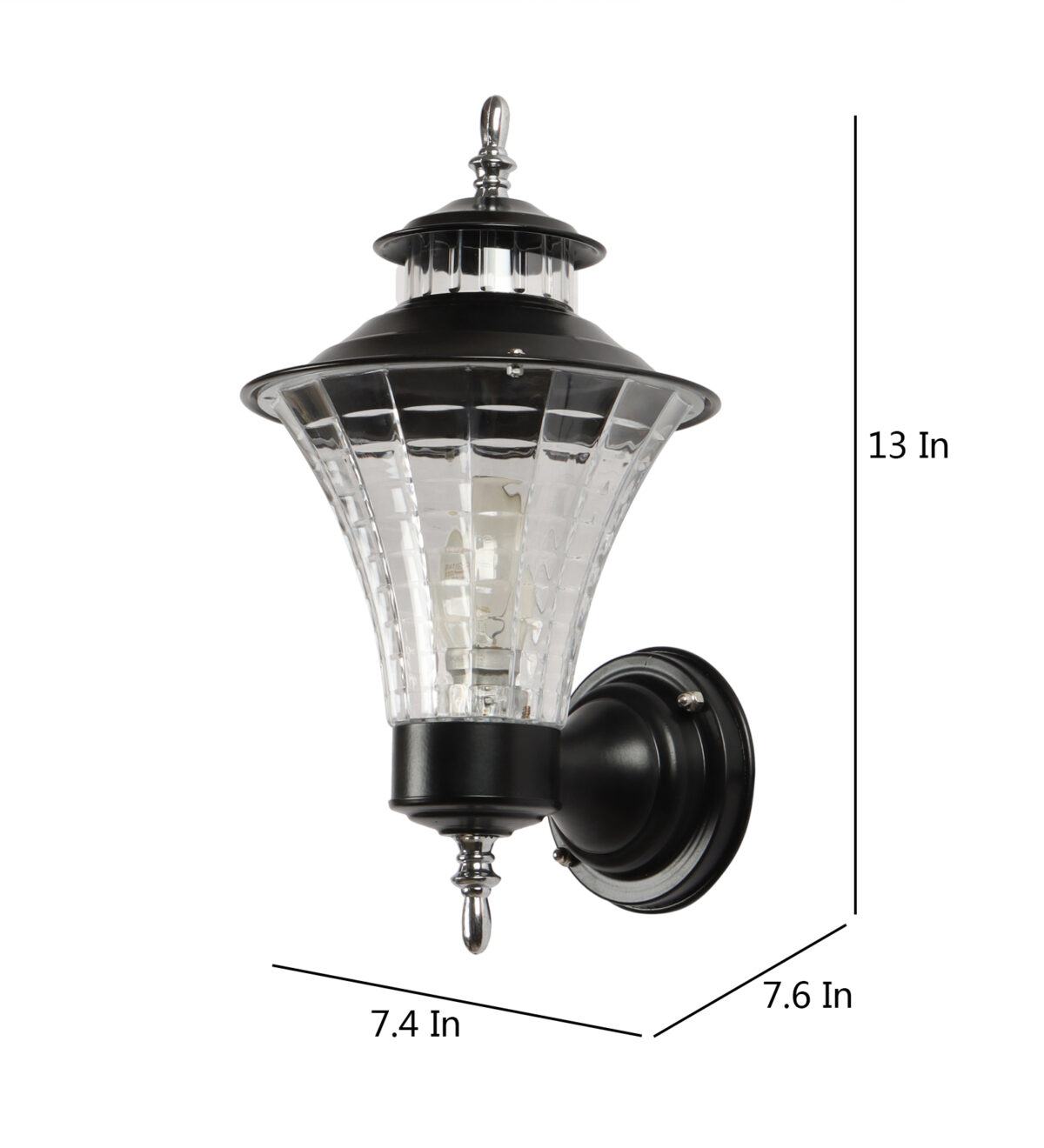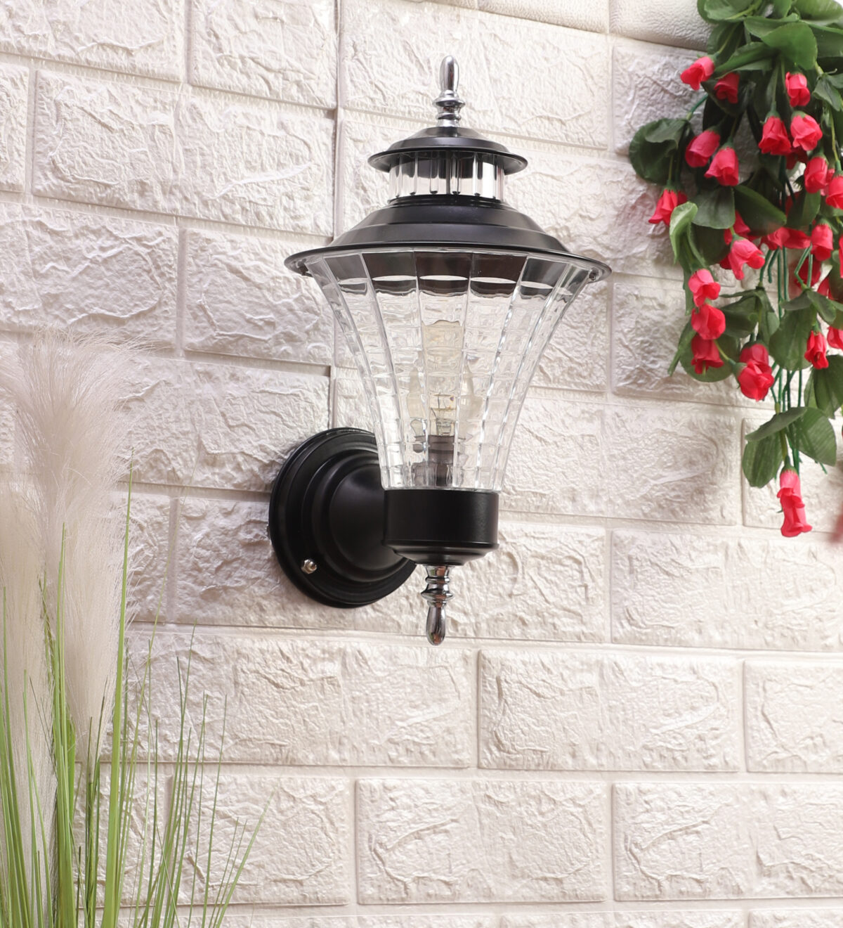 Economical, vertically mounted traditional outdoor wall light in black finish. It is maintenance free, comes with an B22 holder, only the change of lamp is required, which is available locally everywhere You can of course swap out the bulb for one that is dimmable, has a higher light output or a different color temperature. Application areas include Stair case walls, passage to staircase, terrace walls, terrace gardens outdoor walls, open parking, stilt parking, basement parking, balcony.