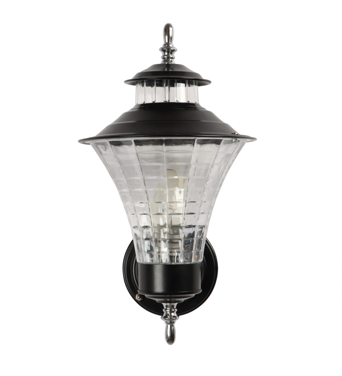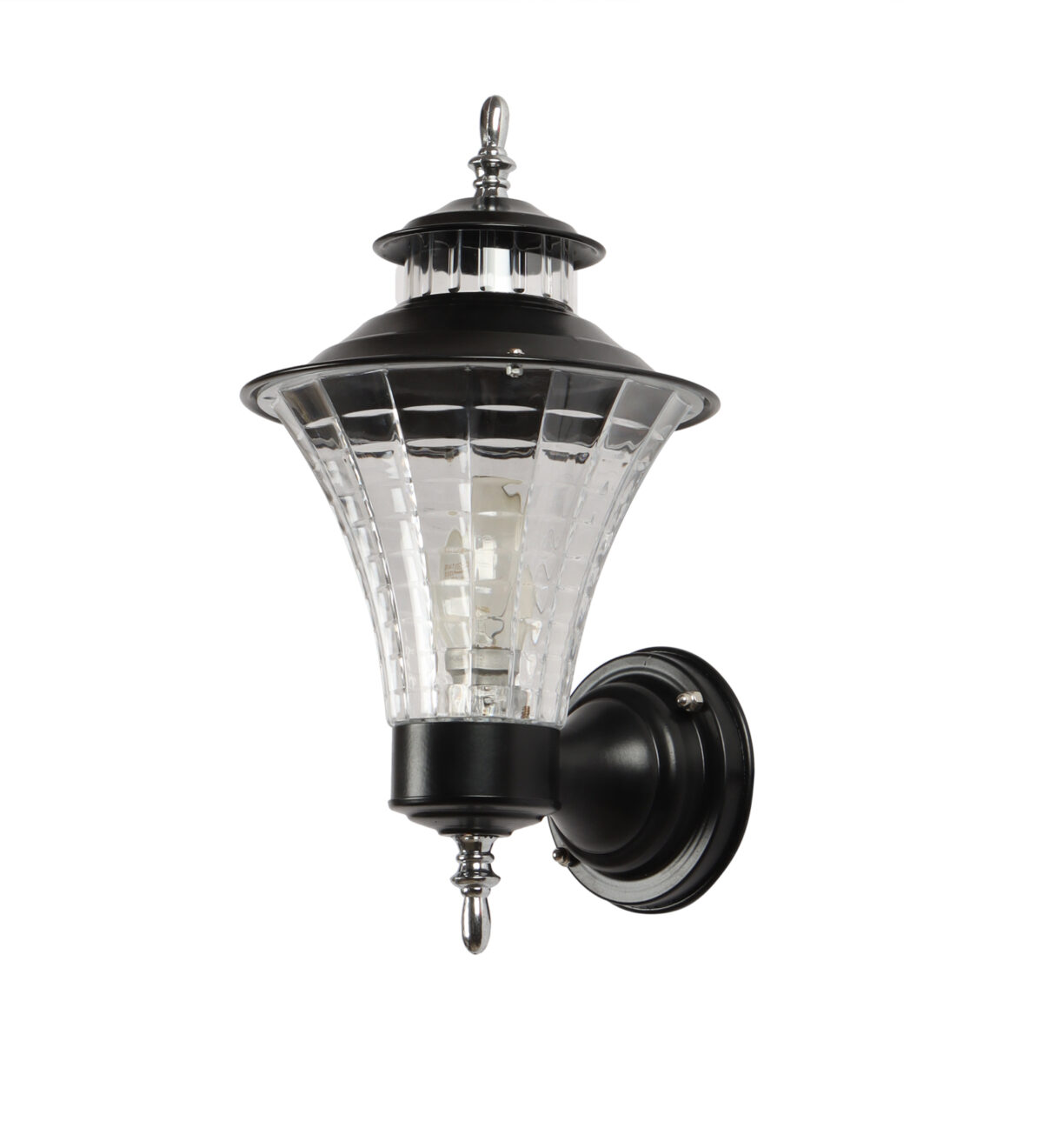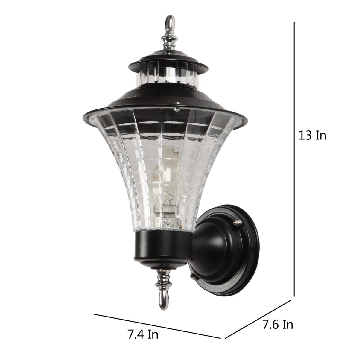 Economical, vertically mounted traditional outdoor wall light in black finish. It is maintenance free, comes with an B22 holder, only the change of lamp is required, which is available locally everywhere You can of course swap out the bulb for one that is dimmable, has a higher light output or a different color temperature. Application areas include Stair case walls, passage to staircase, terrace walls, terrace gardens outdoor walls, open parking, stilt parking, basement parking, balcony.