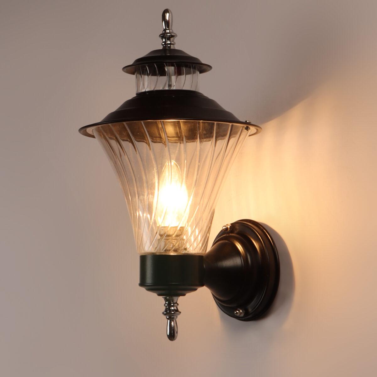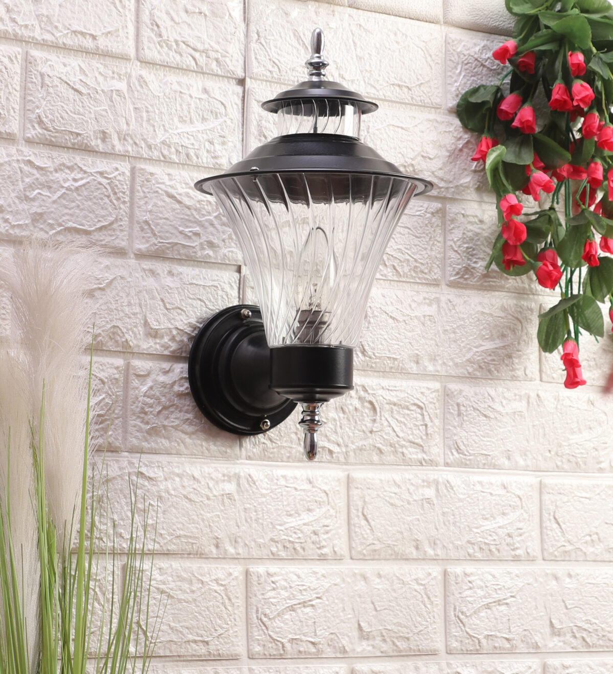 Economical, vertically mounted traditional outdoor wall light in black finish. It is maintenance free, comes with an B22 holder, only the change of lamp is required, which is available locally everywhere You can of course swap out the bulb for one that is dimmable, has a higher light output or a different color temperature. Application areas include Stair case walls, passage to staircase, terrace walls, terrace gardens, outdoor walls,, open parking, stilt parking, basement parking, balcony .