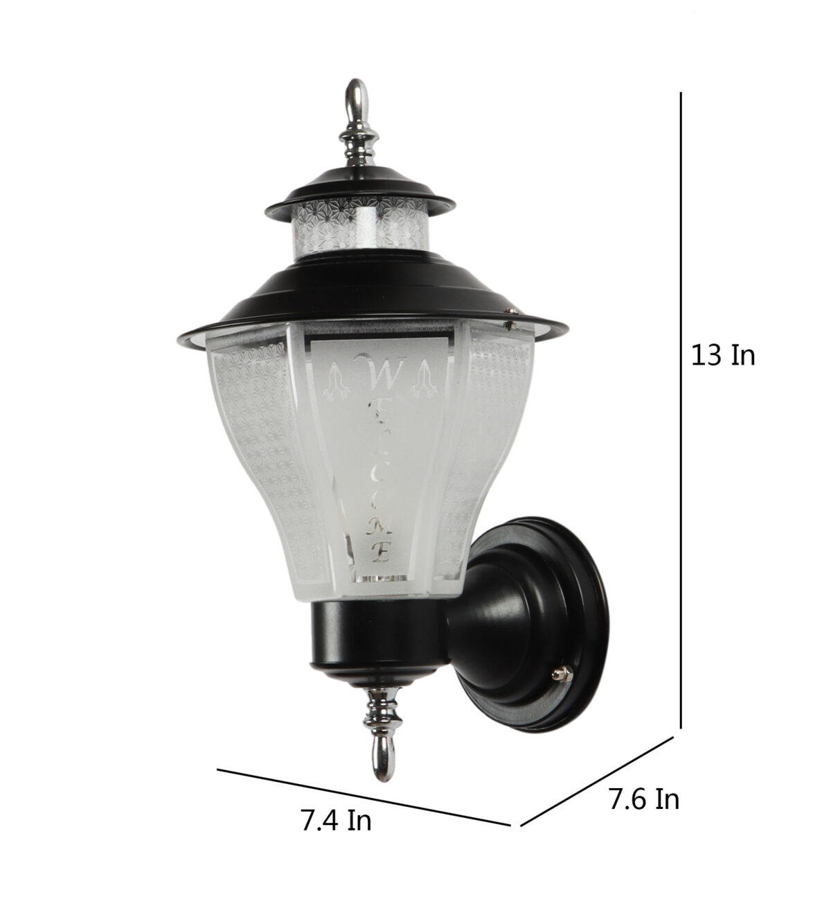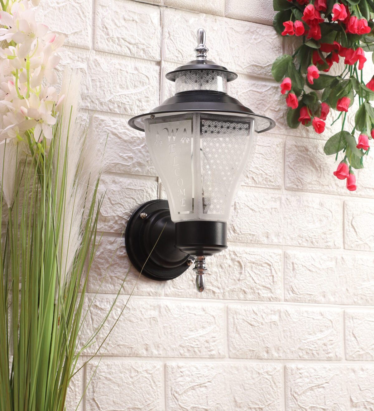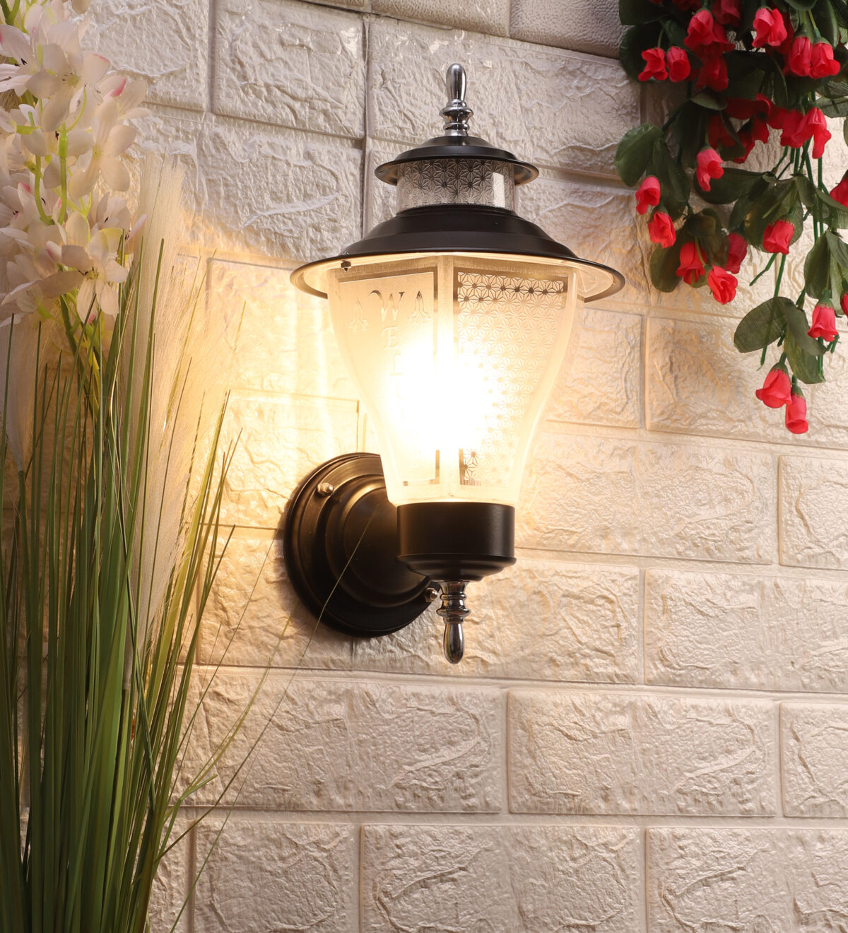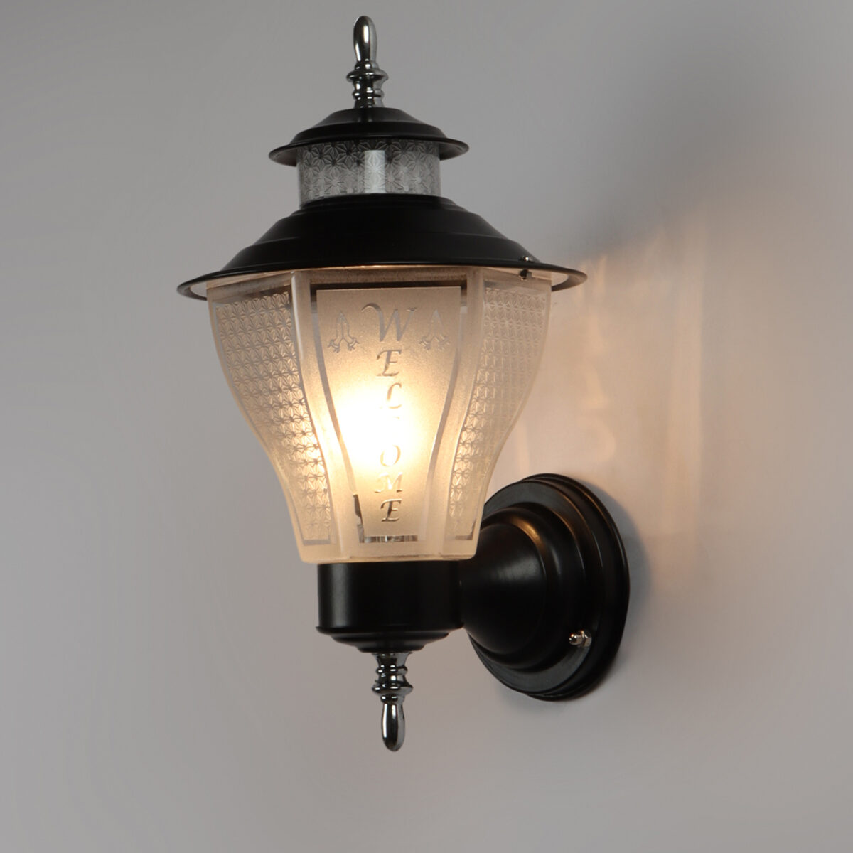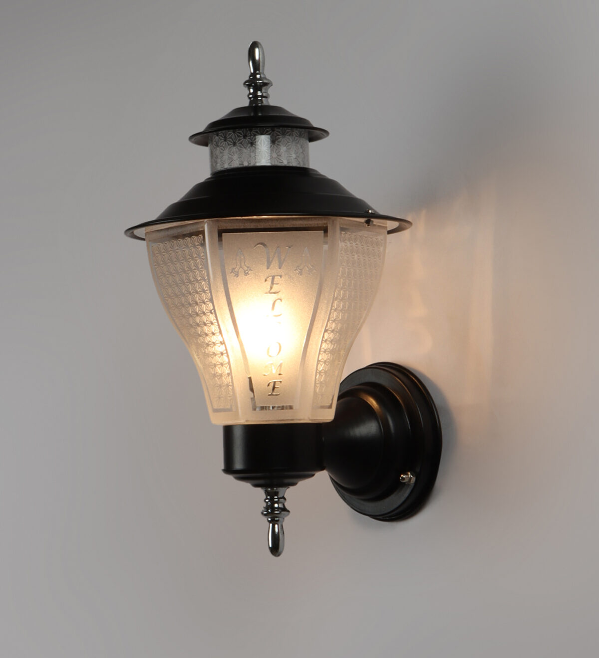 Economical, vertically mounted traditional outdoor wall light in black finish. It is maintenance free, comes with an B22 holder, only the change of lamp is required, which is available locally everywhere You can of course swap out the bulb for one that is dimmable, has a higher light output or a different color temperature. Application areas include Stair case walls, passage to staircase, terrace walls, terrace gardens, outdoor walls,, open parking, stilt parking, basement parking, balcony.