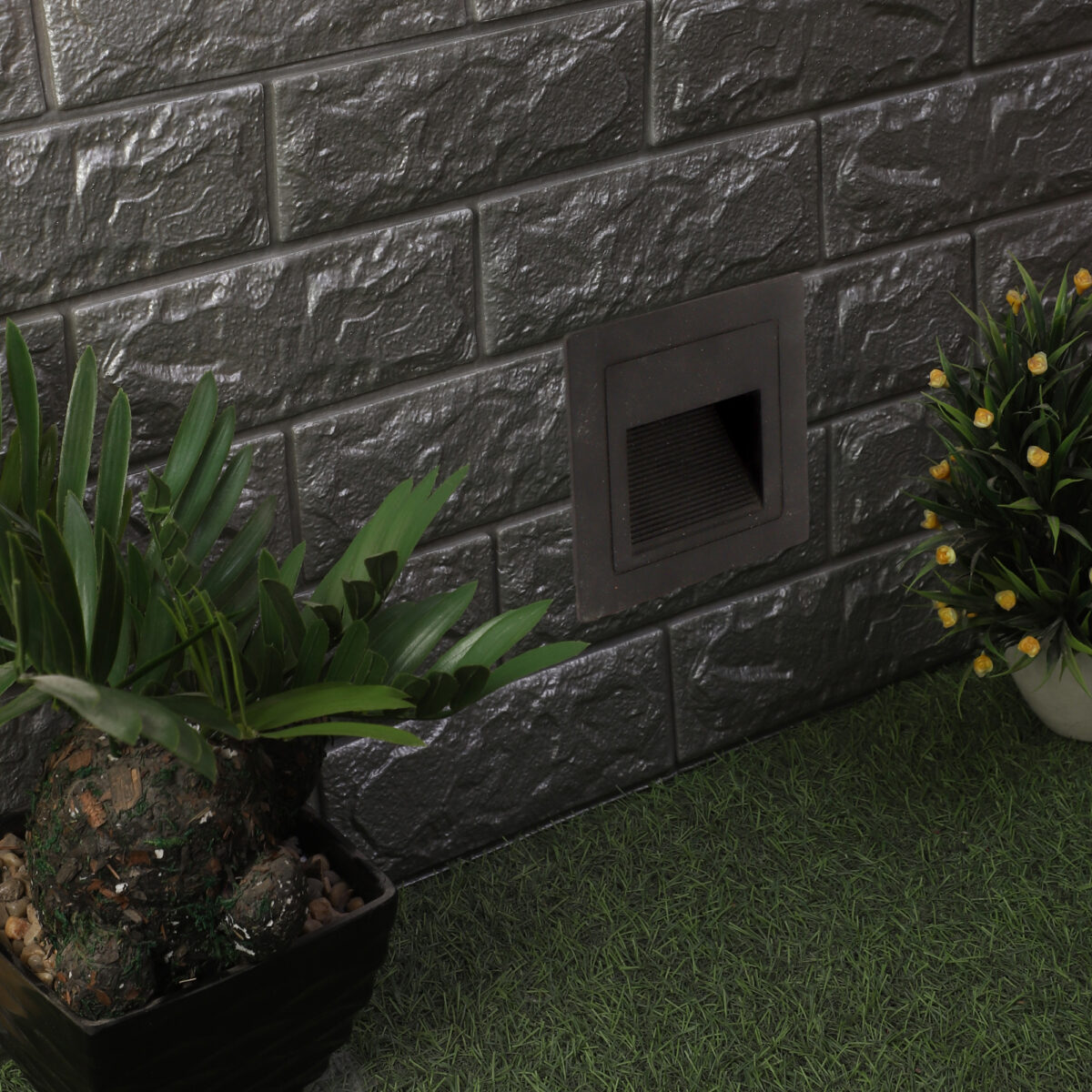 Compact, sleek aluminium die cast foot light using high quality LED and driver with high success rate having less than 0.5% replacement. Comes with a PVC casing, so that the light can easily be taken out from the wall without damaging it. It can be used in both indoor and outdoor applications such as Stair case walls, steps, passage to staircase, path way, drive way, terrace walls, outdoor walls, boundary walls, open parking, stilt parking, basement parking. Also available in 5W and 7W with code FLC60 and FLC62. It is usually installed at 12 to 15 inches height from the floor.