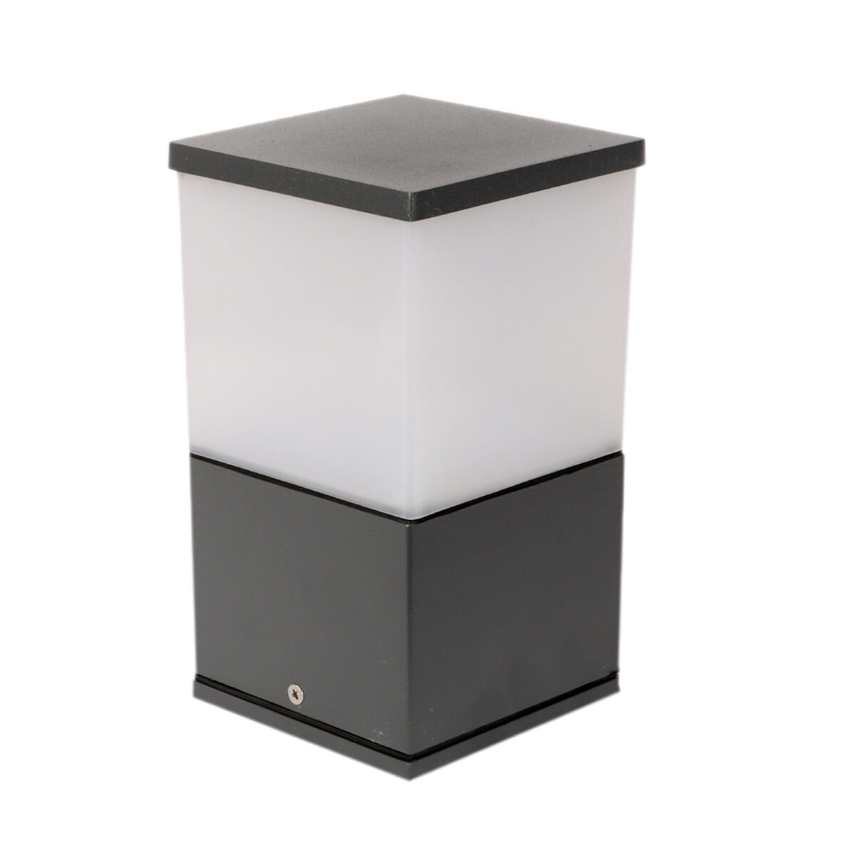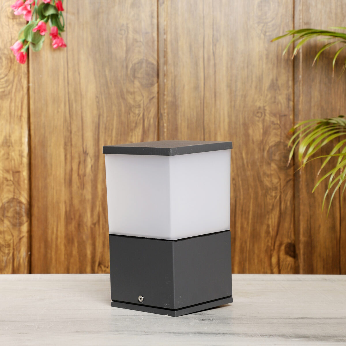 Modern compact aluminium die cast,export quality gate pillar post light in grey finish. It is maintenance free, comes with an E27 holder, only the change of lamp is required, which is available locally everywhere You can of course swap out the bulb for one that is dimmable, has a higher light output or a different color temperature. High quality acrylic is used to withstand tough weather conditions. IP 54 rated, providing protection from sprayed water in any direction and making this light perfect for use outdoors.Application areas include building entrance, on top of terrace walls, terrace gardens, boundary walls, open parking, stilt parking. Matching bollard code – K1015-S, K1015-M.