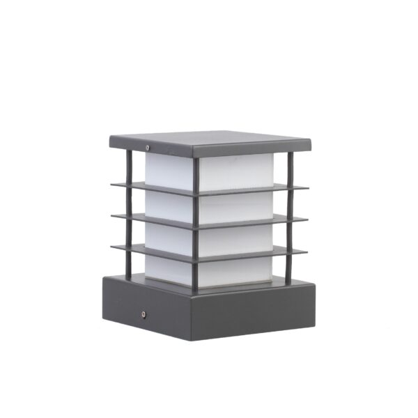Modern aluminium die cast, premium export quality gate pillar post light in grey finish. It is maintenance free, comes with an B22 holder, only the change of lamp is required, which is available locally everywhere You can of course swap out the bulb for one that is dimmable, has a higher light output or a different color temperature. High quality acrylic is used to withstand tough weather conditions. IP 54 rated, providing protection from sprayed water in any direction and making this light perfect for use outdoors. Application areas include building entrance, on top of terrace walls, terrace gardens, boundary walls, open parking, stilt parking. Available in smaller sizes with codes GL4767, GL4768. Matching bollard code K1065. LAMP NOT INCLUDED.