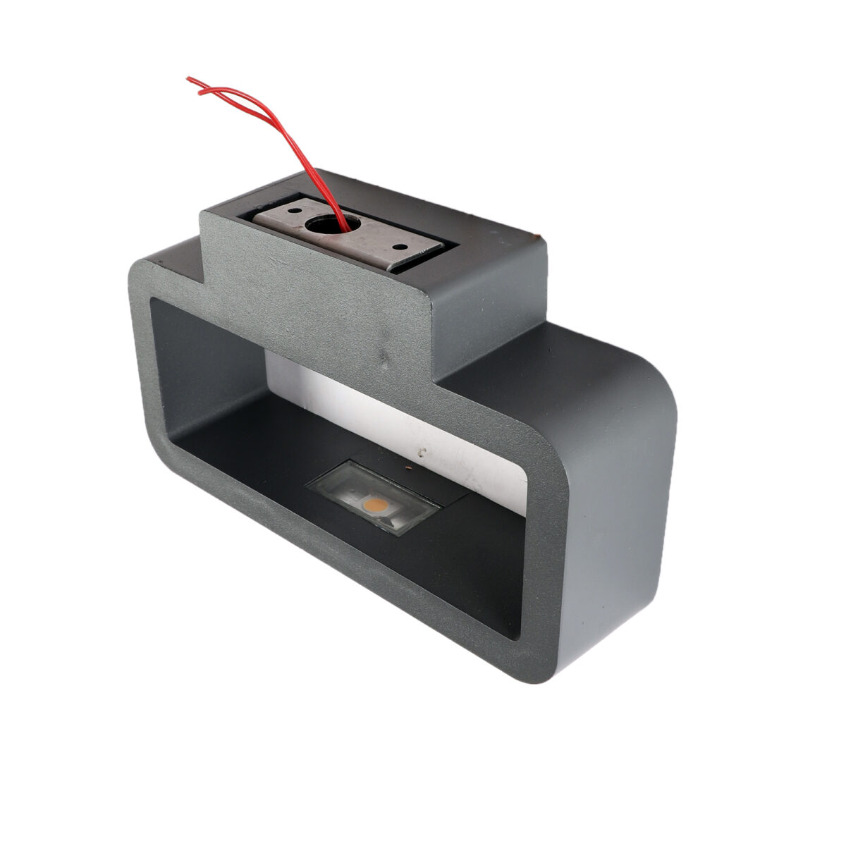 Aluminum die cast outdoor wall light in grey finish using high quality LED and driver with high success rate having less than 0.5% replacement. It is a compact light with bright output. It can be used in both indoor and outdoor applications such as stair case walls, terrace walls, outdoor walls, boundary walls, open parking, stilt parking, basement parking, passage walls, entrance pillars. IP54 rated. Protection against splashed water.
