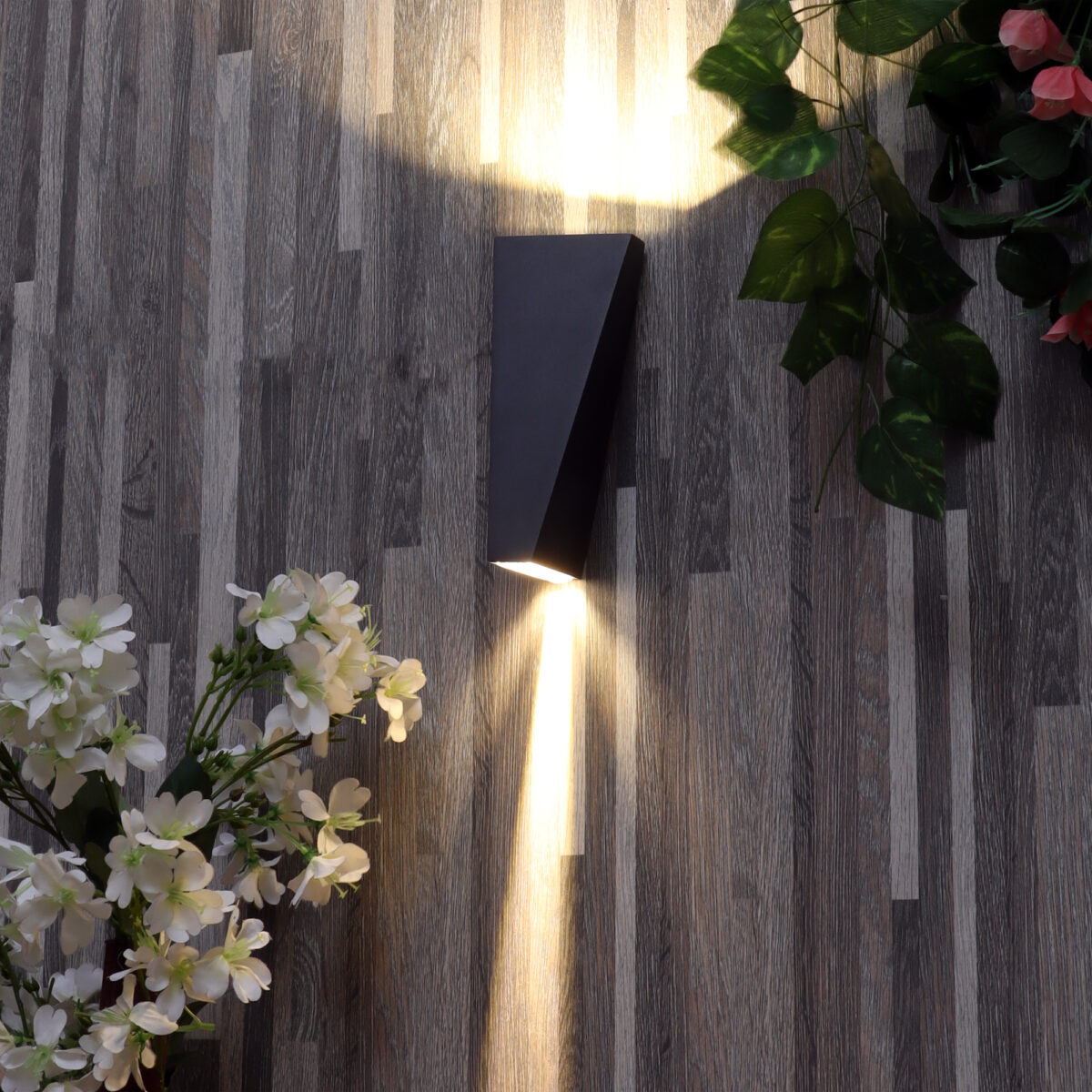 Vertical, nicely shaped up and down aluminum die cast outdoor wall light in grey finish using high quality LED and driver with high success rate having less than 0.5% replacement. It is a unique two way light providing a narrow beam in one direction and spread output in another direction. It can be used in both indoor and outdoor applications such as stair case walls, terrace walls, outdoor walls, boundary walls, open parking, stilt parking, basement parking, passage walls, entrance pillars. IP65 rated. Protection against splashed water.
