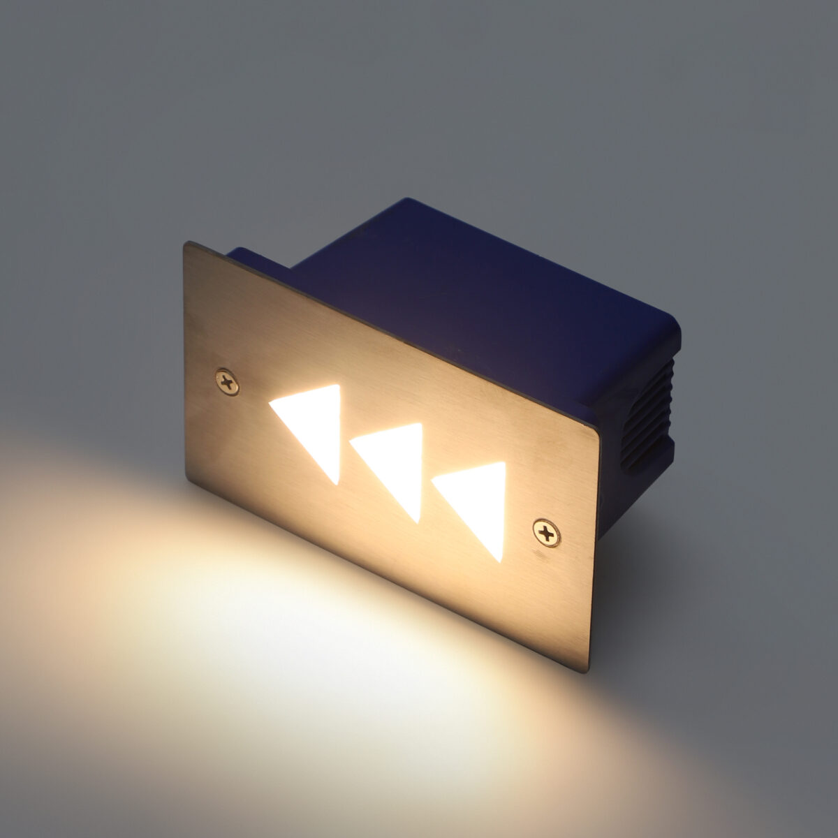 Compact, sleek aluminium die cast with steel plate direction indicating foot light using high quality LED and driver with high success rate having less than 0.5% replacement. Comes with a PVC casing, so that the light can easily be taken out from the wall without damaging it. It can be used for both indoor and outdoor applications.