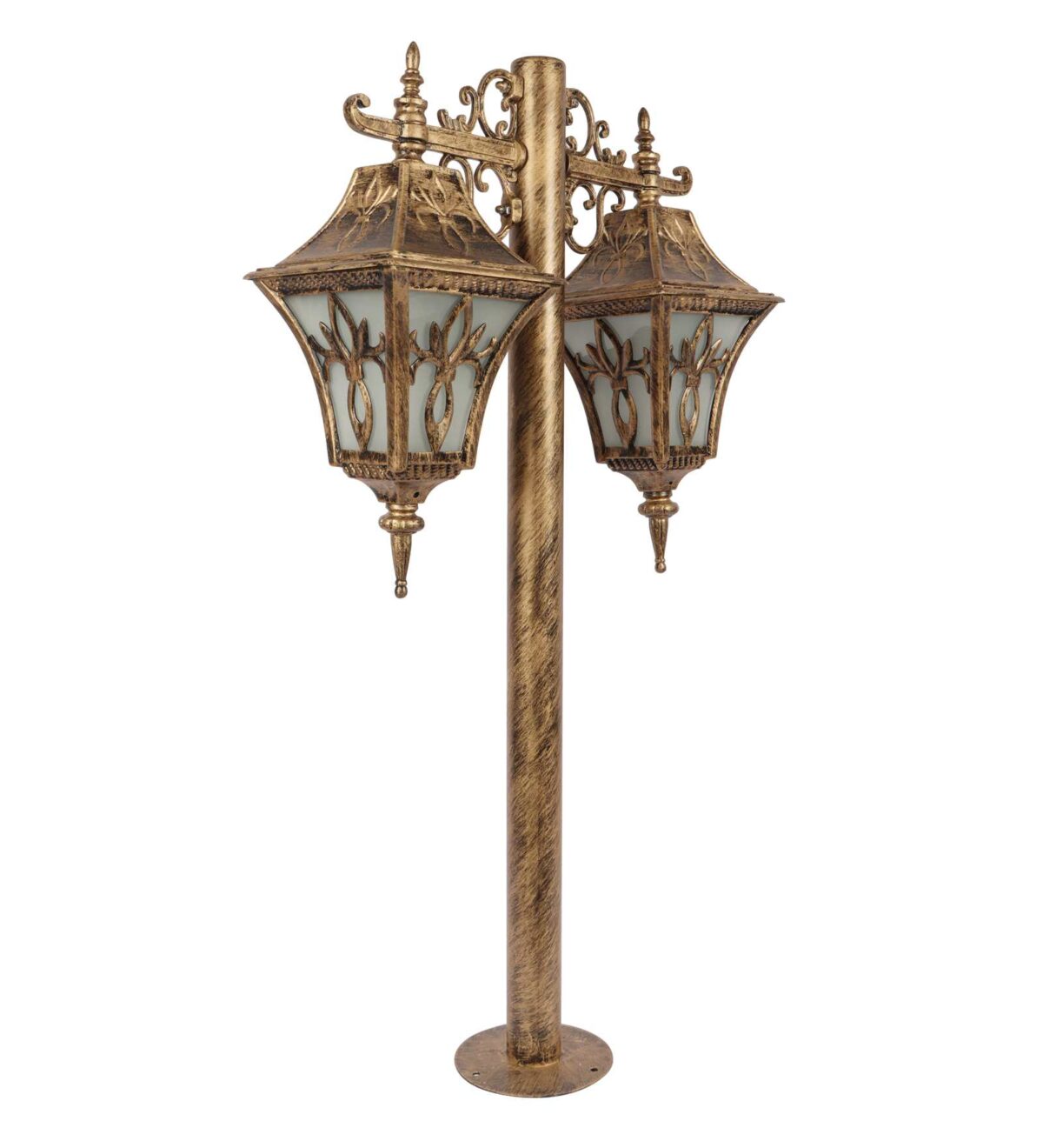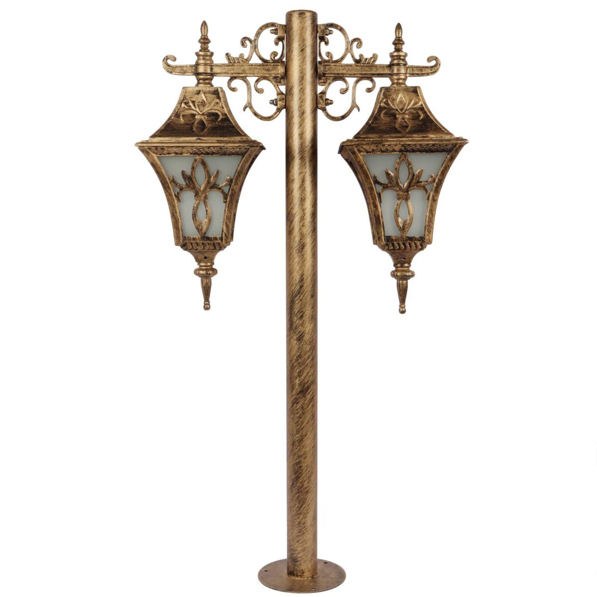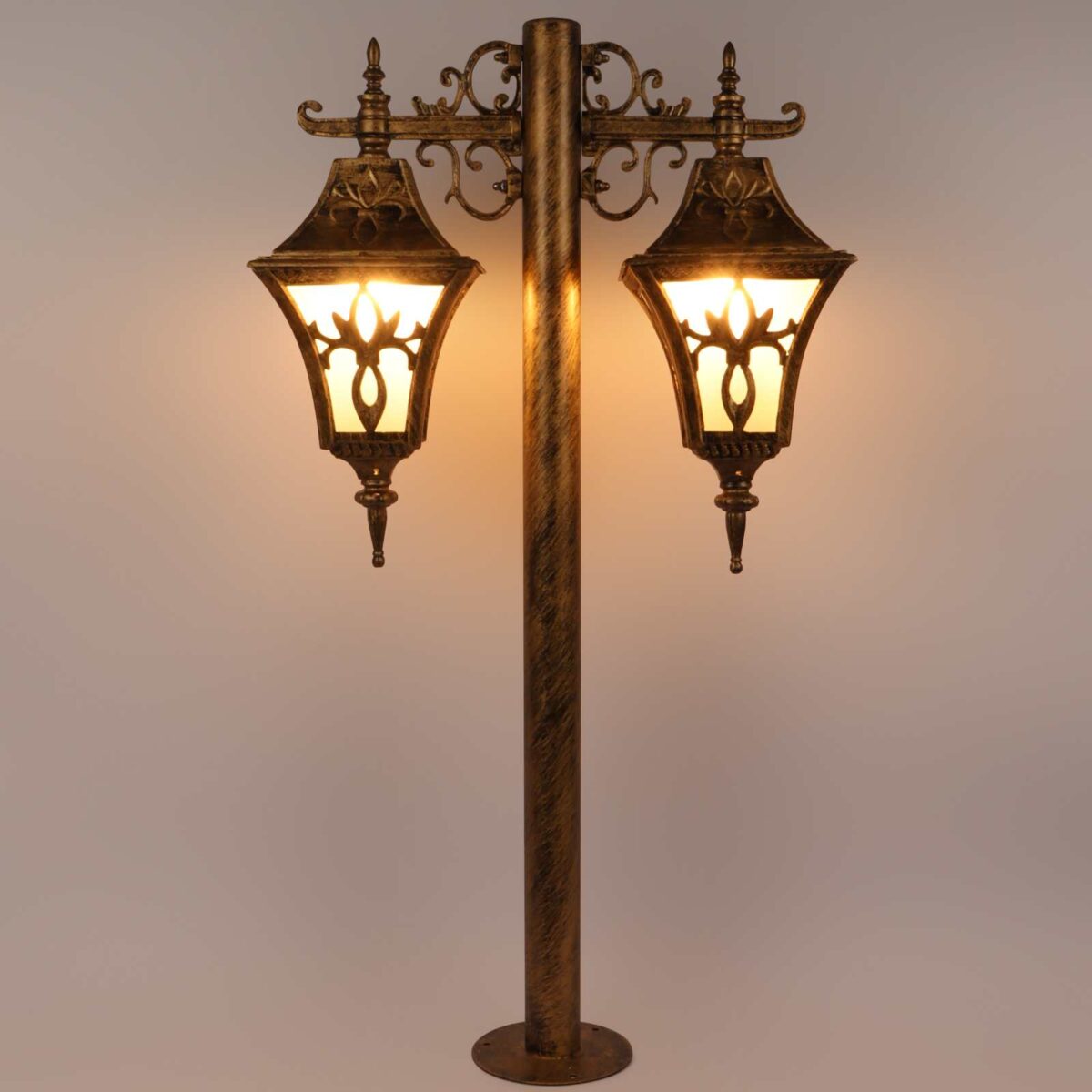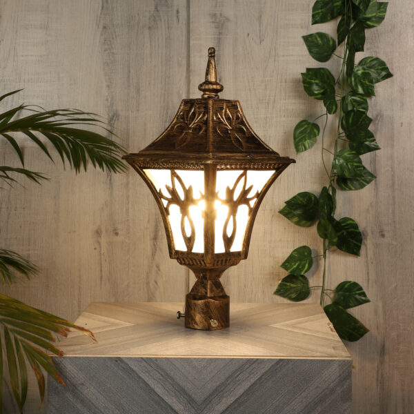 Heavy duty, designer, export quality, traditional aluminium die cast maintainence free bollard in antique gold finish and is used to illuminate exterior garden and pathway and lead visitors to your door. It has B22 holder. You can of course swap out the bulb for one that is dimmable, has a higher light output or a different colour temperature. It can be used wherever traditional look has to be given. It has a matching gate light, wall light, hanging light and a single light bollard. All designs available in black finish also. LAMP NOT INCLUDED.