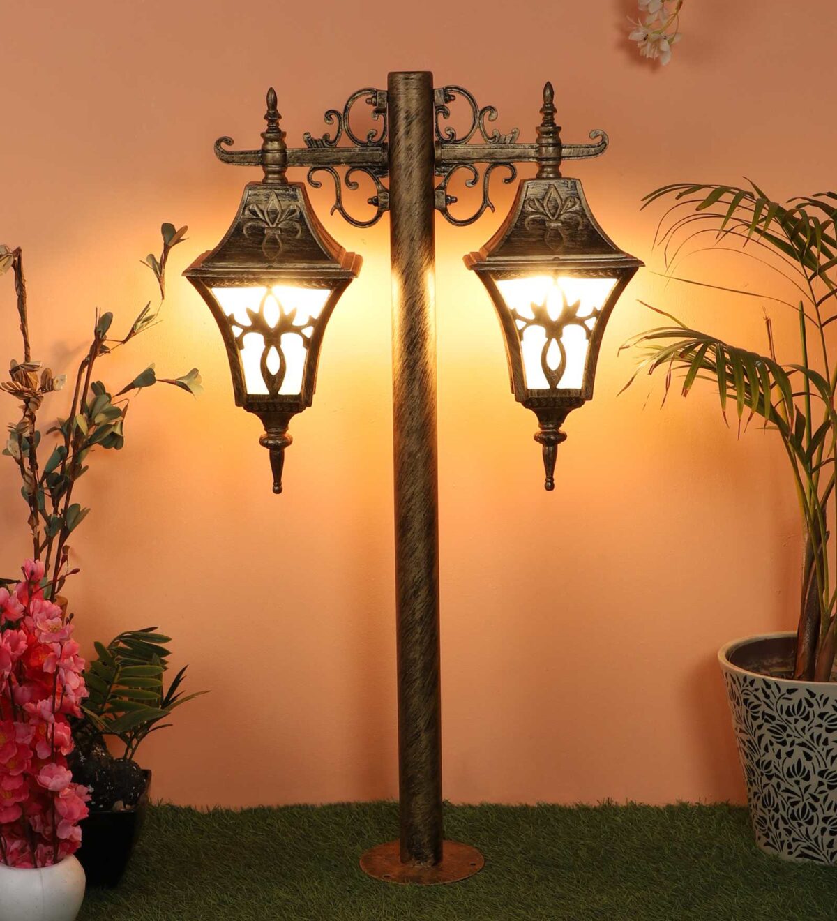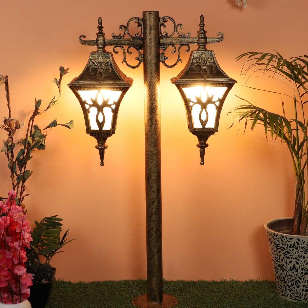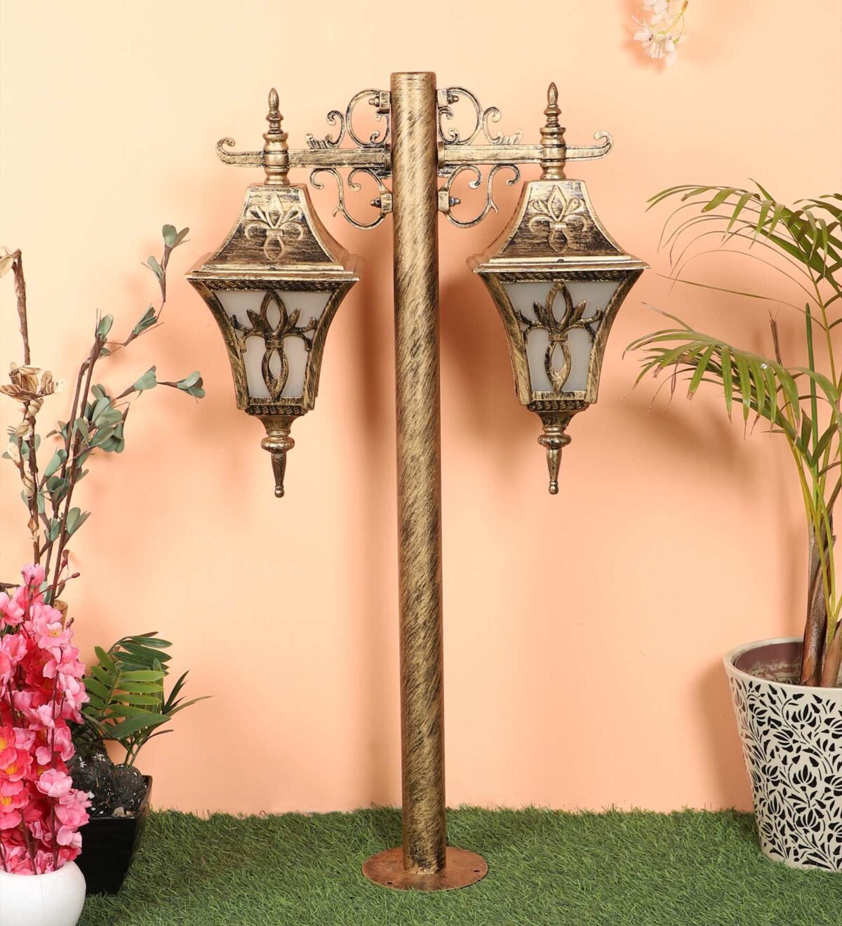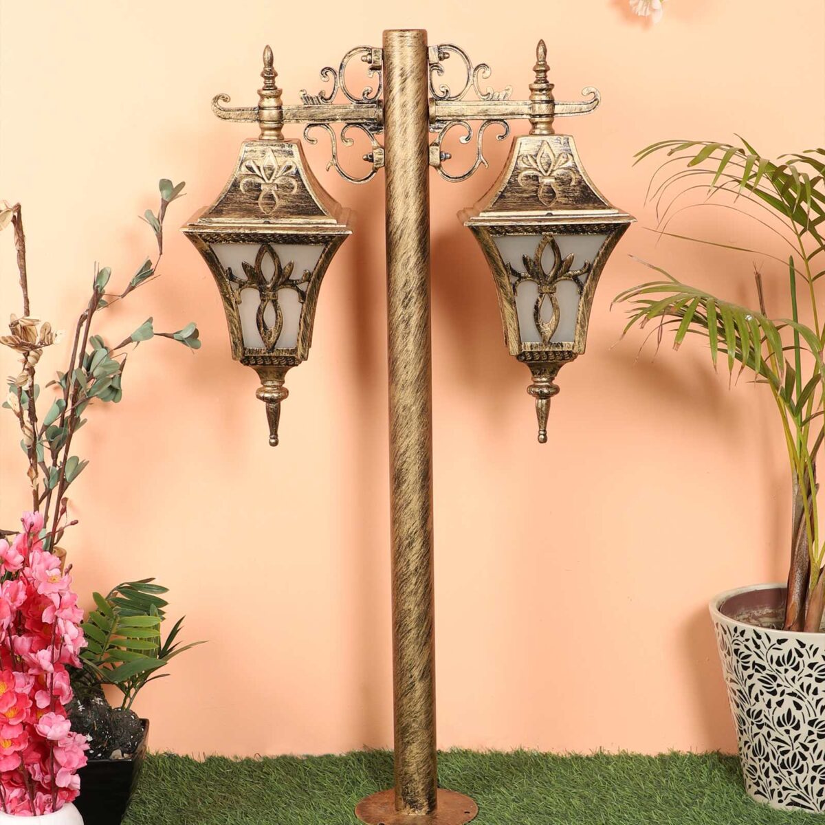 Heavy duty, designer, export quality, traditional aluminium die cast maintainence free bollard in antique gold finish and is used to illuminate exterior garden and pathway and lead visitors to your door. It has B22 holder. You can of course swap out the bulb for one that is dimmable, has a higher light output or a different colour temperature. It can be used wherever traditional look has to be given. It has a matching gate light, wall light, hanging light and a single light bollard. All designs available in black finish also. LAMP NOT INCLUDED.