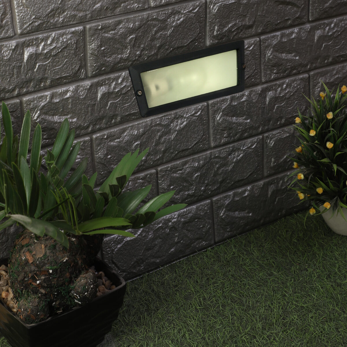 Solid, heavy, aluminium die cast foot light. It is maintenance free, one of the top selling export quality product, only the change of lamp is required, which is available locally everywhere. It can be used in both indoor and outdoor applications such as Stair case walls, steps, passage to staircase, path way, drive way, terrace walls, outdoor walls, boundary walls, open parking, stilt parking, basement parking. It is usually installed at 12 to 15 inches height from the floor.