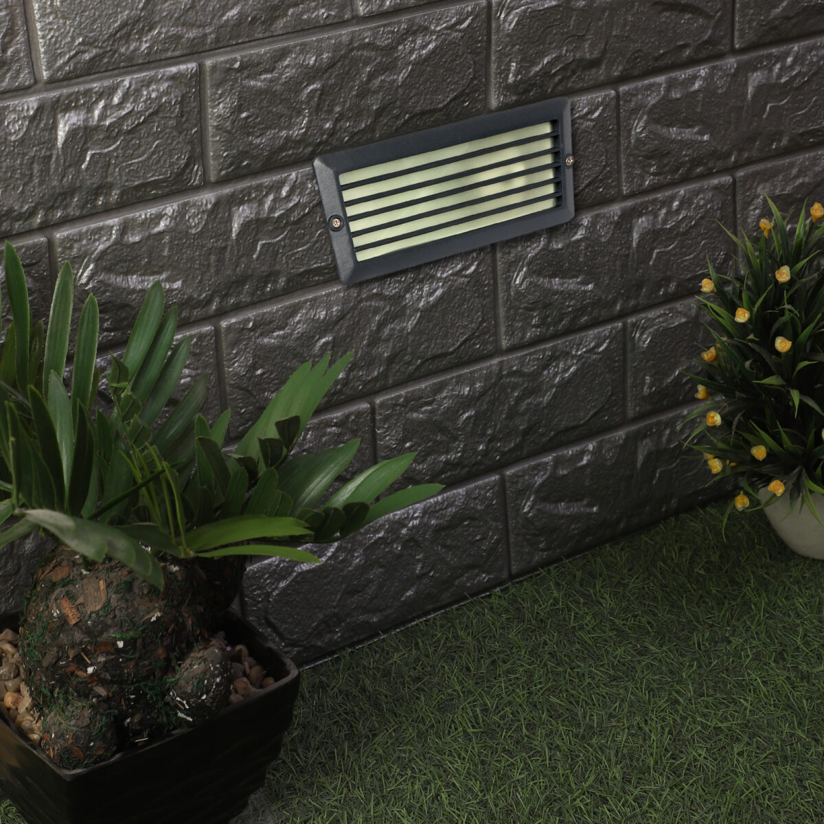 Solid, heavy, aluminium die cast foot light. It is maintenance free, only the change of lamp is required, which is available locally everywhere. It can be used in both indoor and outdoor applications such as Stair case walls, steps, passage to staircase, path way, drive way, terrace walls, outdoor walls, boundary walls, open parking, stilt parking, basement parking. It is usually installed at 12 to 15 inches height from the floor.