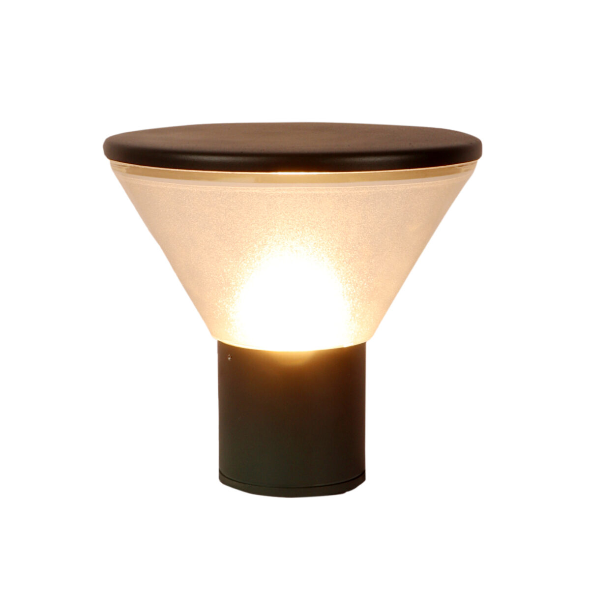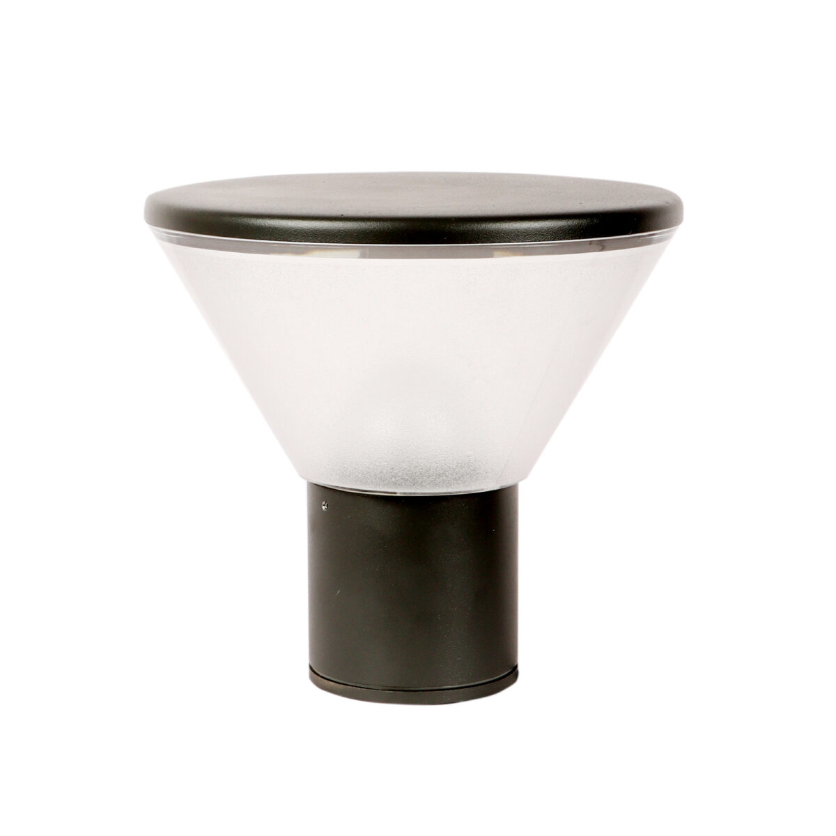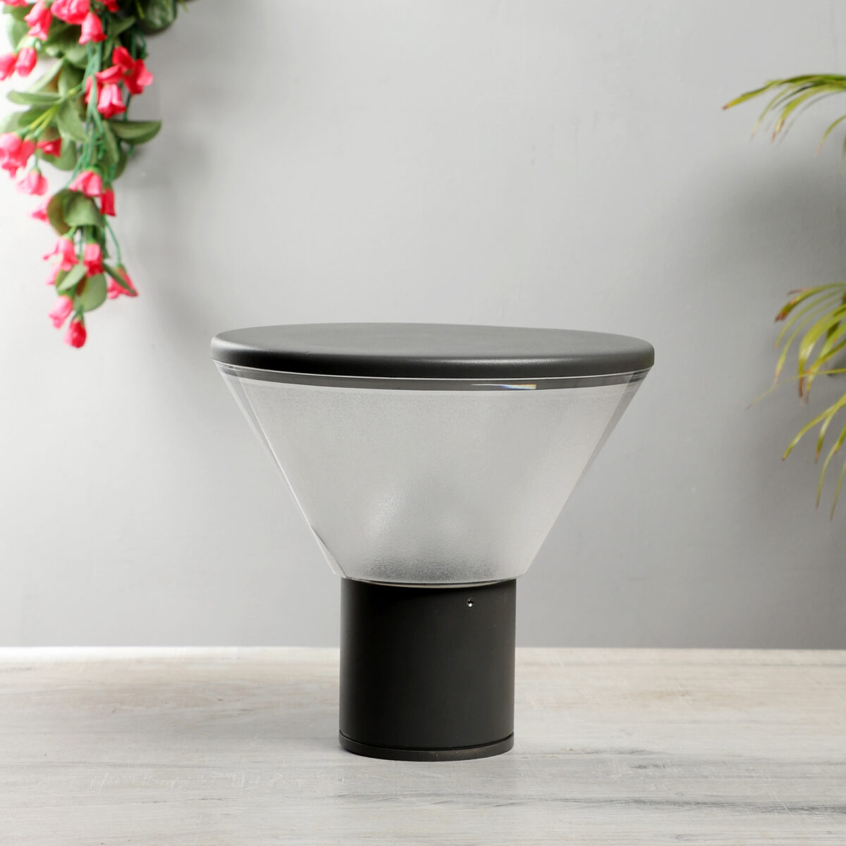 Modern aluminium die cast, one of top selling export quality gate pillar post light in grey finish. It is maintenance free, comes with an E27 holder, only the change of lamp is required, which is available locally everywhere You can of course swap out the bulb for one that is dimmable, has a higher light output or a different color temperature. High quality acrylic is used to withstand tough weather conditions. IP 54 rated, providing protection from sprayed water in any direction and making this light perfect for use outdoors.Application areas include building entrance, on top of terrace walls, terrace gardens, boundary walls, open parking, stilt parking. Matching wall loght code – WL1714. Matching bollard code – K1026-M, W1026-L