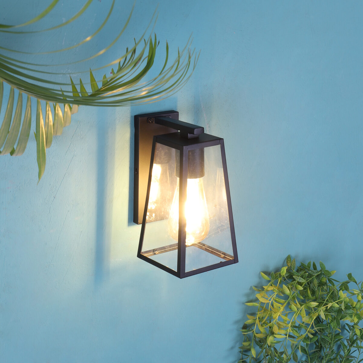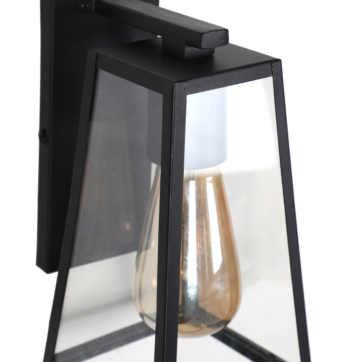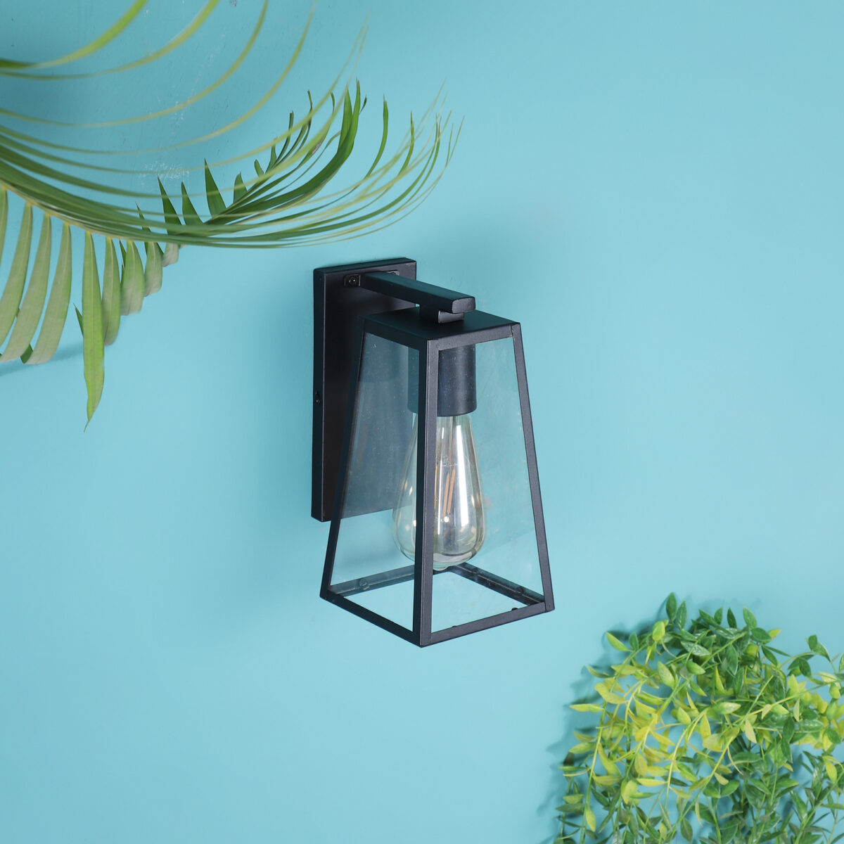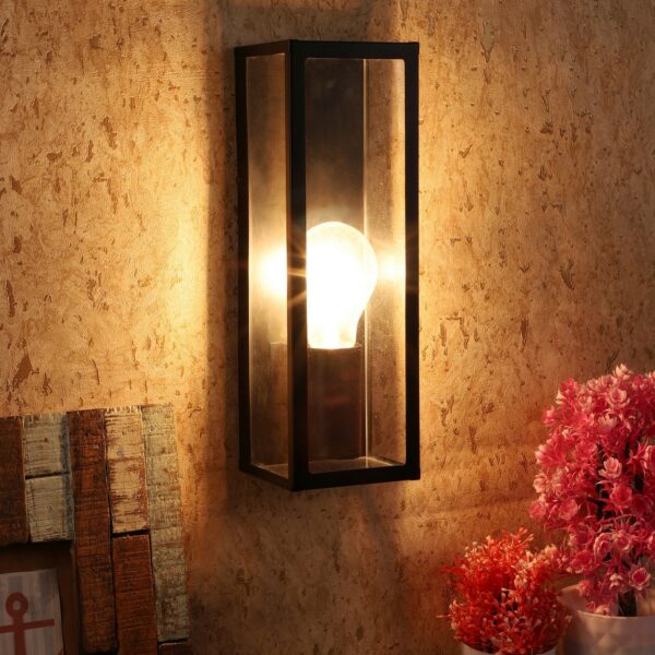 Vertical, mild steel modern outdoor wall light in black finish with clear acrylic sheet. It is maintenance free, comes with an E27 holder, only the change of lamp is required, which is available locally everywhere You can of course swap out the bulb for one that is dimmable, has a higher light output or a different color temperature. Application areas include Stair case walls, passage to staircase, terrace walls, terrace gardens, outdoor walls, boundary walls, open parking, stilt parking, basement parking, balcony , can also be installed inside, also suits theme restaurants and bars. Can be used indoors if goes with the color theme. Looks amazing with LED filament lamp.