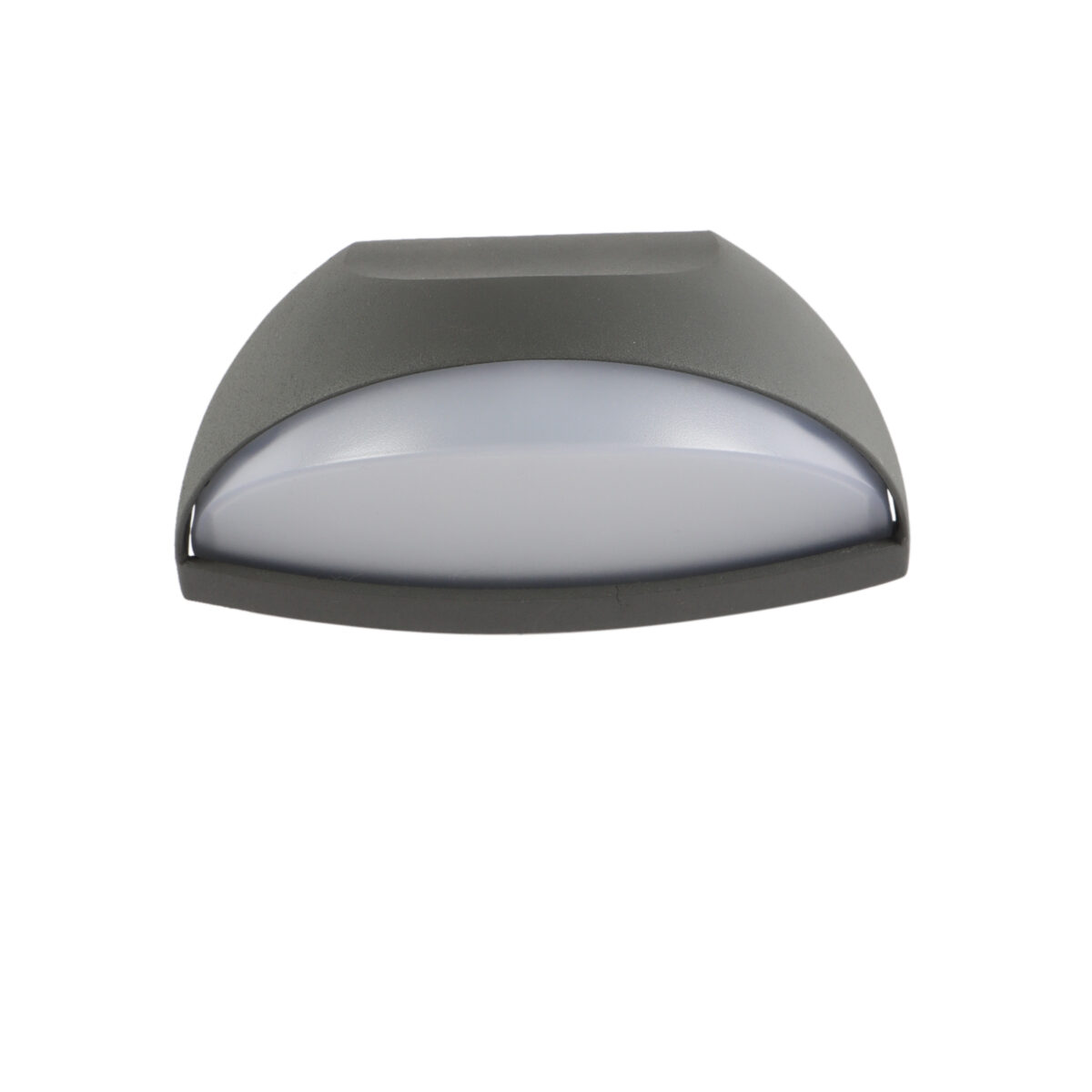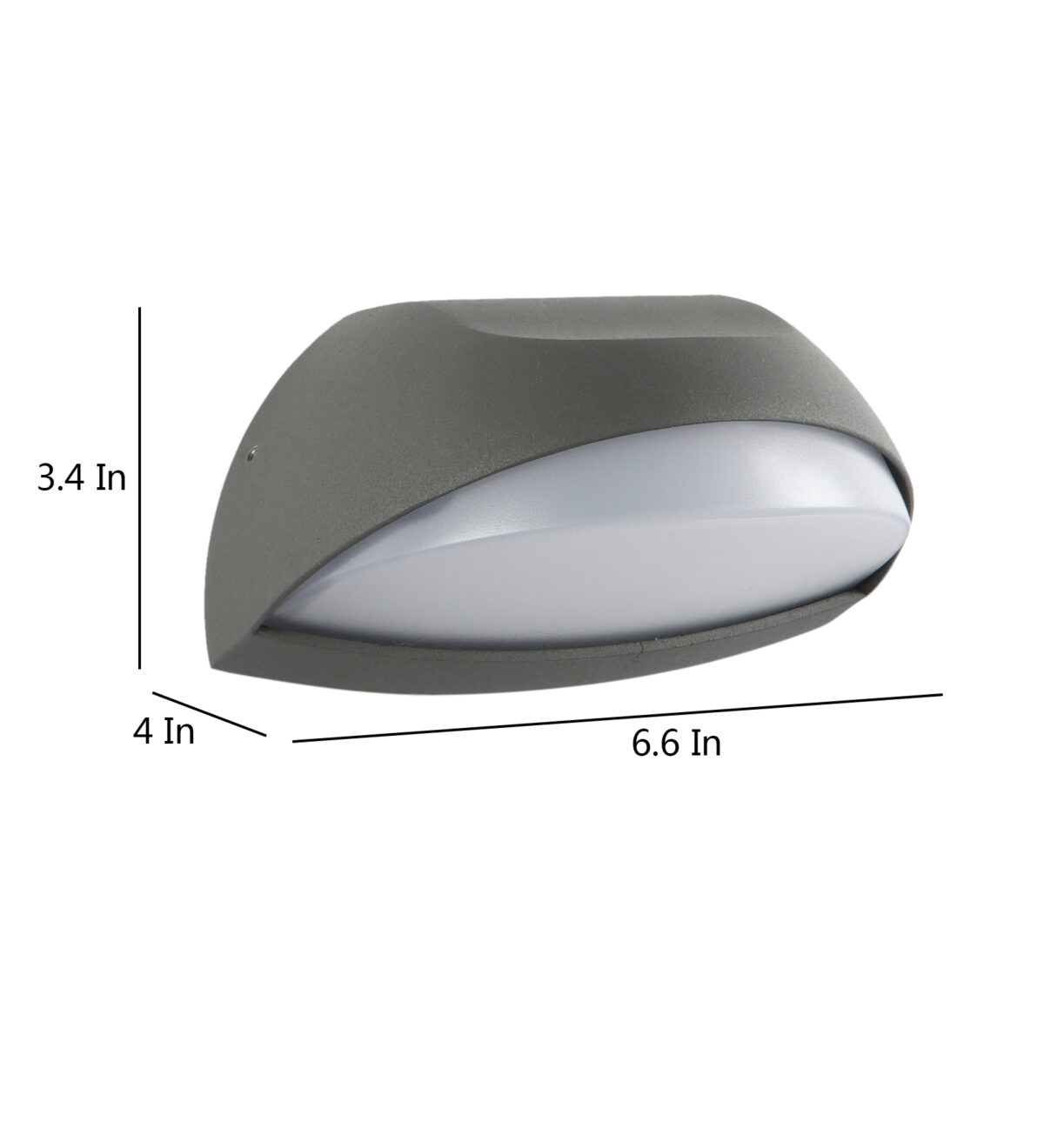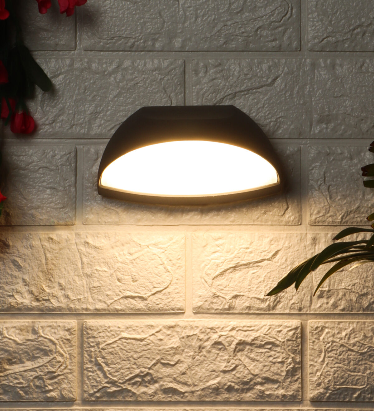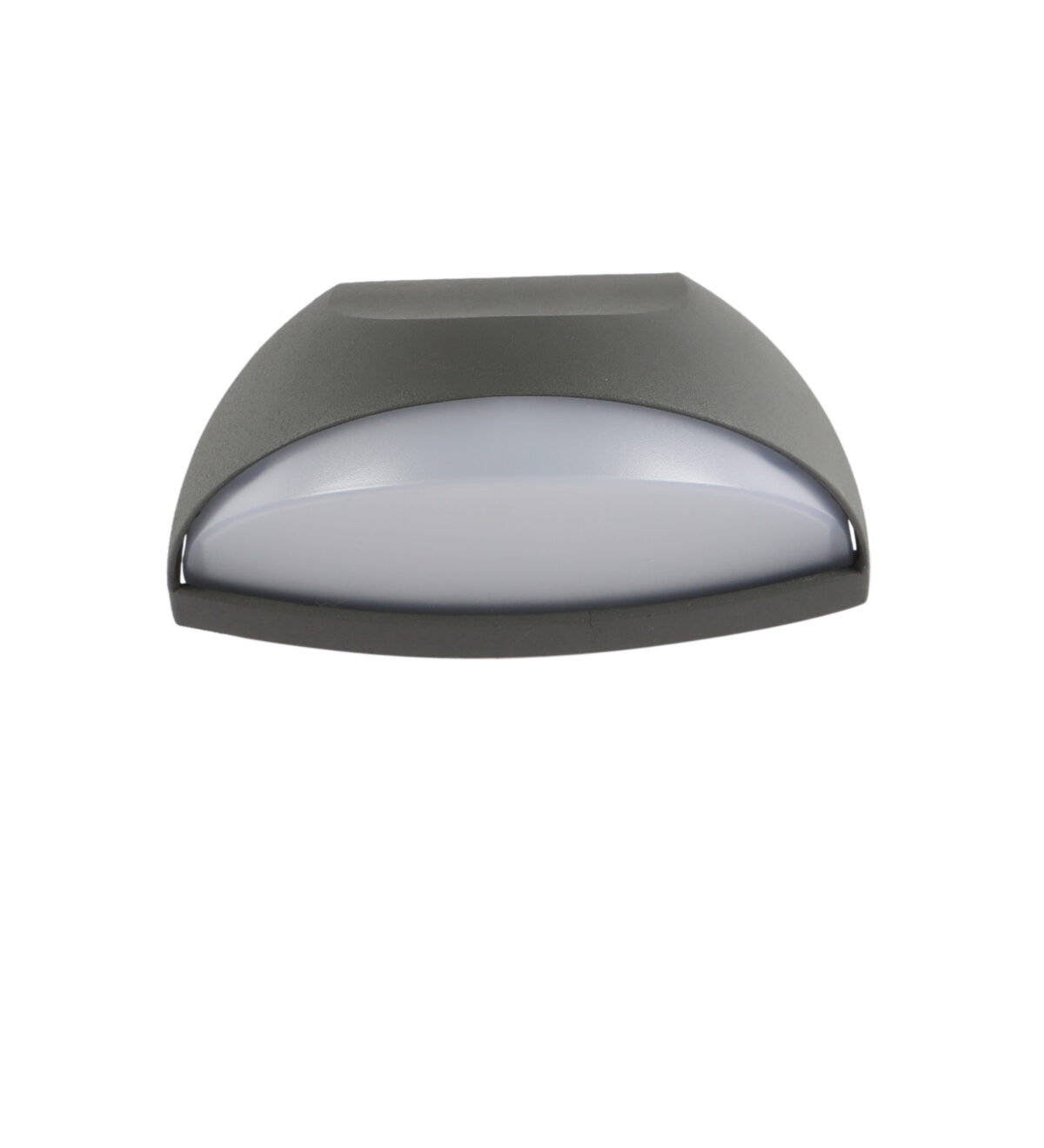 Compact, semi circular, aluminium die cast modern outdoor wall light in grey finish, using high quality LED and driver with high success rate having less than 0.5% replacement. IP65 rated, providing protection from sprayed water in any direction and making this light perfect for use outdoors. It can also be used in indoor applications. Application areas include Stair case walls, passage to staircase, terrace walls, terrace gardens outdoor walls, boundary walls, open parking, stilt parking, basement parking, balcony. Can also be used in place of a bulkhead.