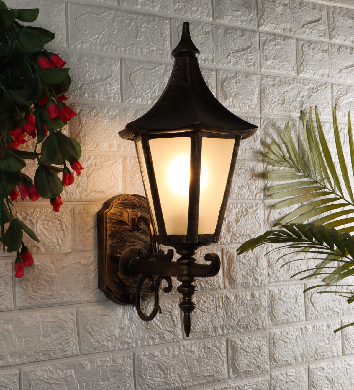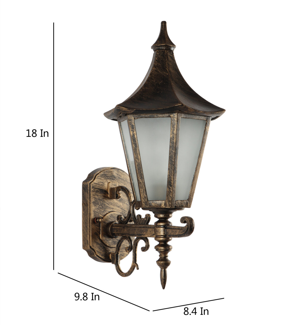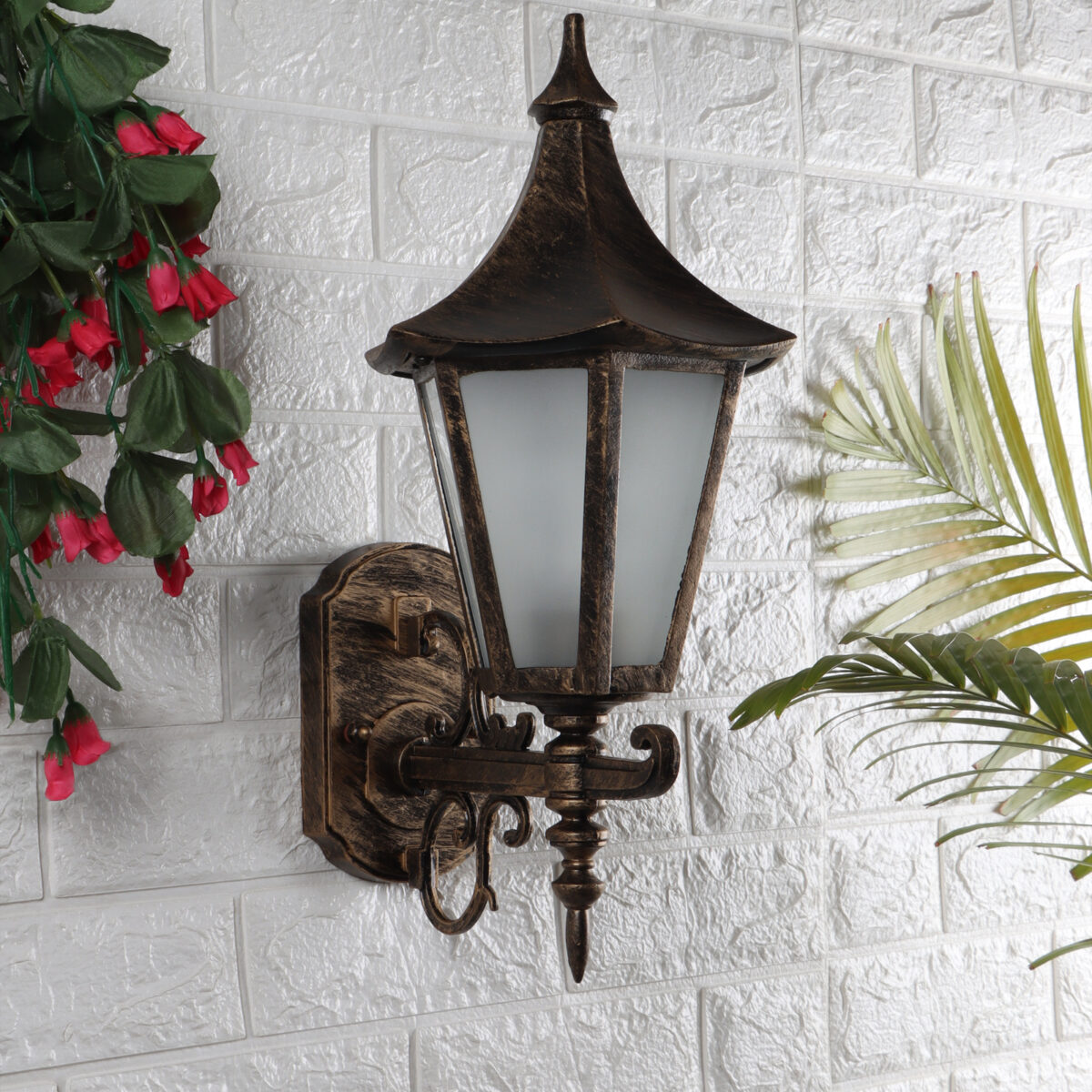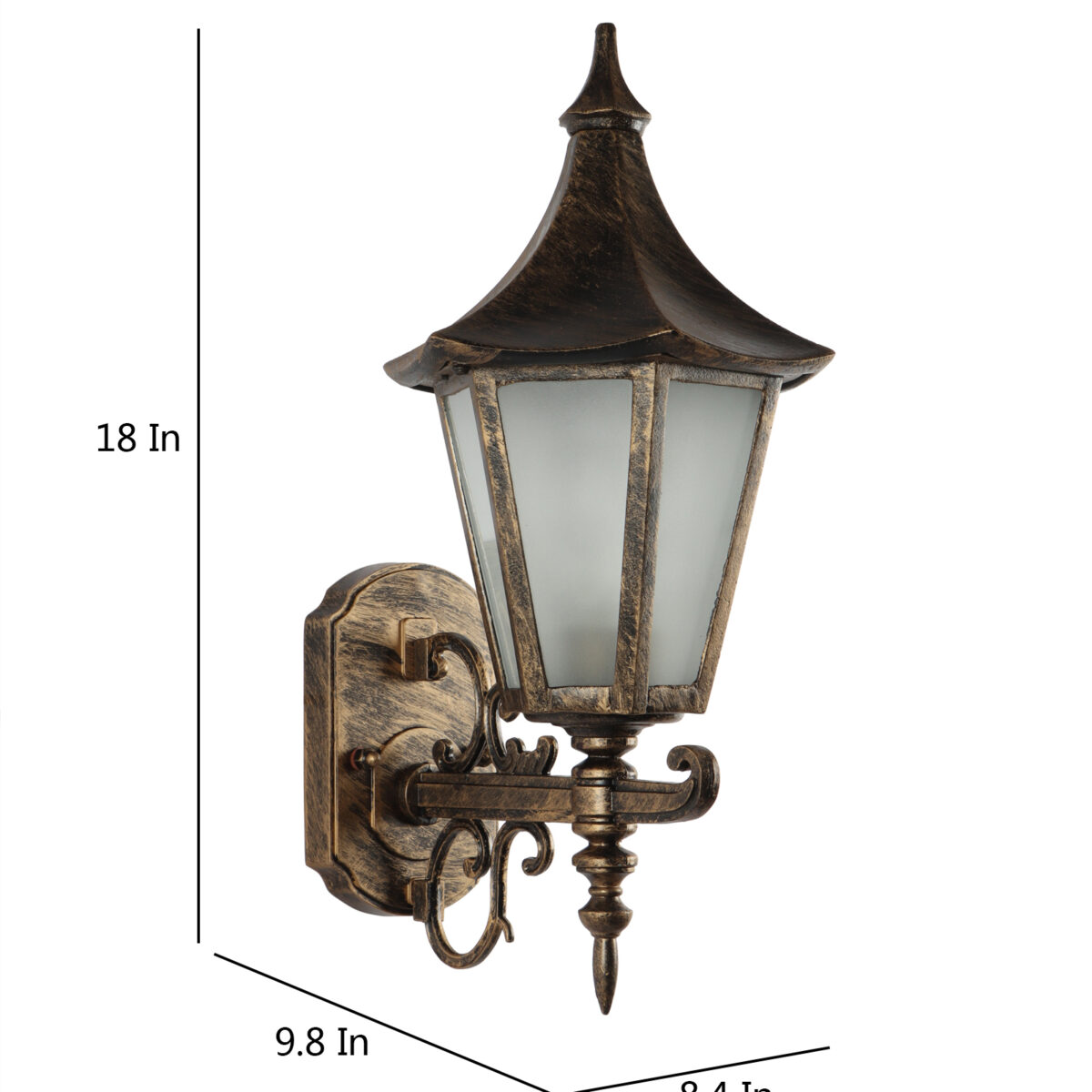 Solid, heavy, aluminium die cast, premium, one of top selling export quality traditional outdoor wall light is available in antique gold finish. It is one of the most popular design in Europe. It is maintenance free, comes with an B22 holder, only the change of lamp is required, which is available locally everywhere You can of course swap out the bulb for one that is dimmable, has a higher light output or a different color temperature. IP54 rated providing protection from sprayed water in any direction and making this light perfect for use outdoors. Application areas include Stair case walls, passage to staircase, terrace walls, terrace gardens outdoor walls, boundary walls, open parking, stilt parking, basement parking, balcony, theme restaurants and bars,premium farm houses and party venue. can also be installed indoors it goes with the color theme. Similar wall light variations – WL1857, WL1003, WL2650, Matching Gate Light – GL4583-S, GL4774-M GL4583-L. Matching Pendant – HL3769, HL6061. Matching Bollard code – K1077. LAMP NOT INCLUDED.