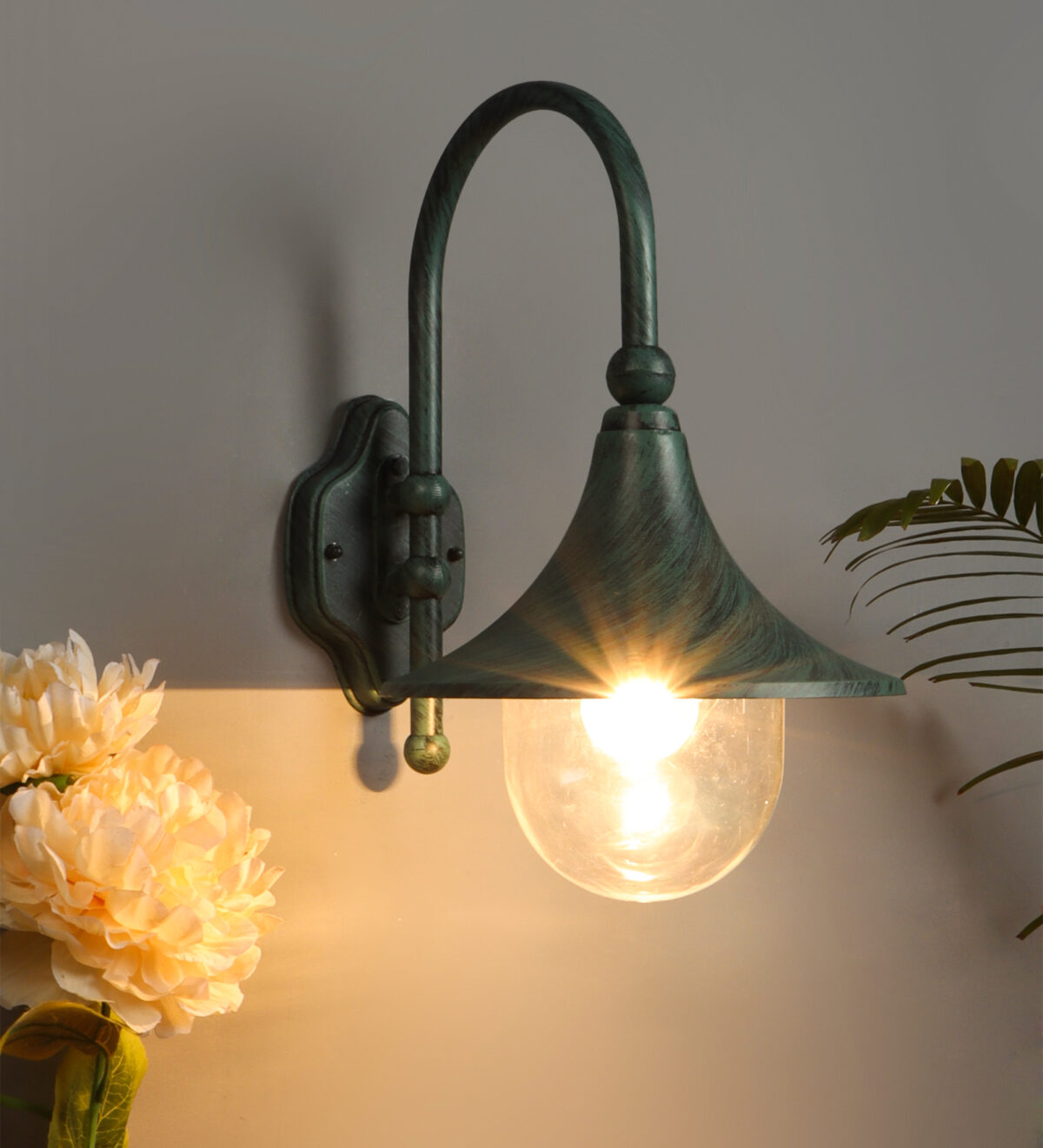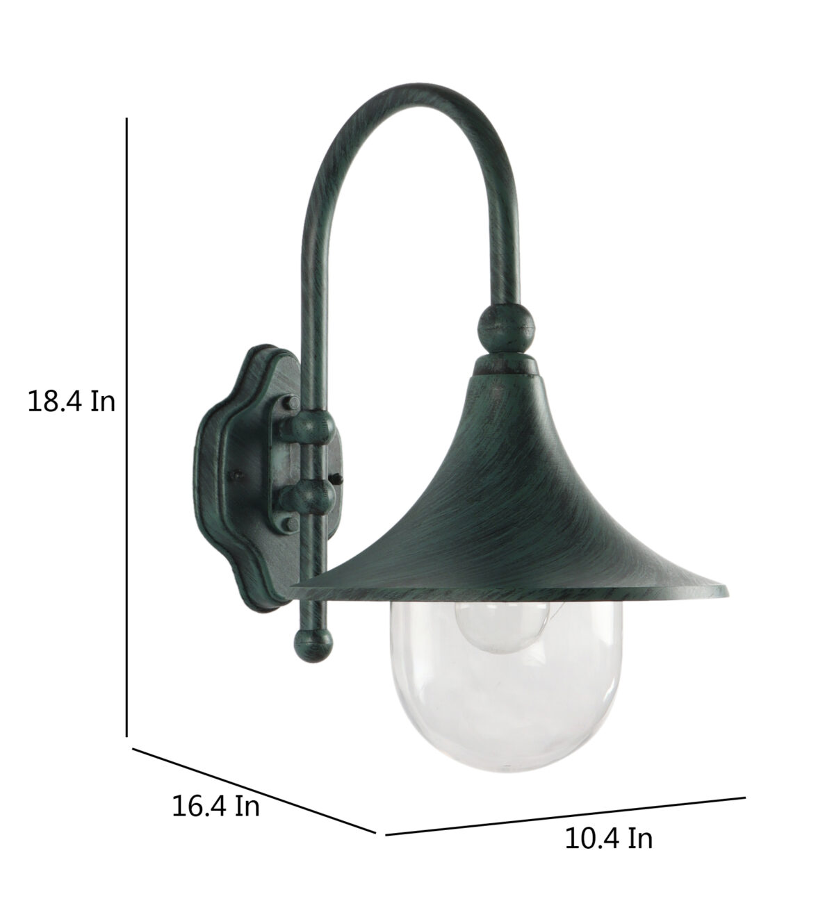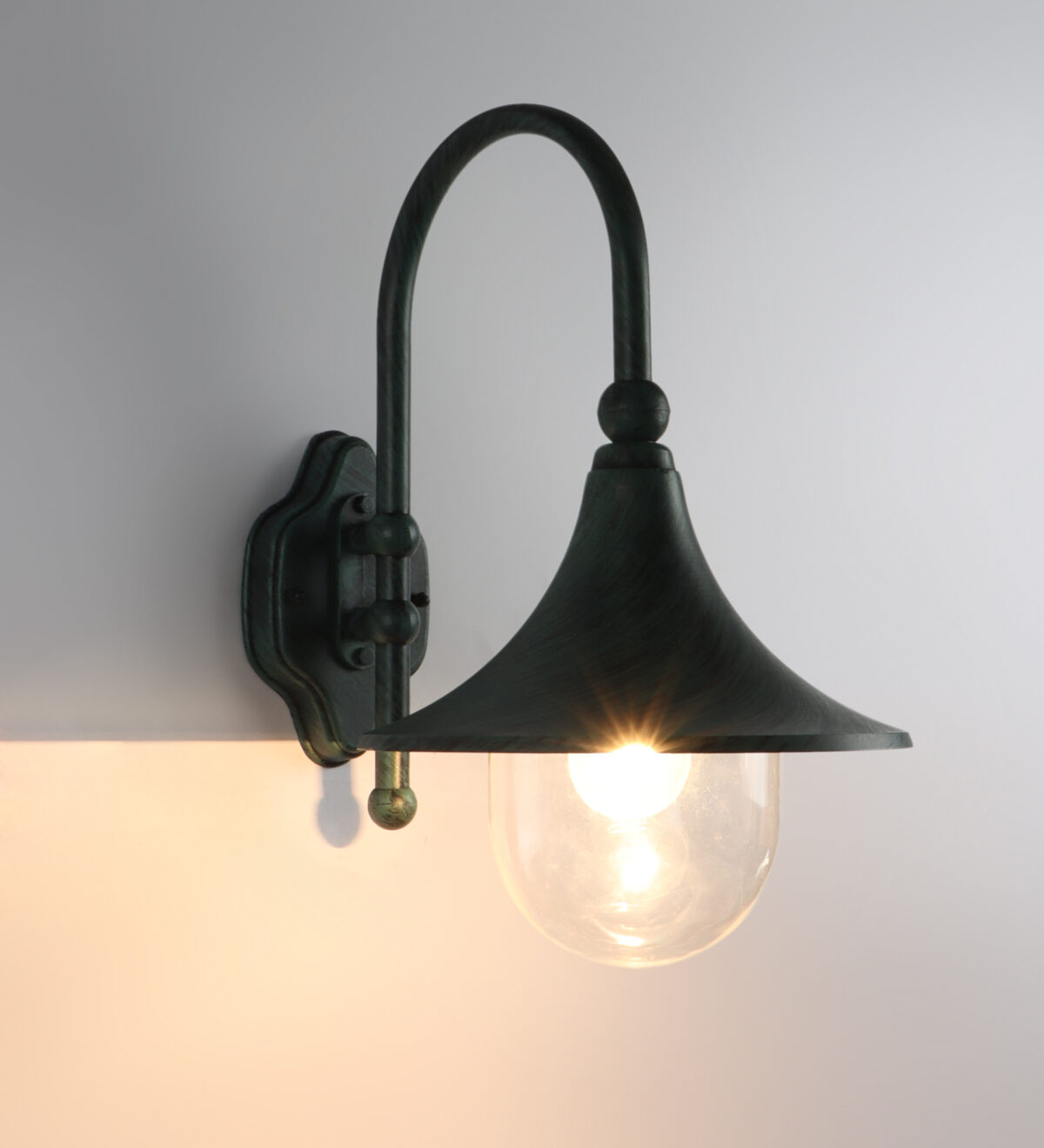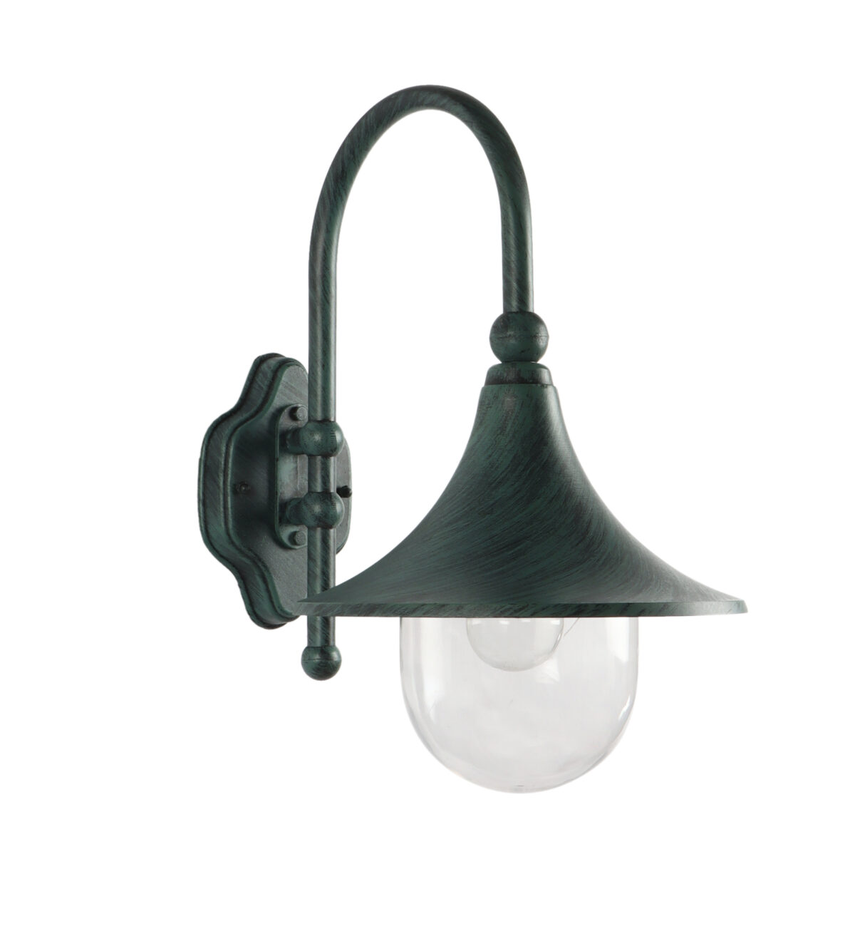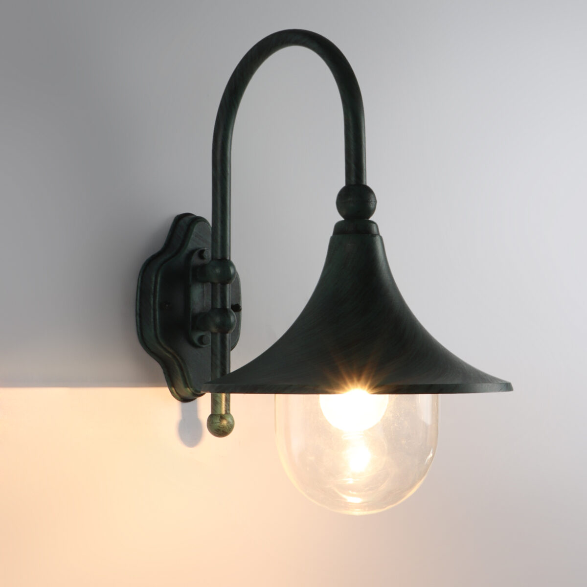 Solid, heavy, aluminium die cast, outdoor wall light providing down lighting, using high quality polycarbonate, is available in green finish. It is maintenance free, comes with an E27 holder, only the change of lamp is required, which is available locally everywhere You can of course swap out the bulb for one that is dimmable, has a higher light output or a different color temperature Excellent for installing in many locations such as front doors, garden walls, sheds and garages, parking’s, farm houses , party venues, theme restaurants and bars. IP54 rated, providing protection from sprayed water in any direction and making this light perfect for use outdoors.