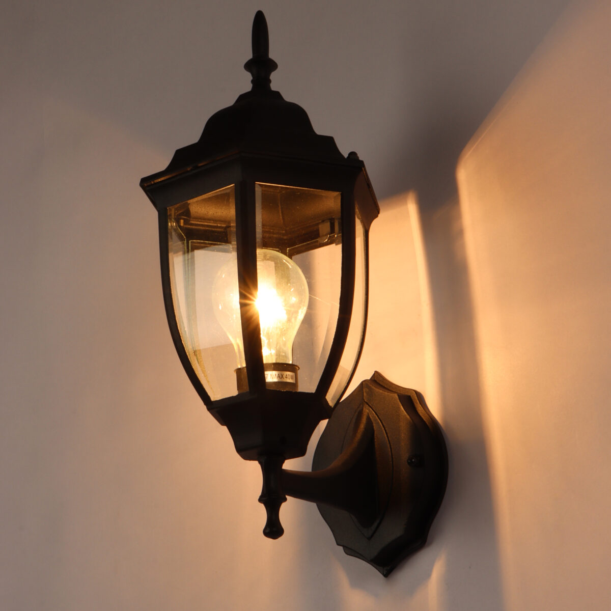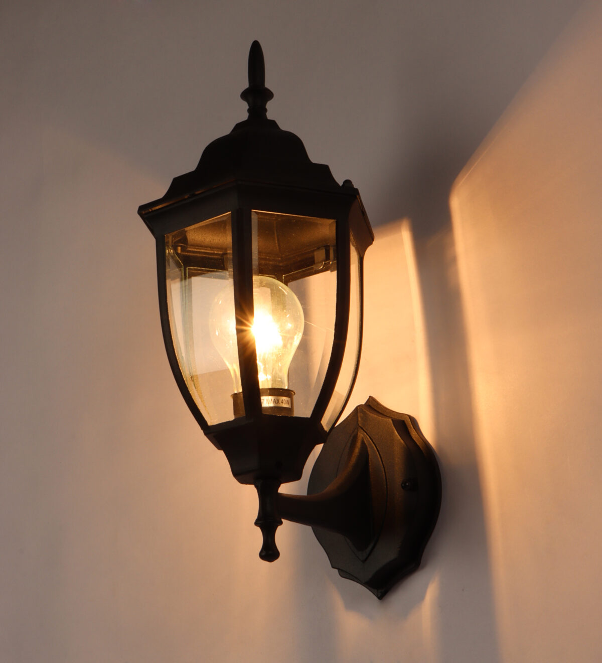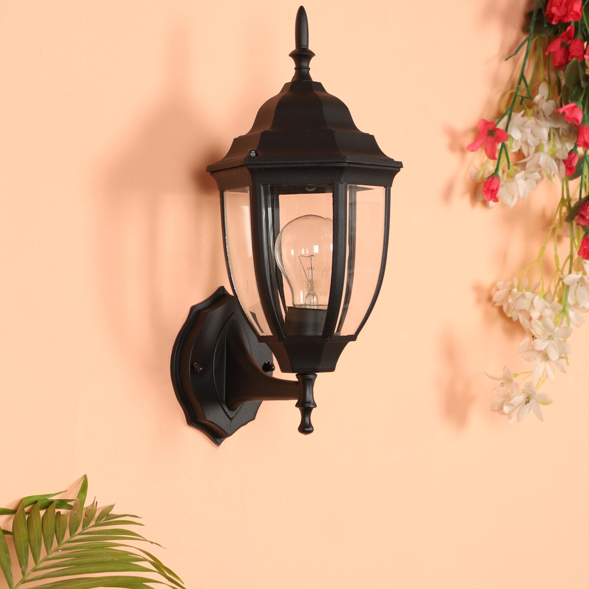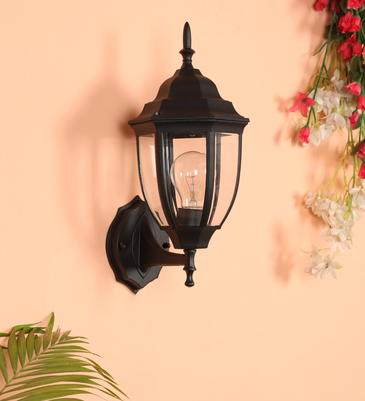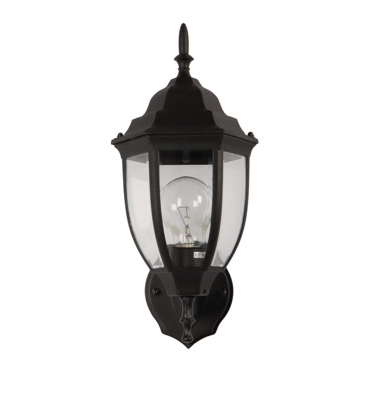 Vertical, aluminium die cast,traditional outdoor wall light in black finish with clear glass. It is maintenance free, comes with an E27 holder, only the change of lamp is required, which is available locally everywhere You can of course swap out the bulb for one that is dimmable, has a higher light output or a different color temperature. Application areas include Stair case walls, passage to staircase, terrace walls, terrace gardens, outdoor walls, boundary walls, open parking, stilt parking, basement parking, balcony , can also be installed inside, also suits theme restaurants and bars. Can be used indoors if goes with the colour theme. LAMP NOT INCLUDED.