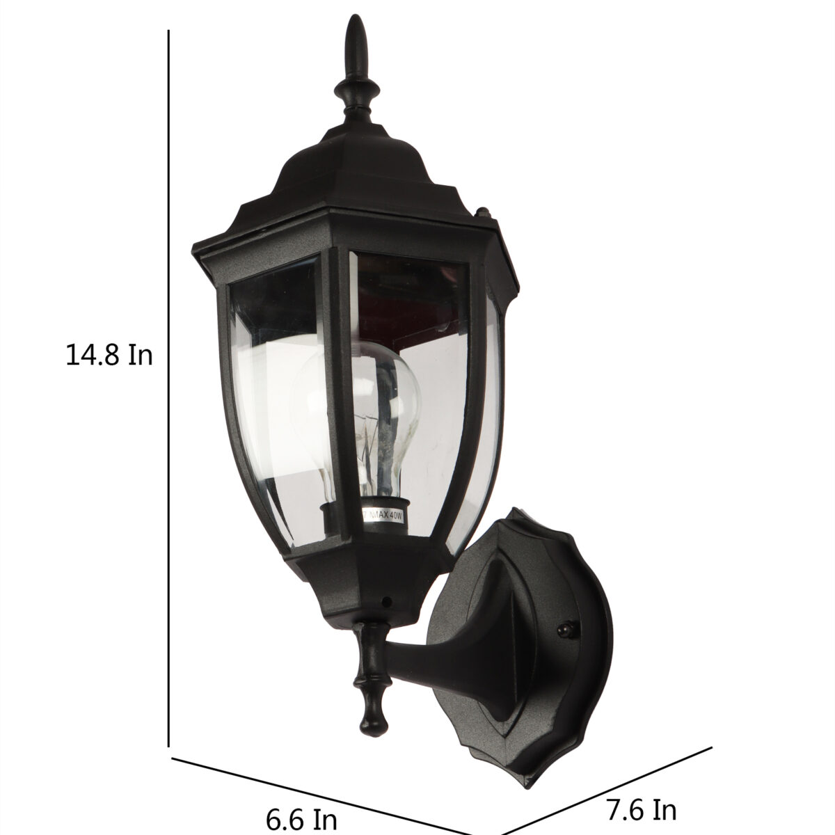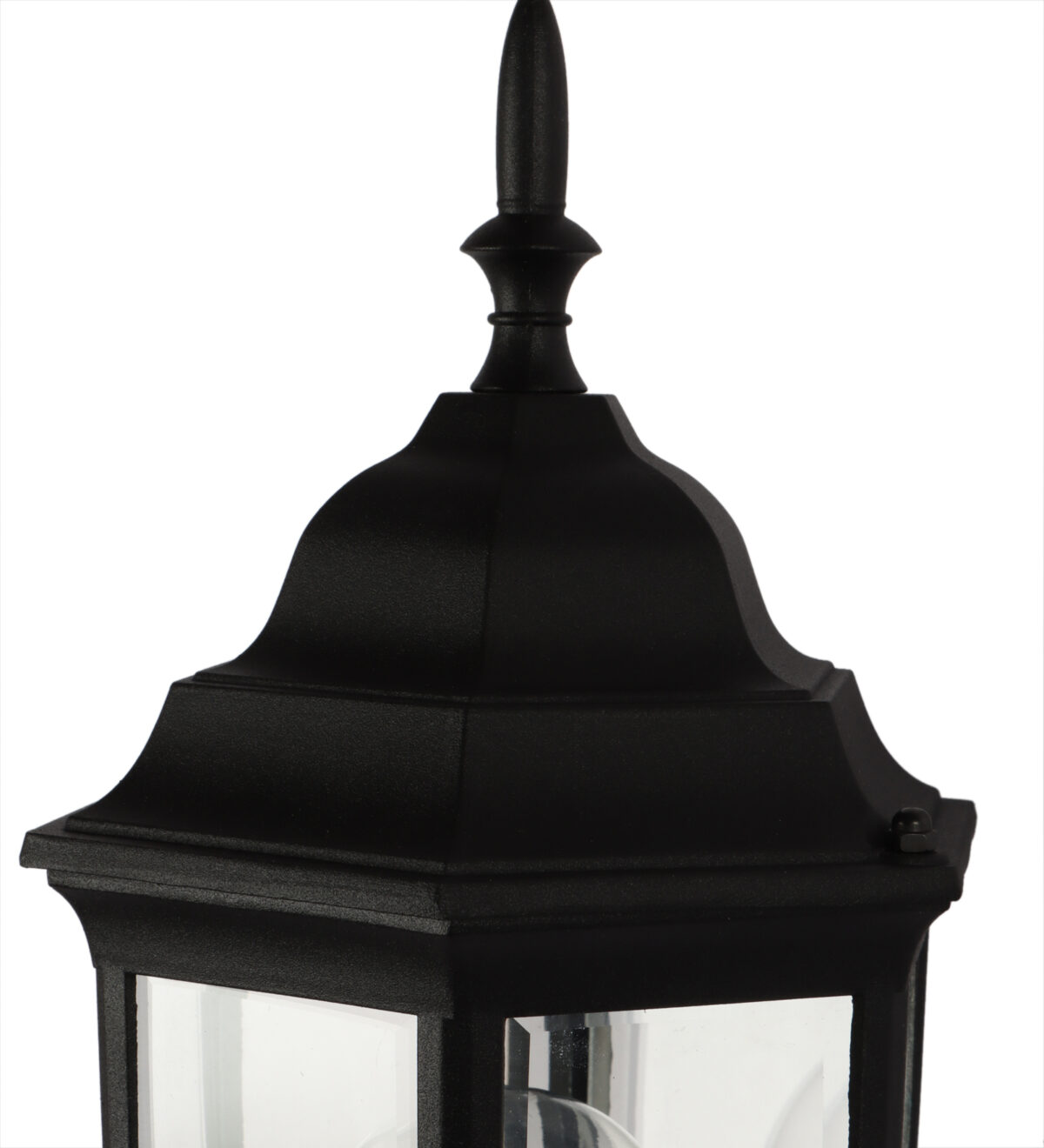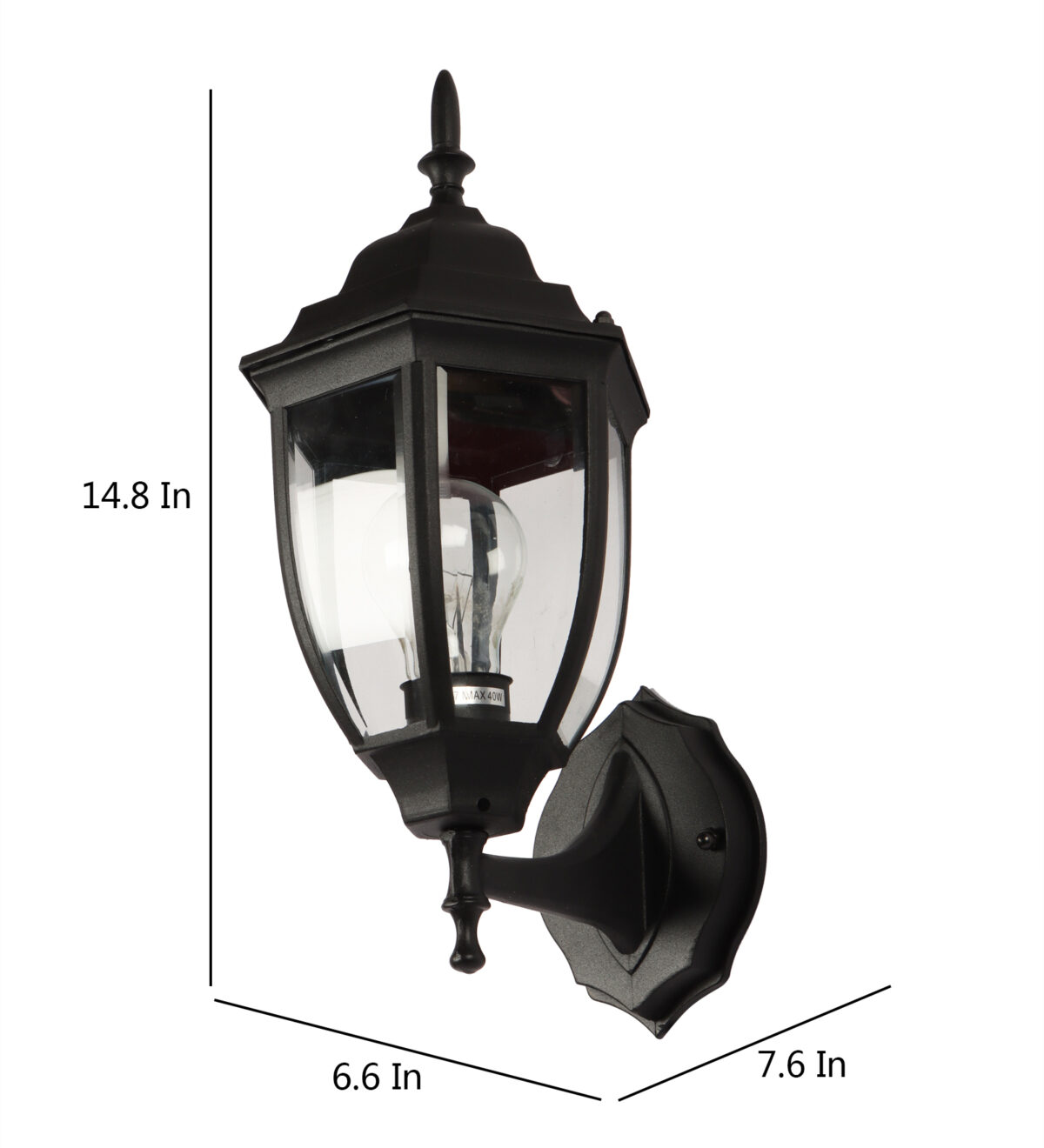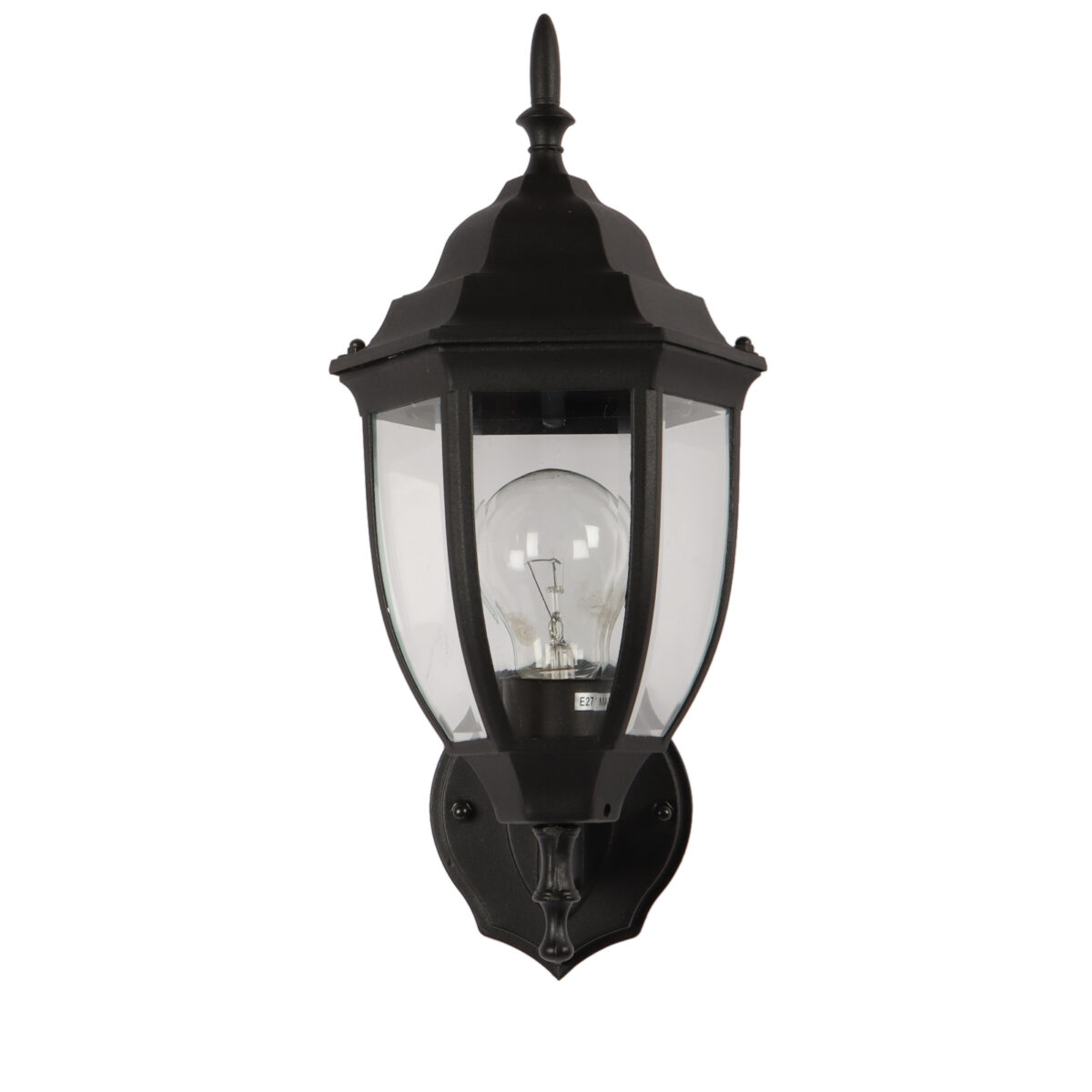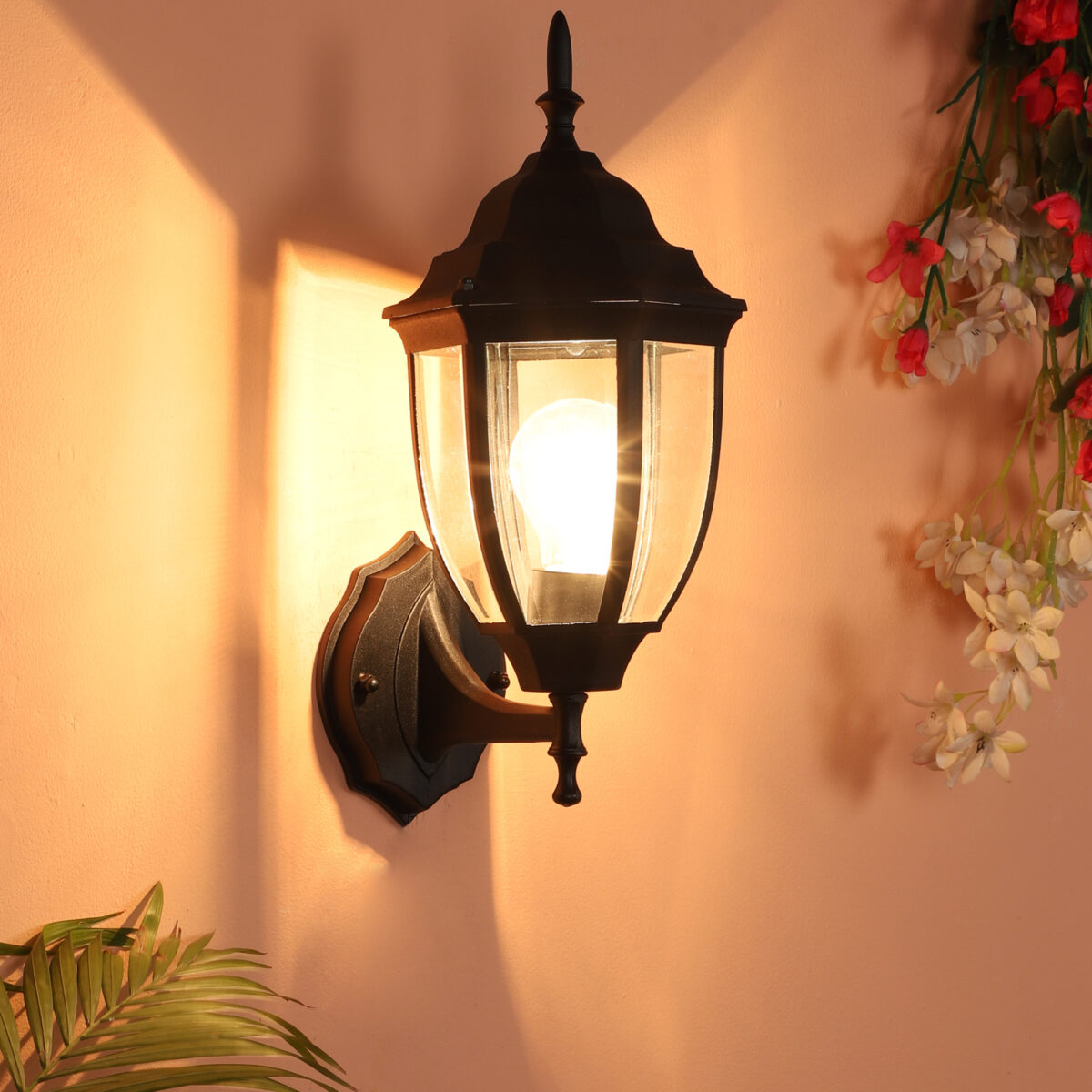 Vertical, aluminium die cast,traditional outdoor wall light in black finish with clear glass. It is maintenance free, comes with an E27 holder, only the change of lamp is required, which is available locally everywhere You can of course swap out the bulb for one that is dimmable, has a higher light output or a different color temperature. Application areas include Stair case walls, passage to staircase, terrace walls, terrace gardens, outdoor walls, boundary walls, open parking, stilt parking, basement parking, balcony , can also be installed inside, also suits theme restaurants and bars. Can be used indoors if goes with the colour theme. LAMP NOT INCLUDED.