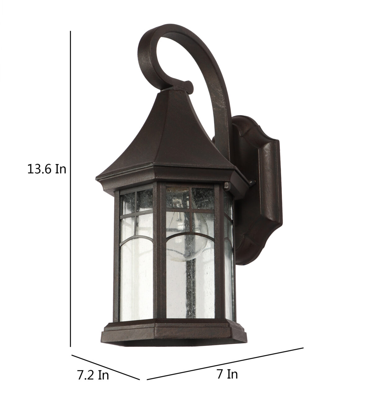 Vertical, heavy, premium, aluminium die cast, traditional down facing outdoor wall light in brown finish. It is maintenance free, comes with an E27 holder, only the change of lamp is required, which is available locally everywhere You can of course swap out the bulb for one that is dimmable, has a higher light output or a different color temperature. IP54 rated providing protection from sprayed water in any direction and making this light perfect for use outdoors, Application areas include Stair case walls, passage to staircase, terrace walls, terrace gardens, outdoor walls, boundary walls, open parking, stilt parking, basement parking, balcony , can also be installed indoors, also suits theme restaurants and bars, premium farm houses and party venues. LAMP NOT INCLIDED.