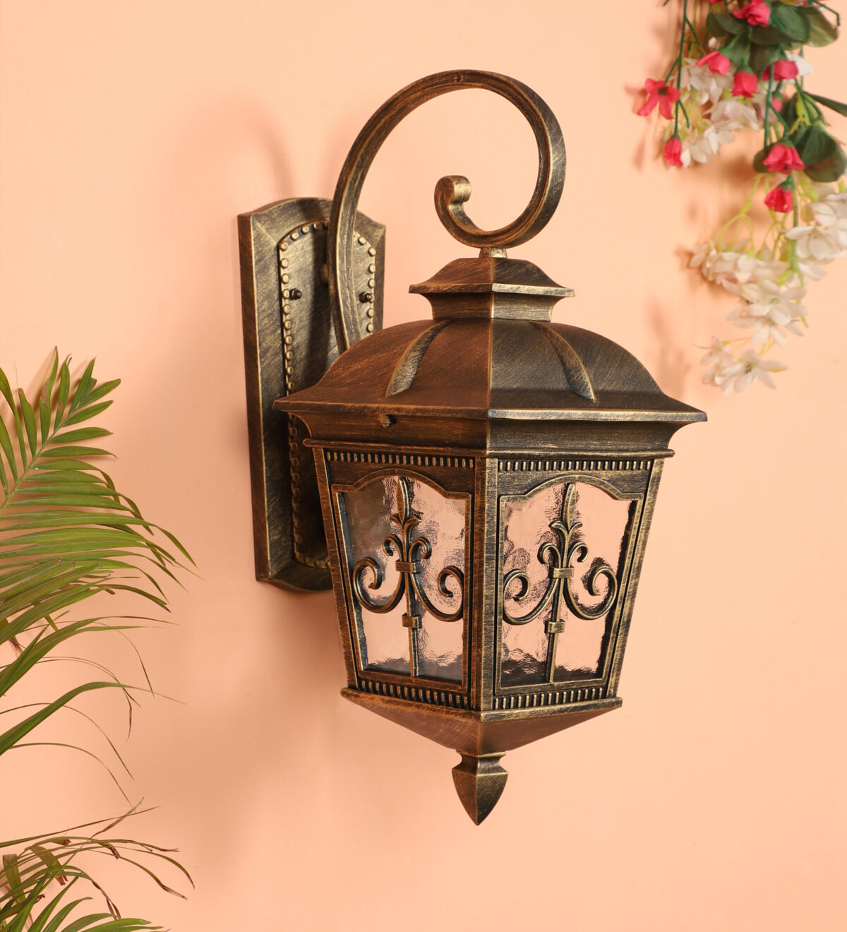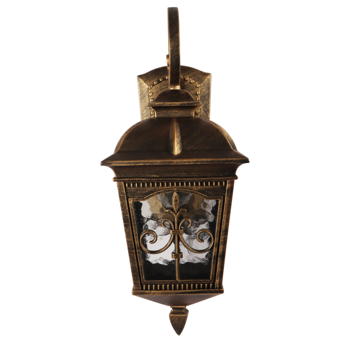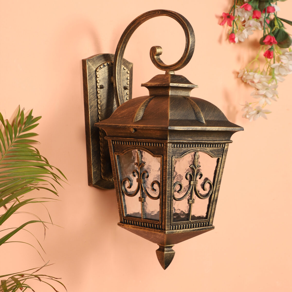 Vertical, heavy, premium, aluminium die cast, export quality traditional down facing outdoor wall light in antique gold finish. It is maintenance free, comes with an E27 holder, only the change of lamp is required, which is available locally everywhere You can of course swap out the bulb for one that is dimmable, has a higher light output or a different color temperature. IP54 rated providing protection from sprayed water in any direction and making this light perfect for use outdoors, Application areas include Stair case walls, passage to staircase, terrace walls, terrace gardens, outdoor walls, boundary walls, open parking, stilt parking, basement parking, balcony , can also be installed indoors, also suits theme restaurants and bars, premium farm houses and party venues. Also availabl in small size with code WL2647. Matching Gate Light code – GL4847-S, GL4847-L. LAMP NOT INCLUDED.