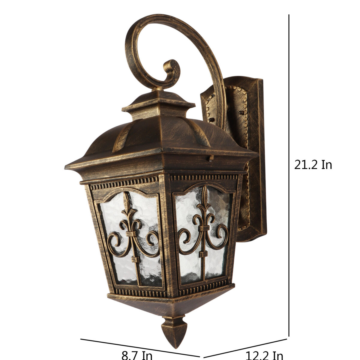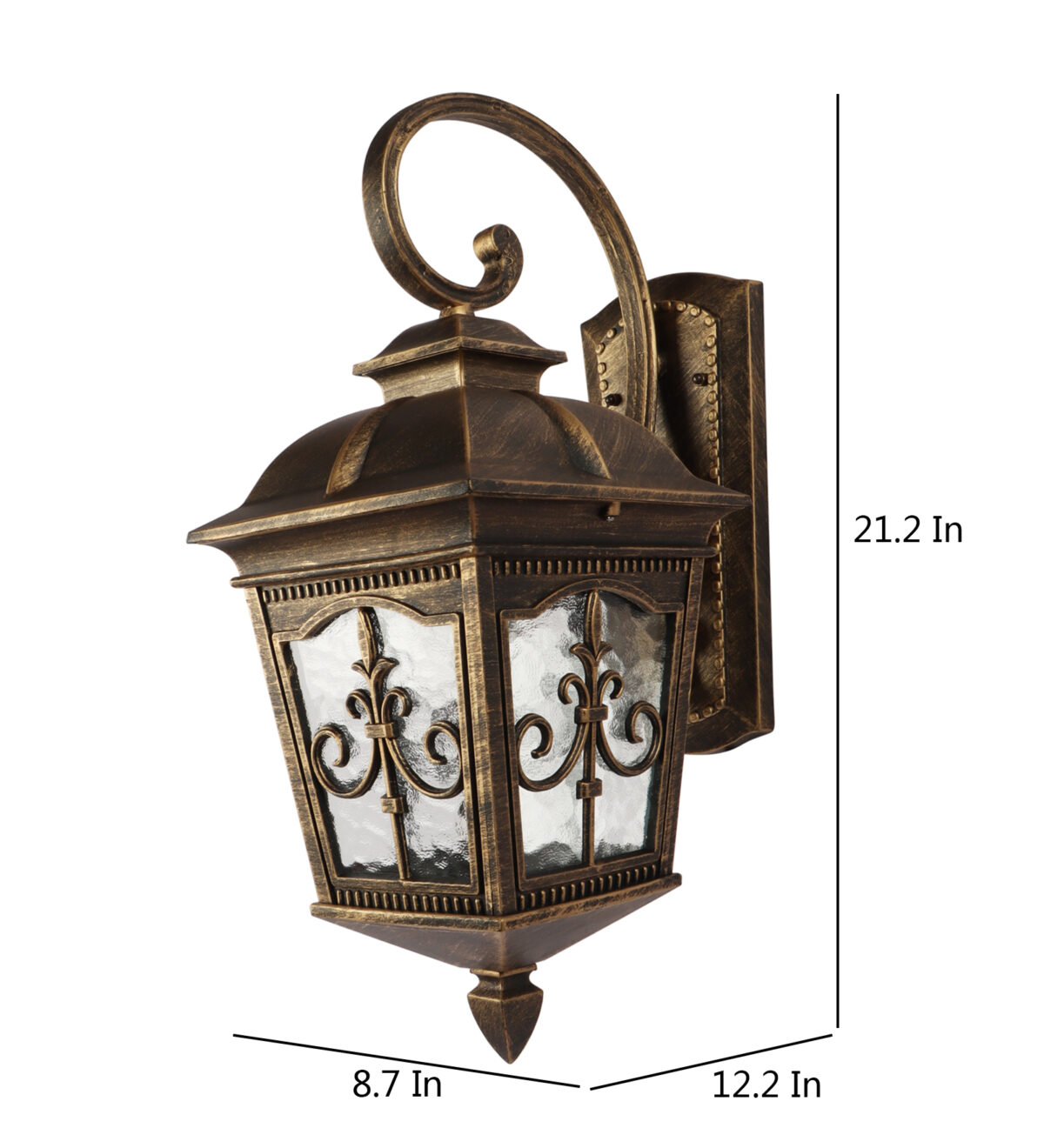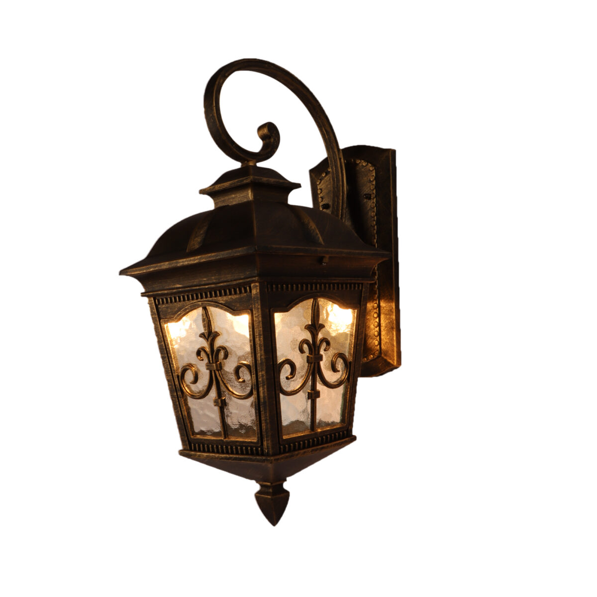 Vertical, heavy, premium, aluminium die cast, export quality traditional down facing outdoor wall light in antique gold finish. It is maintenance free, comes with an E27 holder, only the change of lamp is required, which is available locally everywhere You can of course swap out the bulb for one that is dimmable, has a higher light output or a different color temperature. IP54 rated providing protection from sprayed water in any direction and making this light perfect for use outdoors, Application areas include Stair case walls, passage to staircase, terrace walls, terrace gardens, outdoor walls, boundary walls, open parking, stilt parking, basement parking, balcony , can also be installed indoors, also suits theme restaurants and bars, premium farm houses and party venues. Also availabl in small size with code WL2647. Matching Gate Light code – GL4847-S, GL4847-L. LAMP NOT INCLUDED.