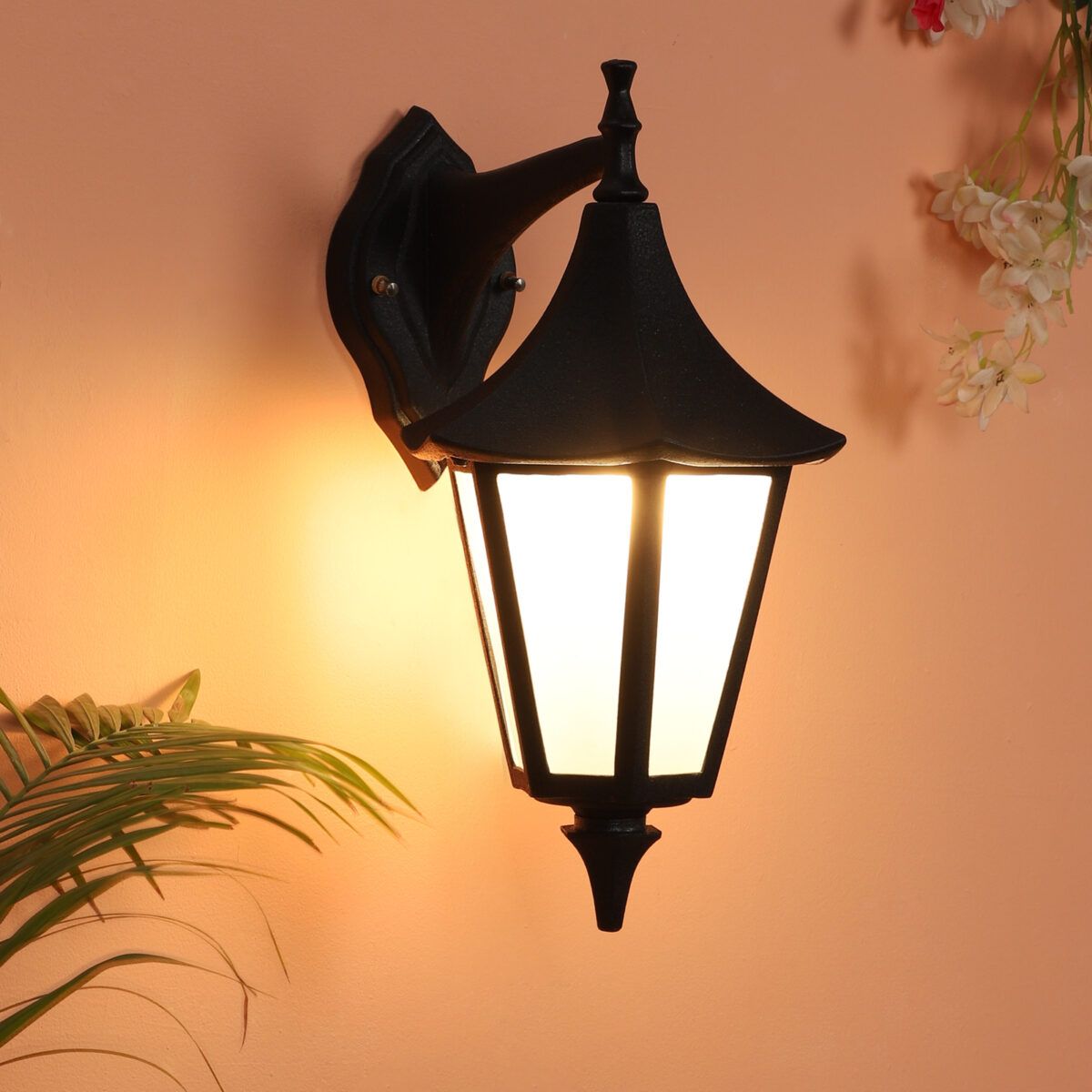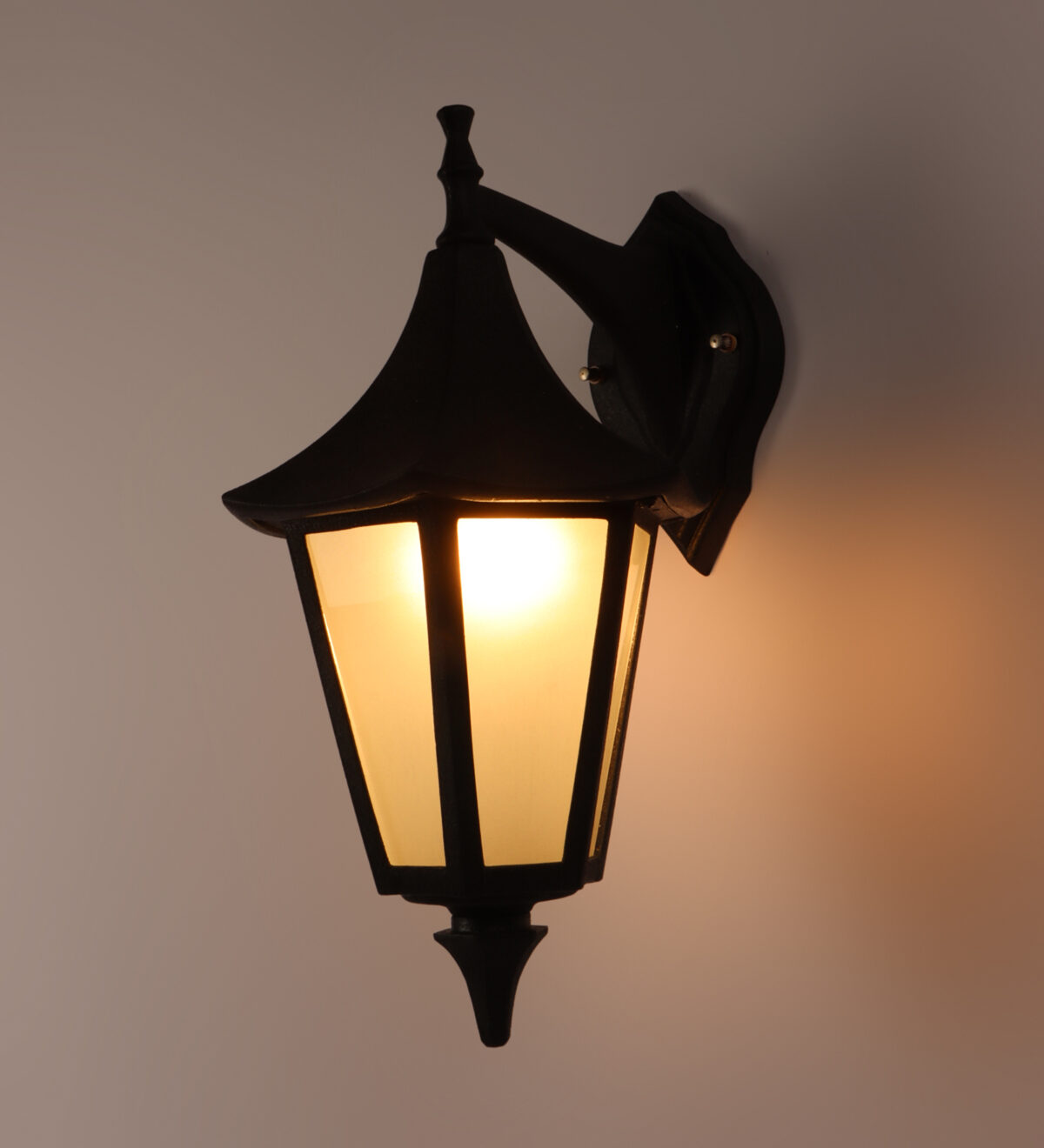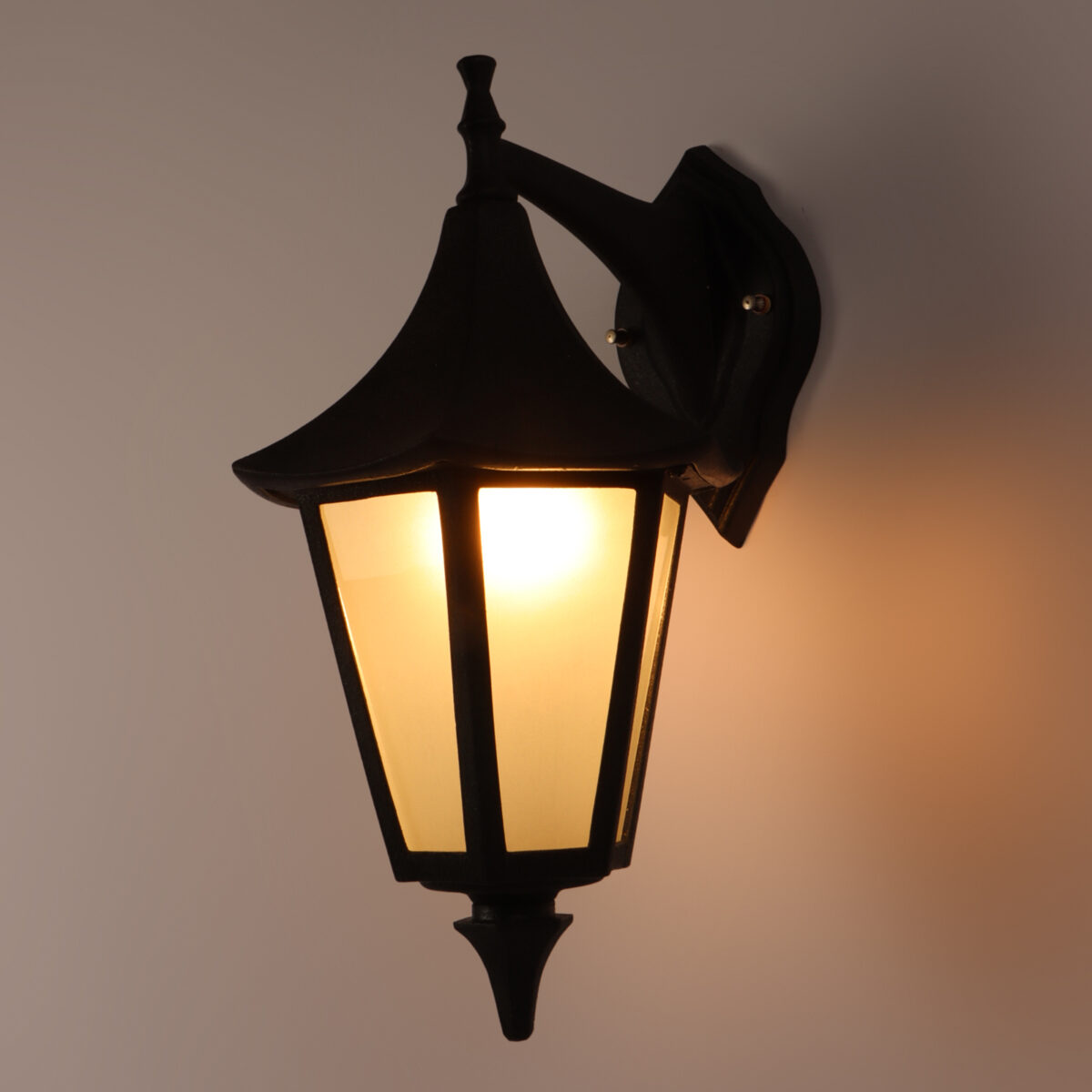 Solid, heavy, aluminium die cast, premium, one of top selling export quality traditional down facing outdoor wall light is available in black finish. It is maintenance free, comes with an B22 holder, only the change of lamp is required, which is available locally everywhere You can of course swap out the bulb for one that is dimmable, has a higher light output or a different color temperature. IP54 rated providing protection from sprayed water in any direction and making this light perfect for use outdoors. Application areas include Stair case walls, passage to staircase, terrace walls, terrace gardens outdoor walls, boundary walls, open parking, stilt parking, basement parking, balcony, theme restaurants and bars, premium farm houses and party venue. Matching variations in gate light GL4593-L, GL4593-S, GL4775-M. Matching Hanging variations, HL3768, HL6060. Matching wall light variations – WL1830, WL1834, WL1202. Matching Bollard – K1076. M. LAMP NOT INCLUDED.