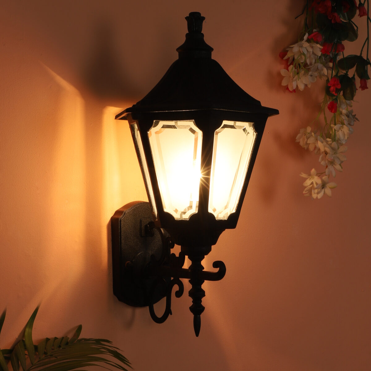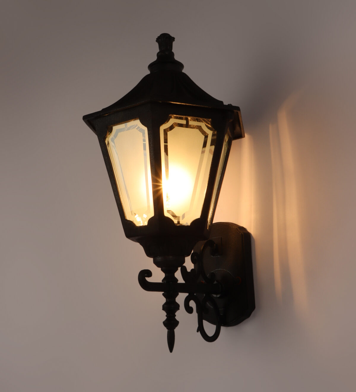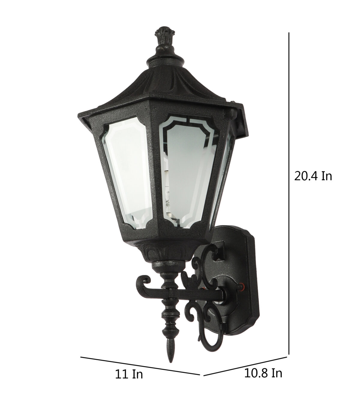 Solid, heavy, huge, aluminium die cast, premium, one of top selling export quality traditional outdoor wall light available in black finish. It is maintenance free, comes with an B22 holder, only the change of lamp is required, which is available locally everywhere You can of course swap out the bulb for one that is dimmable, has a higher light output or a different colour temperature. IP54 rated providing protection from sprayed water in any direction and making this light perfect for use outdoors. Application areas include Stair case walls, passage to staircase, terrace walls, terrace gardens outdoor walls, boundary walls, open parking, stilt parking, basement parking, balcony, theme restaurants and bars,premium farm houses and party venue. Can also be installed indoors it goes with the colour theme. Alos available in big size with code WL2571. LAMP NOT INCLUDED.