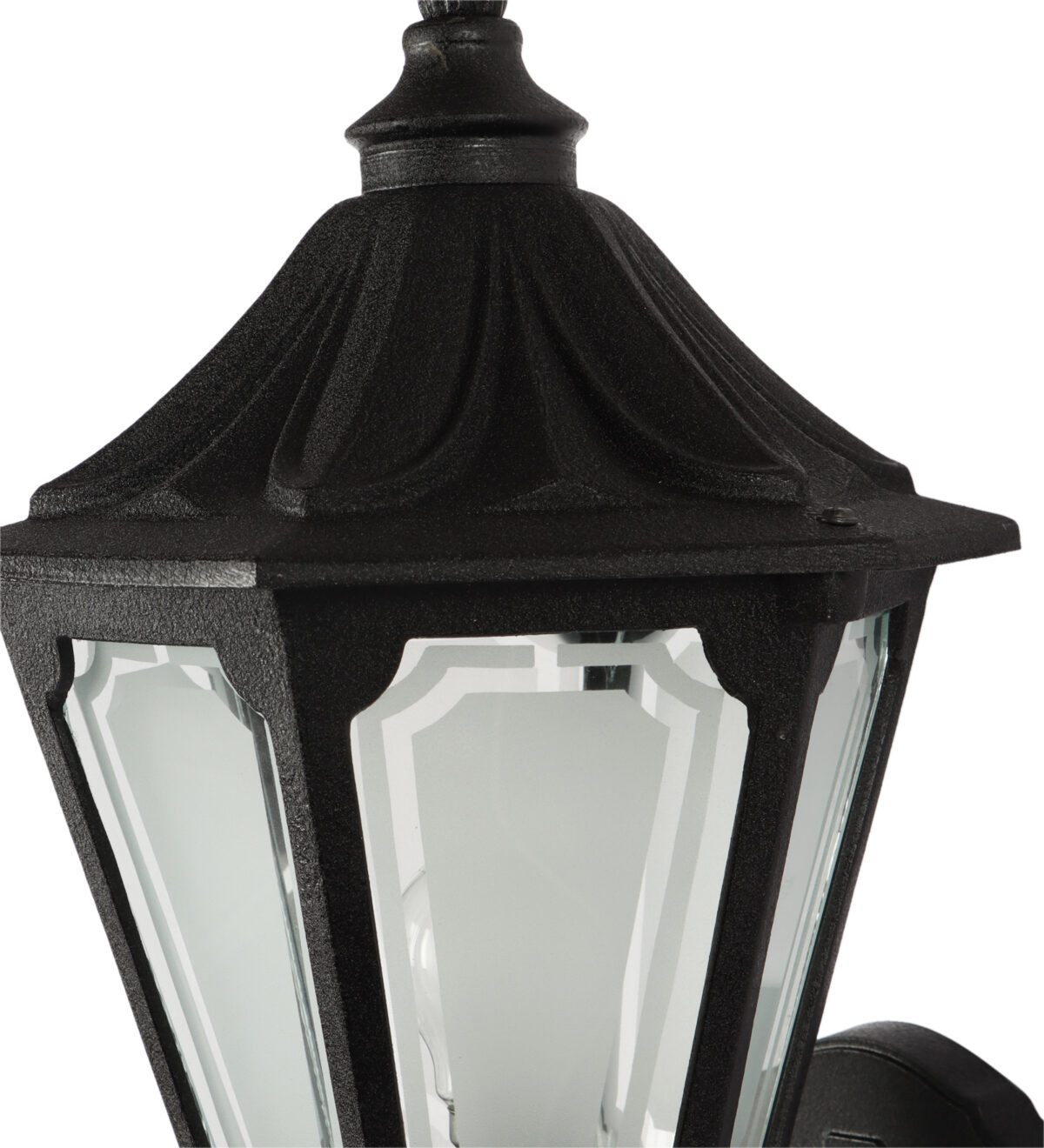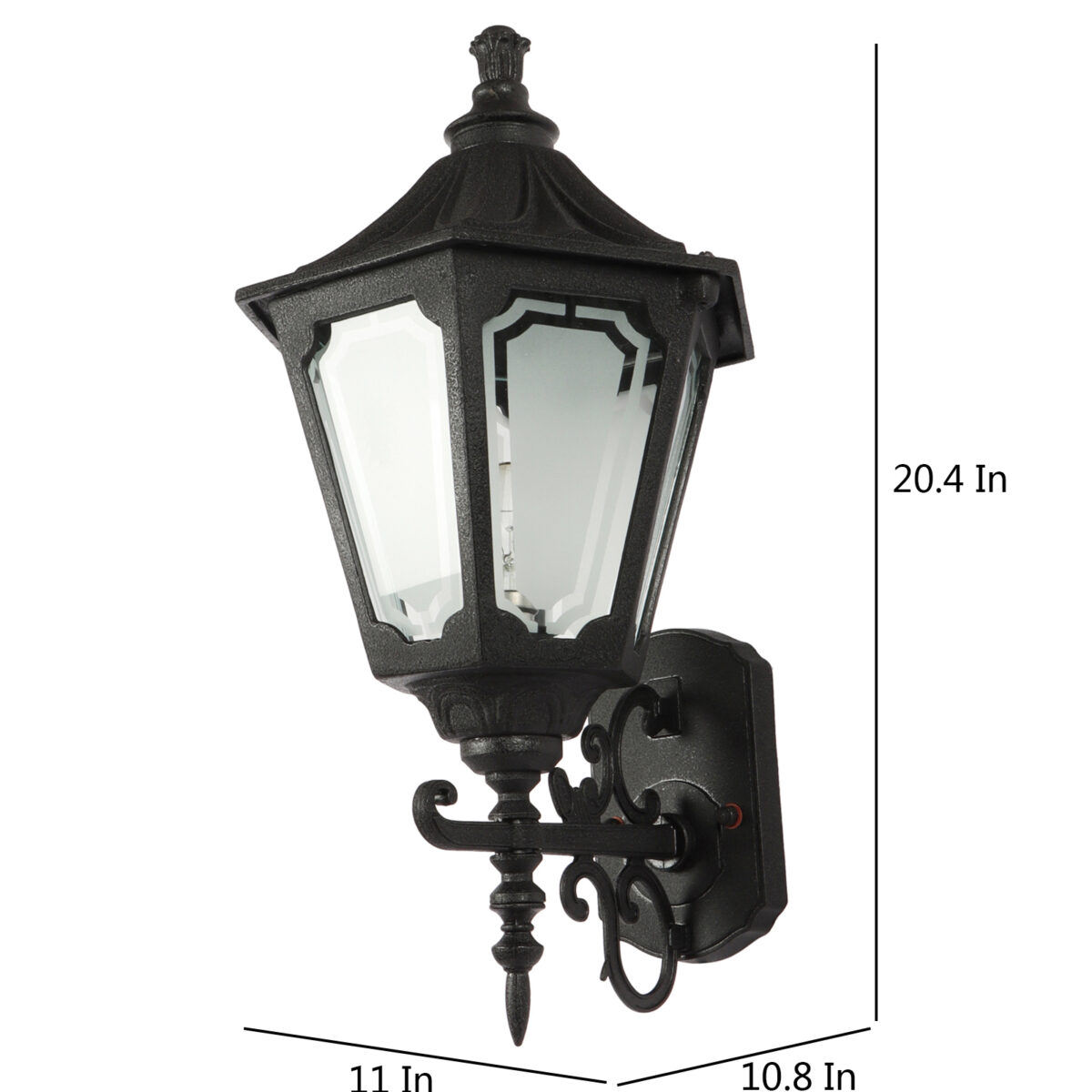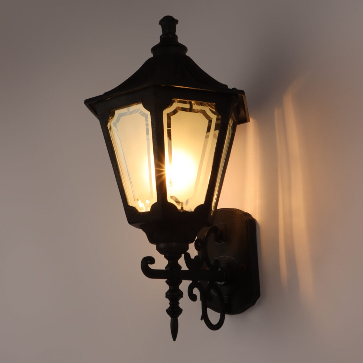 Solid, heavy, huge, aluminium die cast, premium, one of top selling export quality traditional outdoor wall light available in black finish. It is maintenance free, comes with an B22 holder, only the change of lamp is required, which is available locally everywhere You can of course swap out the bulb for one that is dimmable, has a higher light output or a different colour temperature. IP54 rated providing protection from sprayed water in any direction and making this light perfect for use outdoors. Application areas include Stair case walls, passage to staircase, terrace walls, terrace gardens outdoor walls, boundary walls, open parking, stilt parking, basement parking, balcony, theme restaurants and bars,premium farm houses and party venue. Can also be installed indoors it goes with the colour theme. Alos available in big size with code WL2571. LAMP NOT INCLUDED.