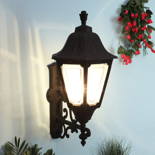 Solid, heavy, huge, aluminium die cast, premium, one of top selling export quality traditional outdoor wall light available in black finish. It is maintenance free, comes with an B22 holder, only the change of lamp is required, which is available locally everywhere You can of course swap out the bulb for one that is dimmable, has a higher light output or a different colour temperature. IP54 rated providing protection from sprayed water in any direction and making this light perfect for use outdoors. Application areas include Stair case walls, passage to staircase, terrace walls, terrace gardens outdoor walls, boundary walls, open parking, stilt parking, basement parking, balcony, theme restaurants and bars,premium farm houses and party venue. Can also be installed indoors it goes with the colour theme. Similar variations – WL2651, WL2571. LAMP NOT INCLUDED.