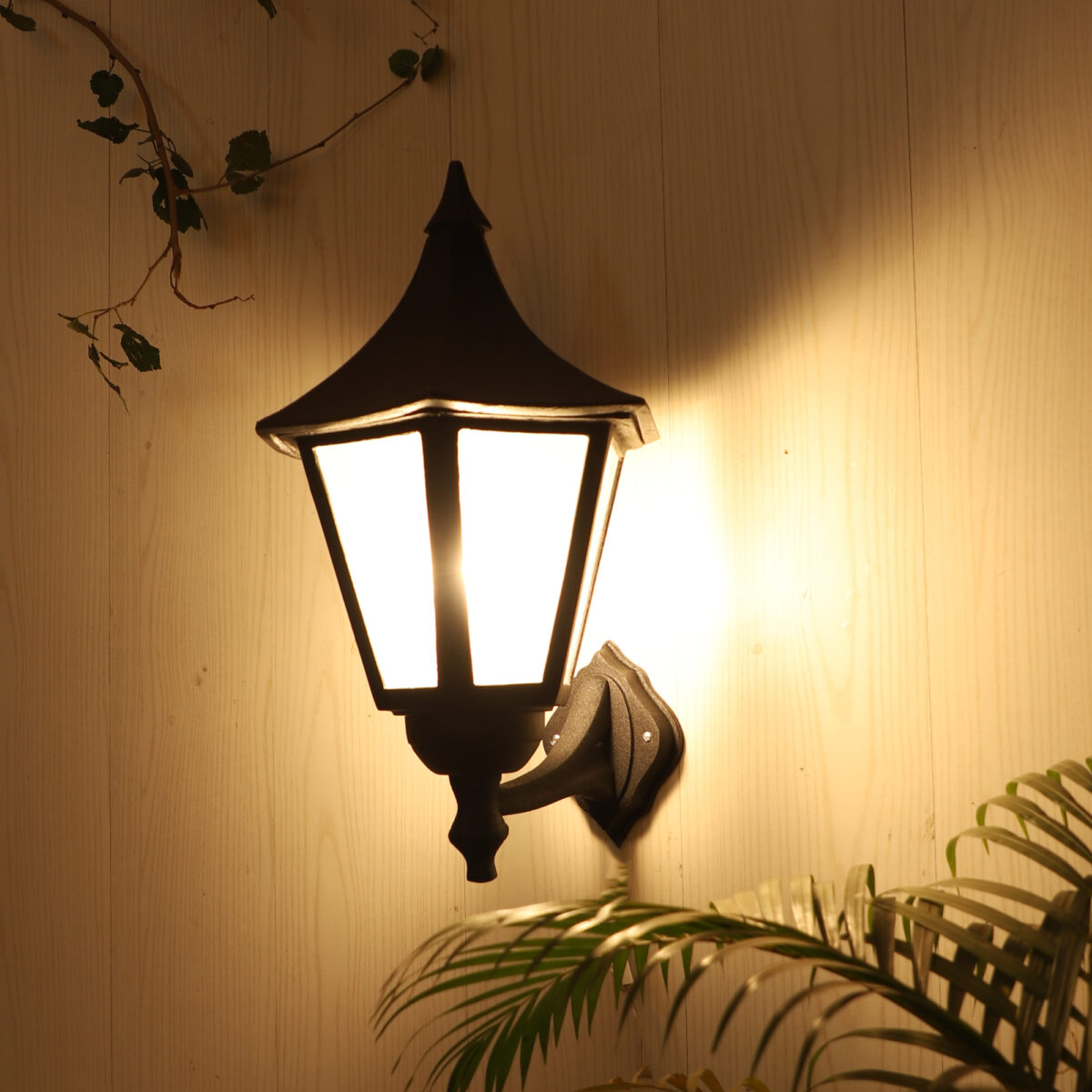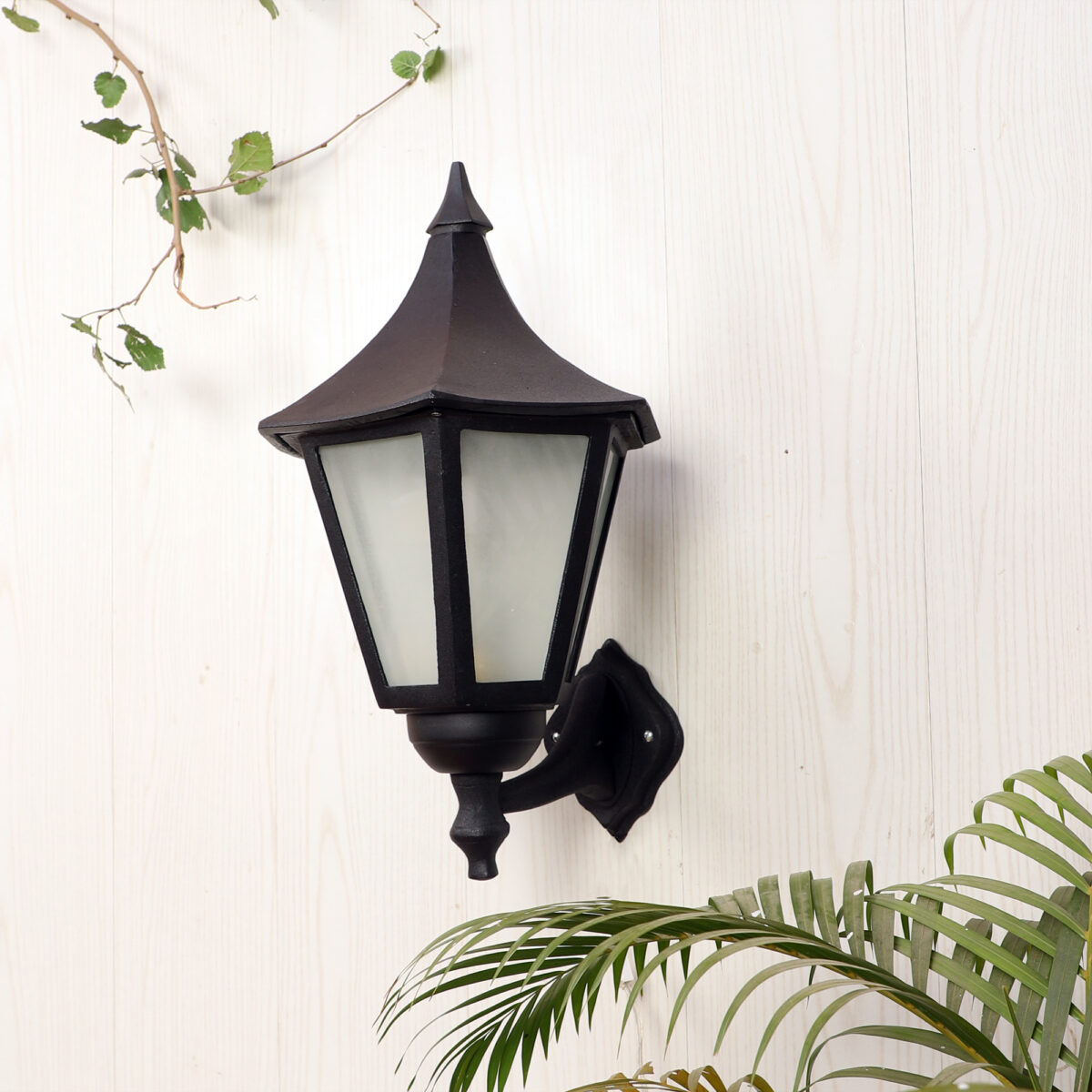 Solid, heavy, aluminium die cast, premium, traditional outdoor wall light is available in black finish. It is maintenance free, comes with an B22 holder, only the change of lamp is required, which is available locally everywhere You can of course swap out the bulb for one that is dimmable, has a higher light output or a different color temperature. IP54 rated providing protection from sprayed water in any direction and making this light perfect for use outdoors. Application areas include Stair case walls, passage to staircase, terrace walls, terrace gardens outdoor walls, boundary walls, open parking, stilt parking, basement parking, balcony, theme restaurants and bars, farm houses and party venue. Can also be installed indoors it goes with the color theme.