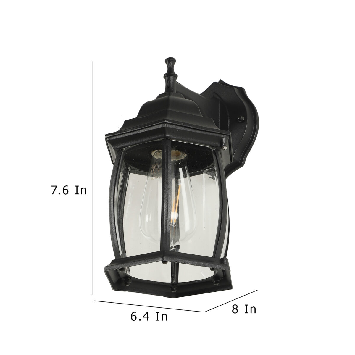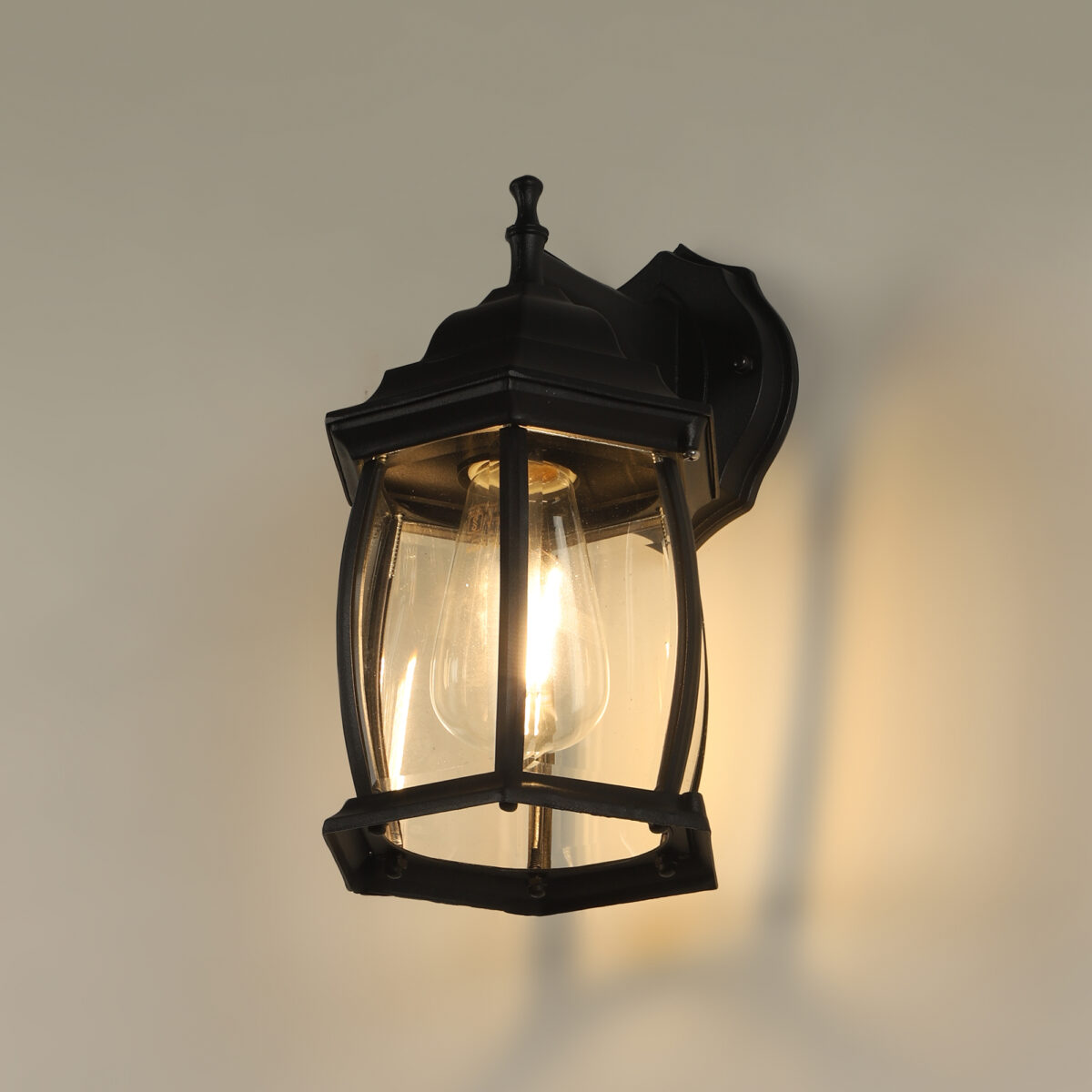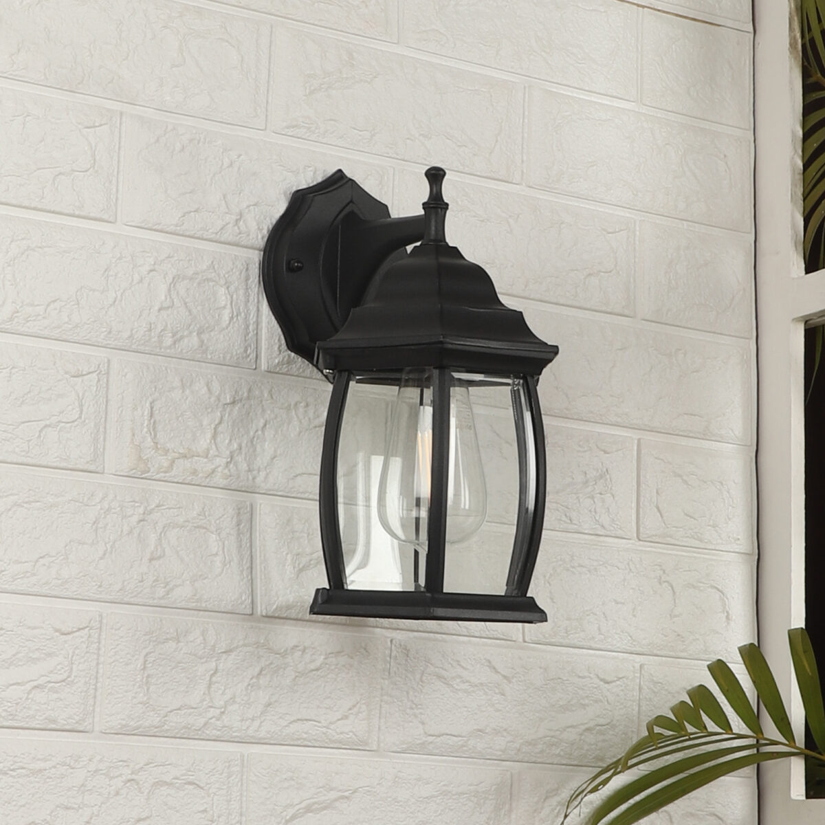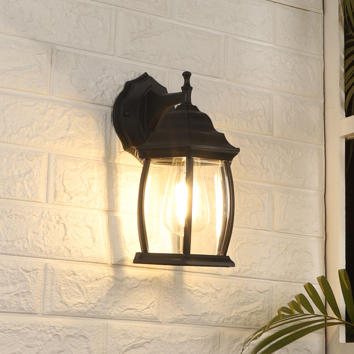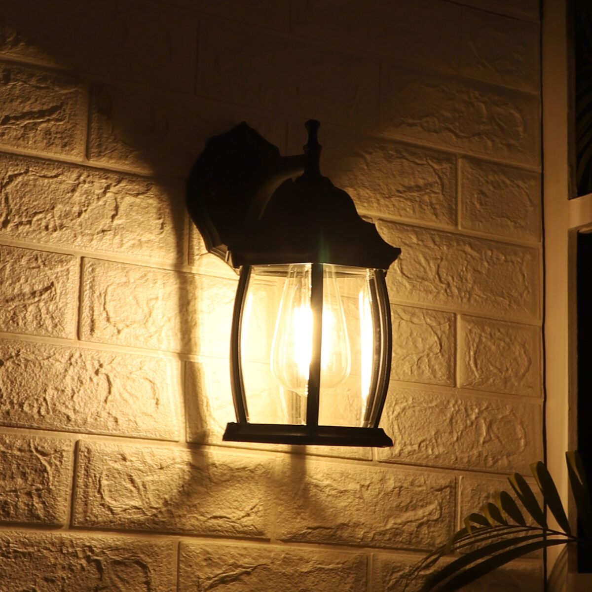 Vertical, aluminium die cast, traditional outdoor wall light in black finish with clear glass. It is maintenance free, comes with an E27 holder, only the change of lamp is required, which is available locally everywhere You can of course swap out the bulb for one that is dimmable, has a higher light output or a different color temperature. Application areas include Stair case walls, passage to staircase, terrace walls, terrace gardens, outdoor walls, boundary walls, open parking, stilt parking, basement parking, balcony , can also be installed inside, also suits theme restaurants and bars. Can be used indoors if goes with the colour theme. LAMP NOT INCLUDED.