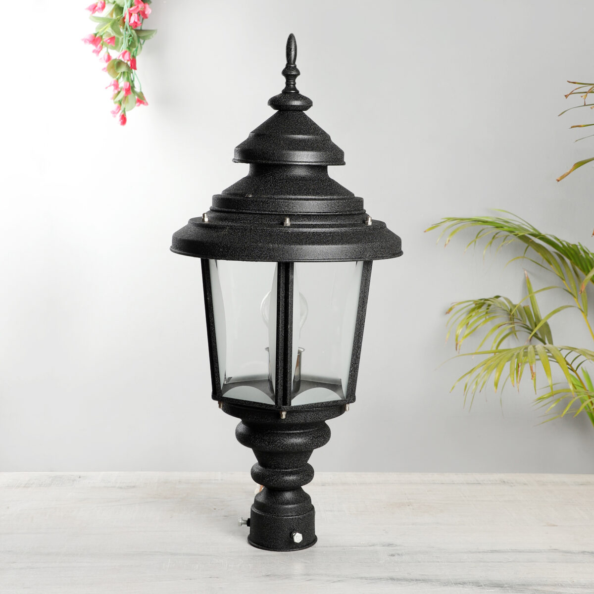 Traditional,aluminium sheet one of the top export quality gate pillar post light in black finish. It is maintenance free, comes with an B22 holder, only the change of lamp is required, which is available locally everywhere. You can of course swap out the bulb for one that is dimmable, has a higher light output or a different color temperature. IP 54 rated, providing protection from sprayed water in any direction and making this light perfect for use outdoors.Application areas include building entrance, on top of terrace walls, terrace gardens, boundary walls, open parking, stilt parking. Also available in small and big size having codes GL4554-S and GL4554-XL. Matching wall light code – WL1182, Matching Bollard – K818. LAMPS NOT INCLUDED.