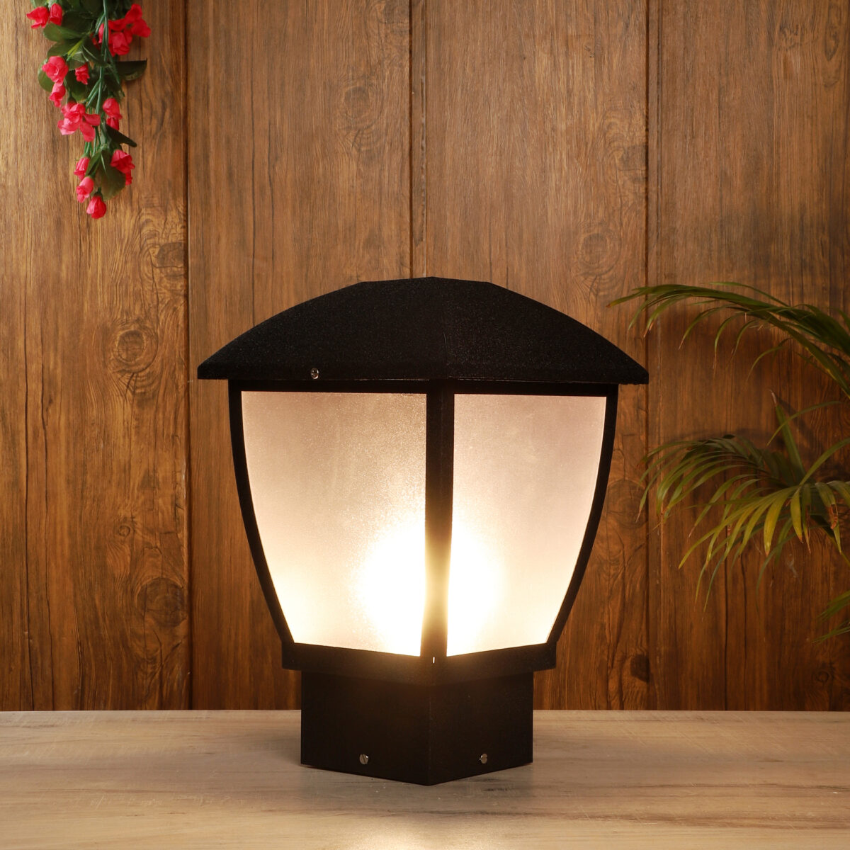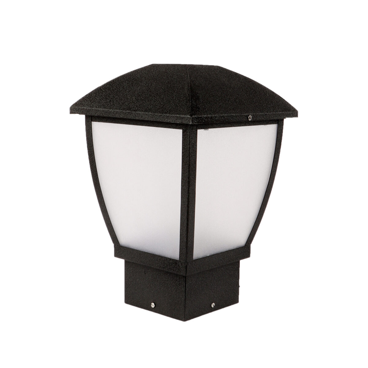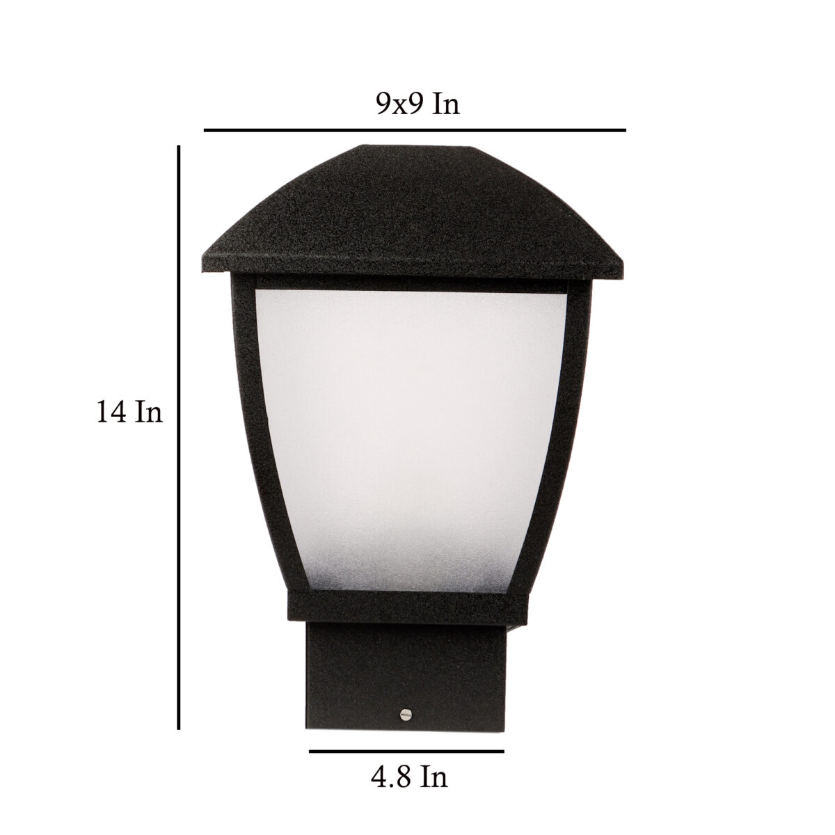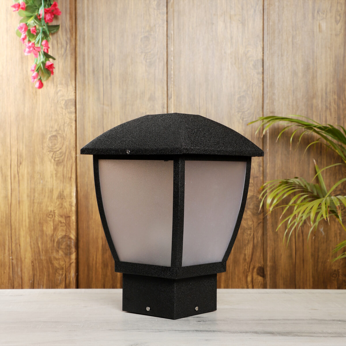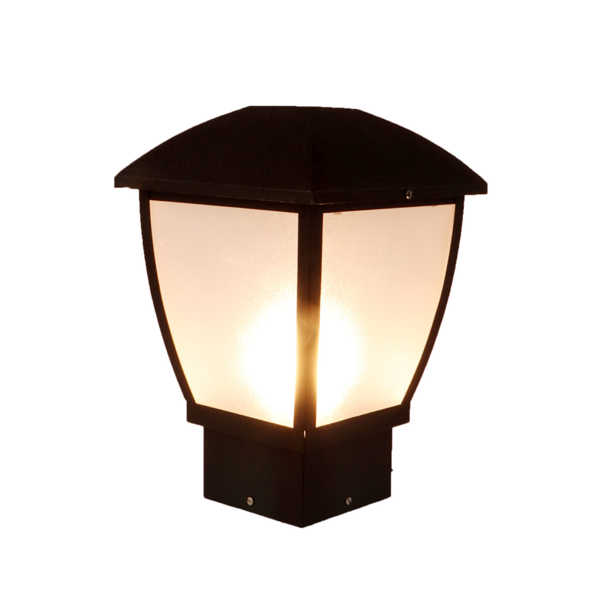 Modern aluminium sheet, one of top selling export quality gate pillar post light in black finish. It is maintenance free, comes with an B22 holder, only the change of lamp is required, which is available locally everywhere You can of course swap out the bulb for one that is dimmable, has a higher light output or a different color temperature. High quality acrylic is used to withstand tough weather conditions. IP 54 rated, providing protection from sprayed water in any direction and making this light perfect for use outdoors.Application areas include building entrance, on top of terrace walls, terrace gardens, boundary walls, open parking, stilt parking.