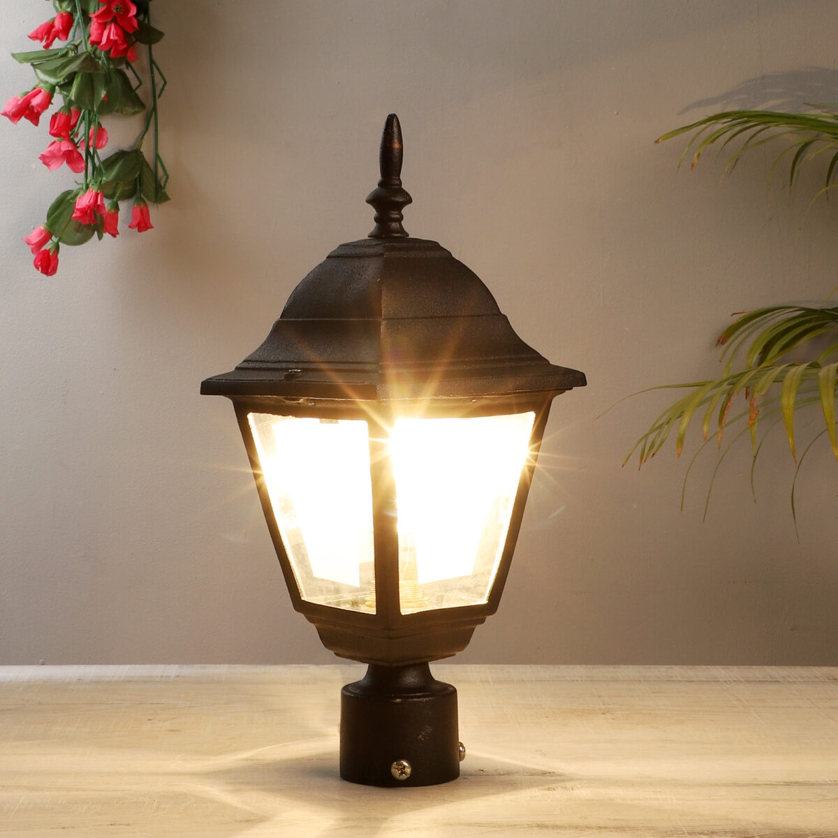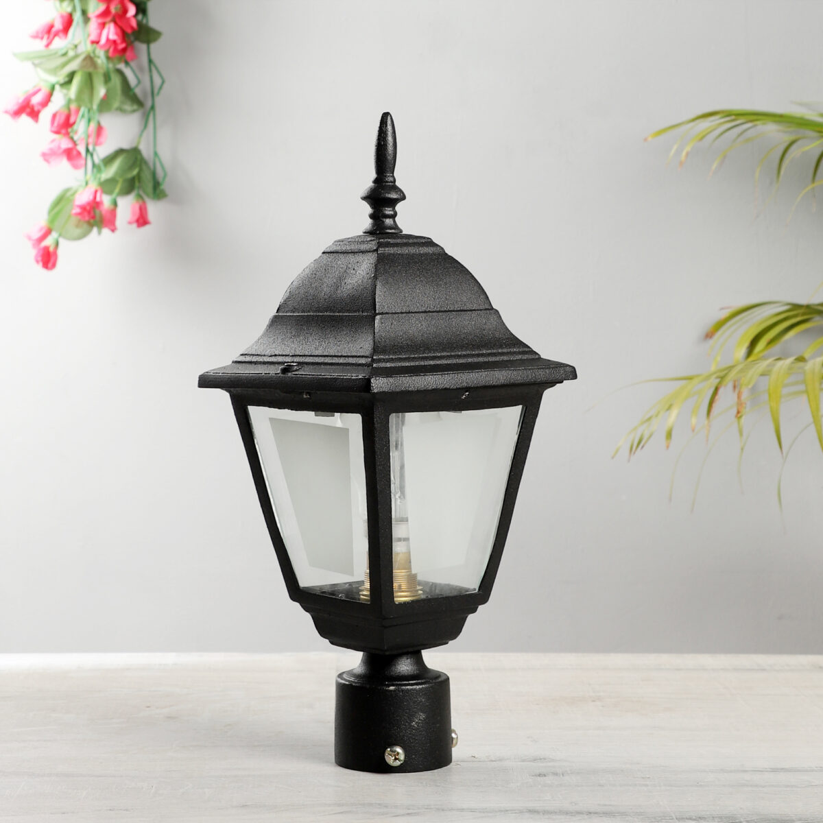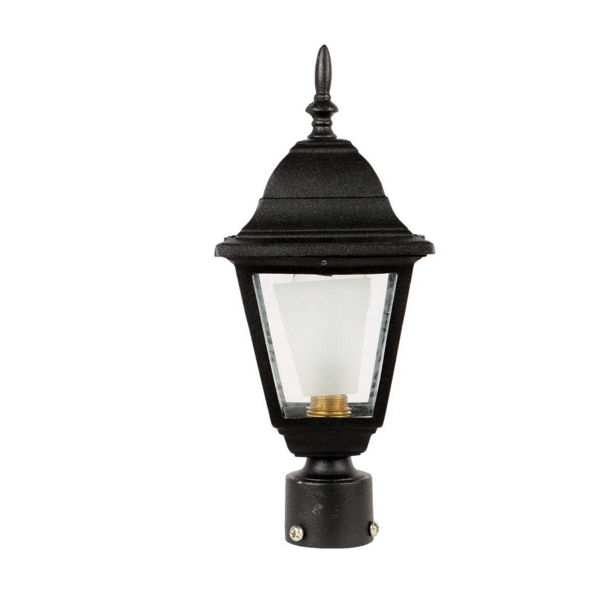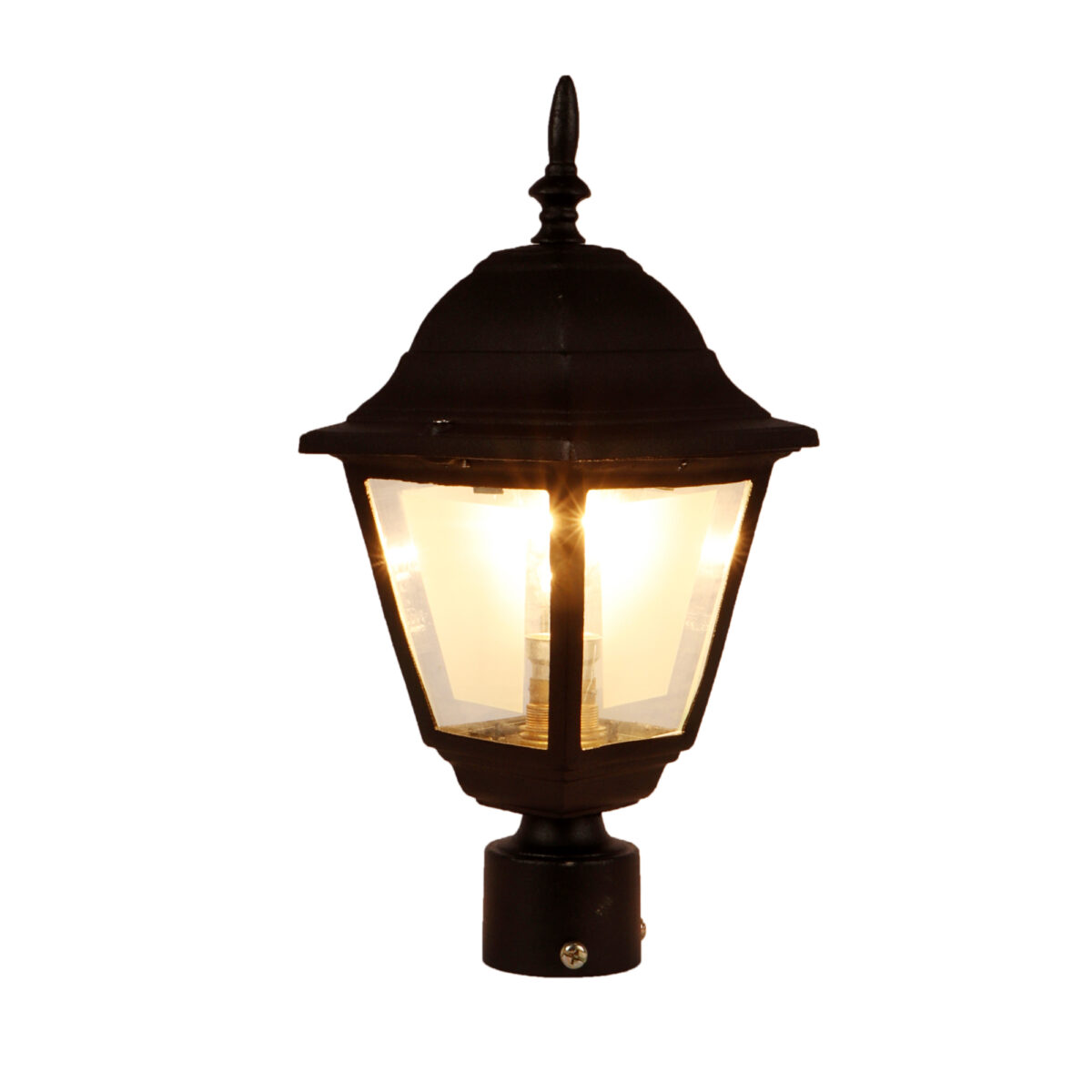 Traditional heavy duty aluminium die cast, gate, pillar post light in black finish. It is maintenance free, comes with an B22 holder, only the change of lamp is required, which is available locally everywhere You can of course swap out the bulb for one that is dimmable, has a higher light output or a different color temperature. IP54 rated, providing protection from sprayed water in any direction and making this light perfect for use outdoors. Application areas include building entrance, on top of terrace walls, terrace gardens, boundary walls, open parking, stilt parking. LAMPS NOT INCLUDED. PLEASE SCROLL DOWN TO SEE THE PRODUCT FAMILY.